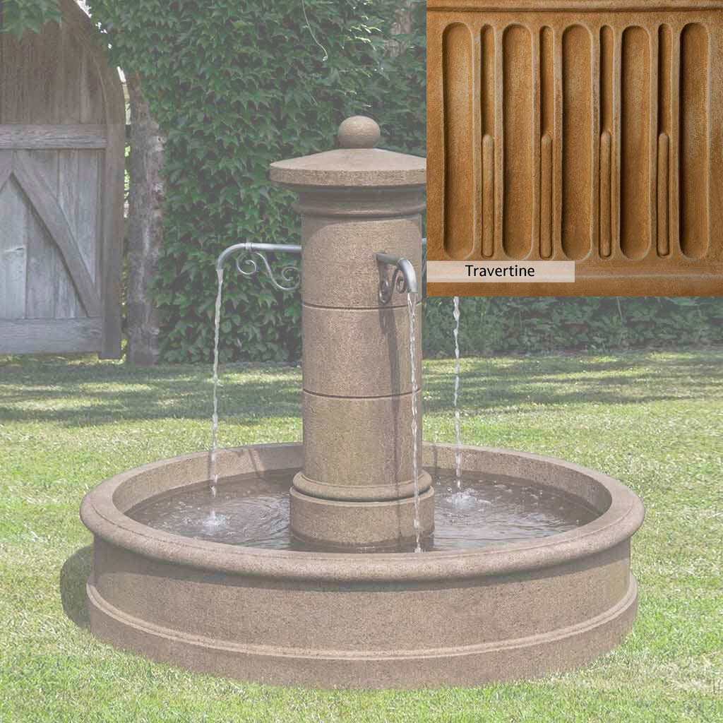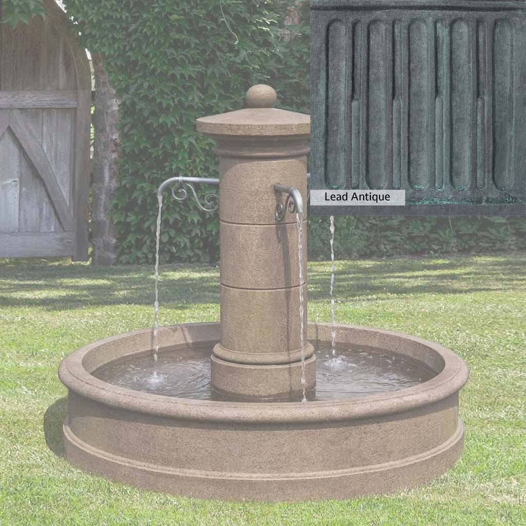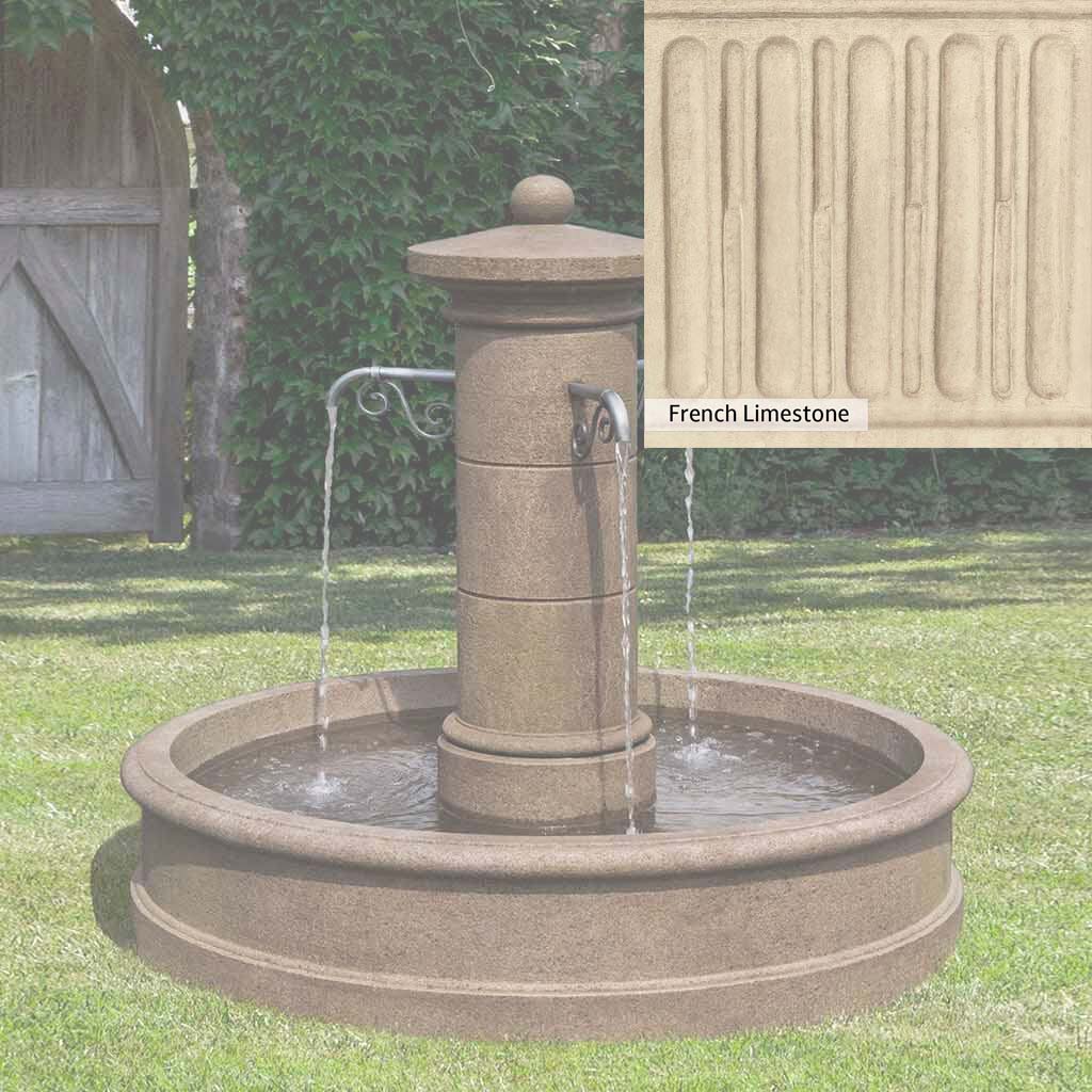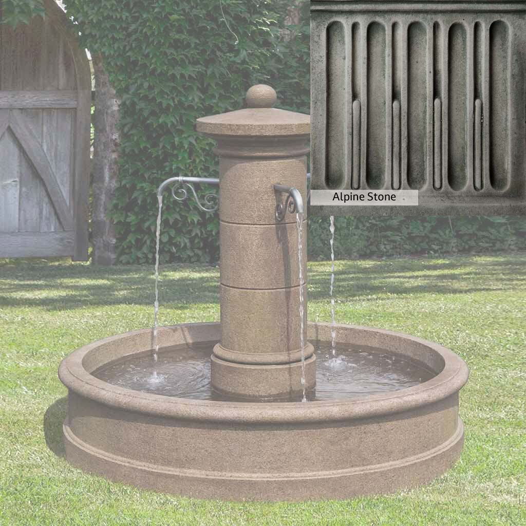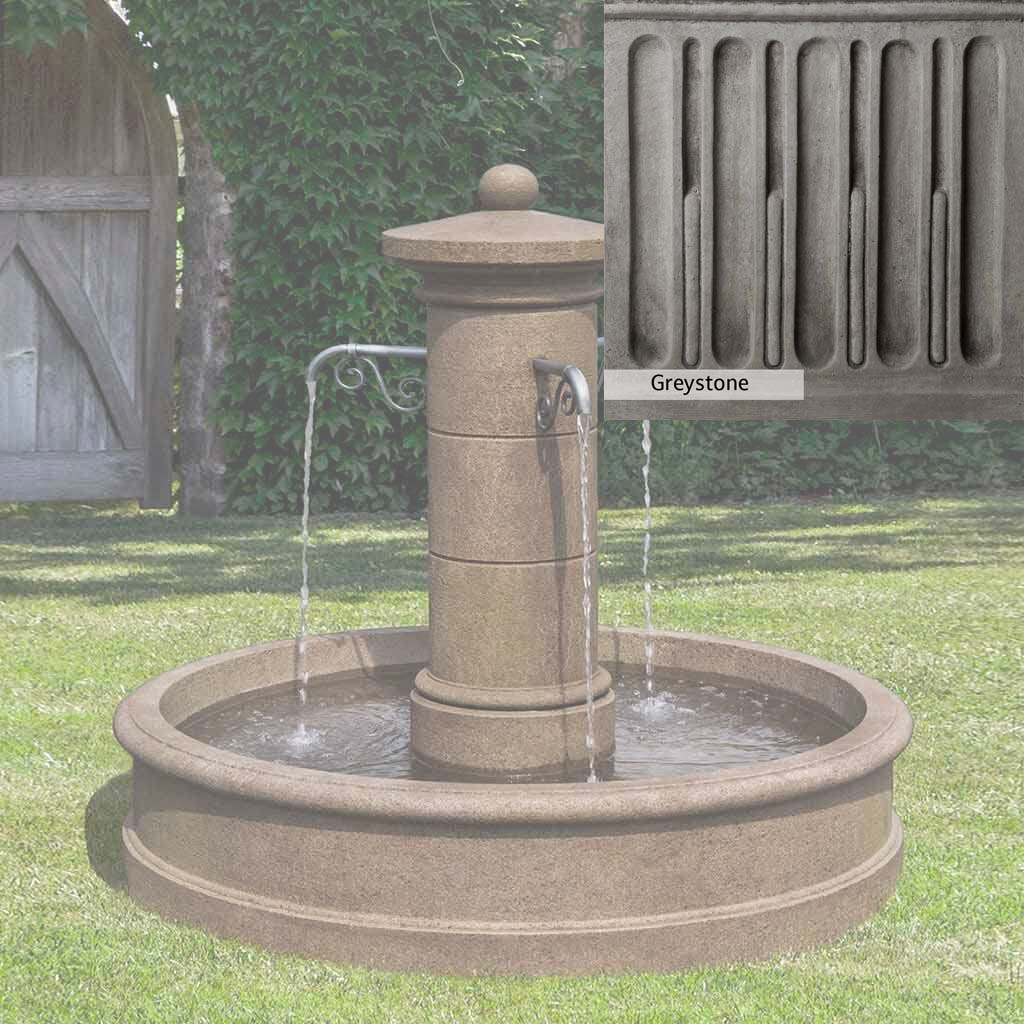 The Avignon Fountain is handcrafted by skilled artisans in the USA. With their extensive experience, the Campania team applies a unique patina to ensure that each piece is special. This fountain is shown in the Aged Limestone color. Campania International's proprietary cast stone blend is meticulously molded to create each piece used in the construction of this fountain. Due to the use of different materials and manufacturing processes, as well as varying photography conditions, natural variations in size, weight, and color can occur. The actual color may differ from the photo.