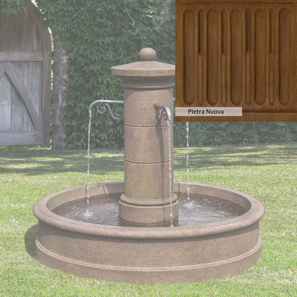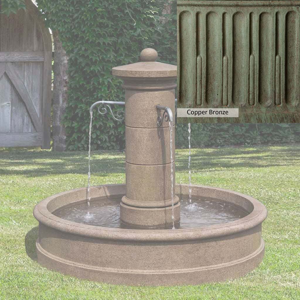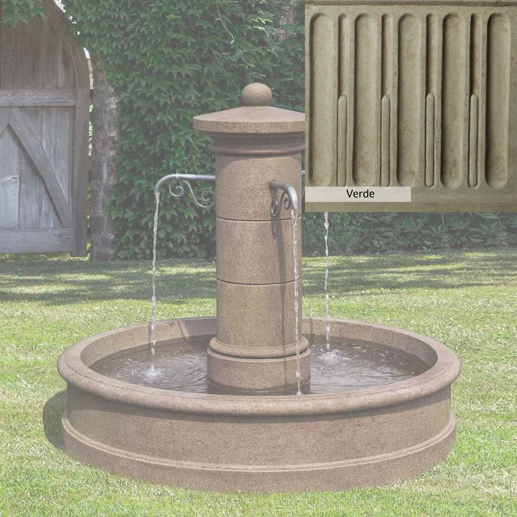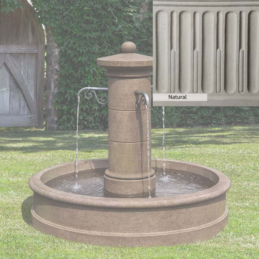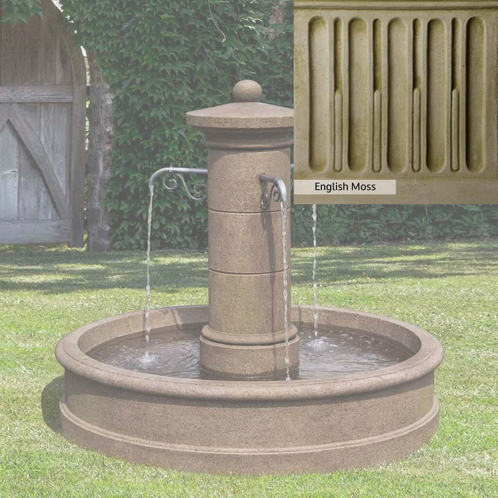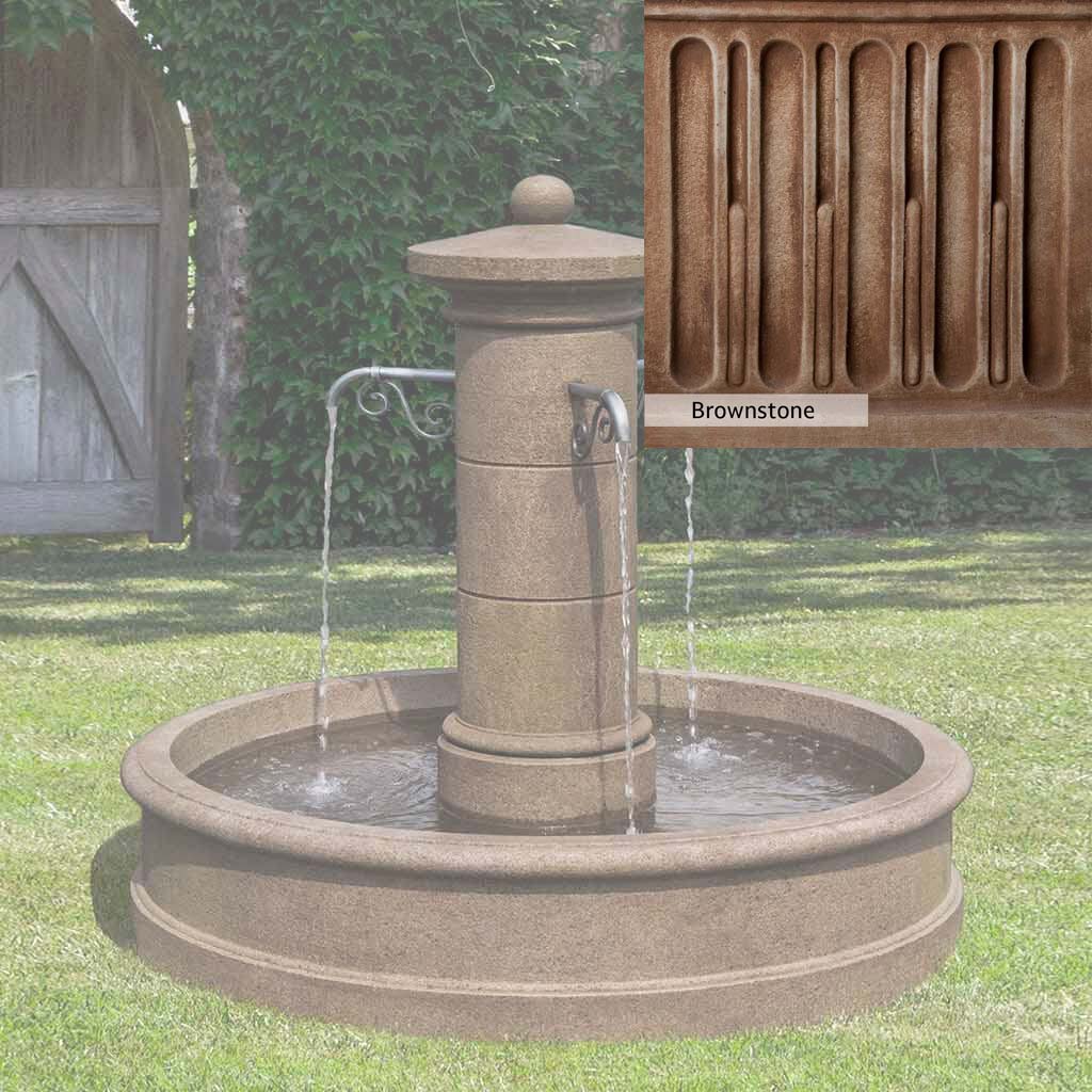 The Avignon Fountain is handcrafted by skilled artisans in the USA. With their extensive experience, the Campania team applies a unique patina to ensure that each piece is special. This fountain is shown in the Aged Limestone color. Campania International's proprietary cast stone blend is meticulously molded to create each piece used in the construction of this fountain. Due to the use of different materials and manufacturing processes, as well as varying photography conditions, natural variations in size, weight, and color can occur. The actual color may differ from the photo.