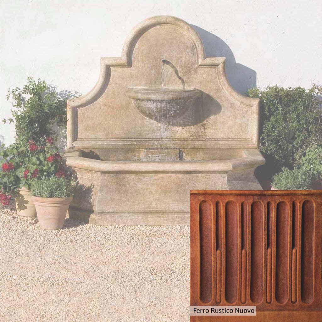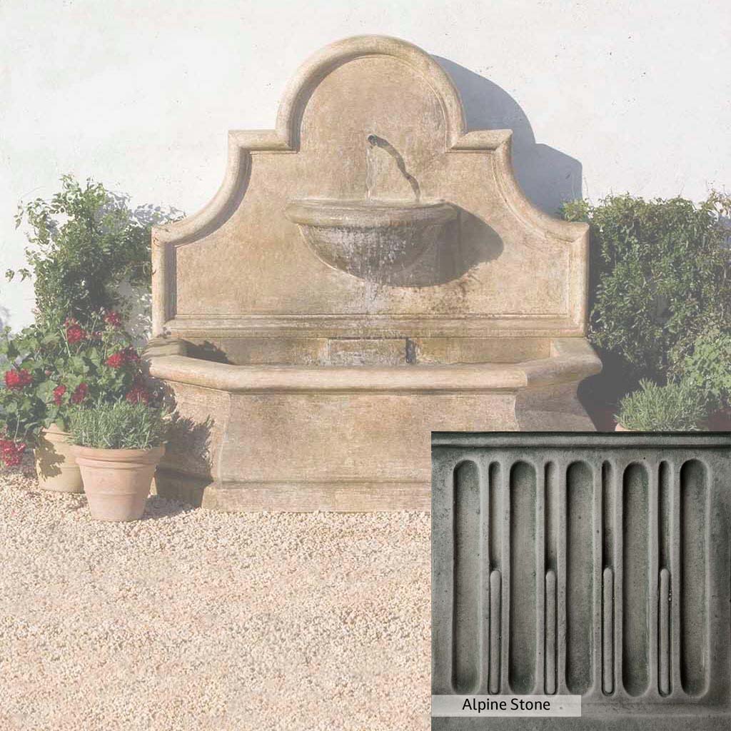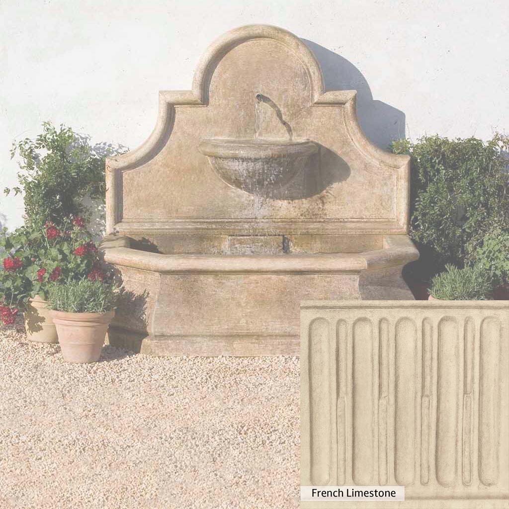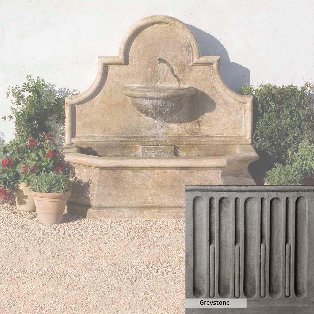 Skilled artisans in the USA handcraft the Andalusia Wall Fountain. The Campania team applies the unique patina using their experience, making each piece one-of-a-kind. This fountain is shown in the Aged Limestone color. Campania International's unique cast stone blend is meticulously molded to create each piece used in the construction of this fountain. Due to the materials, manufacturing processes, and variations in photography conditions, natural differences can occur in size, weight, and color. The actual color may vary from the photo.