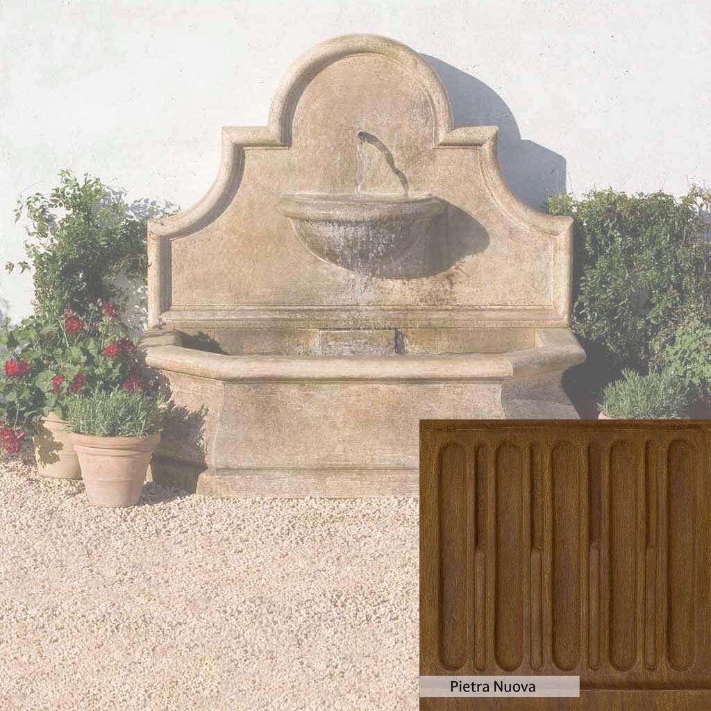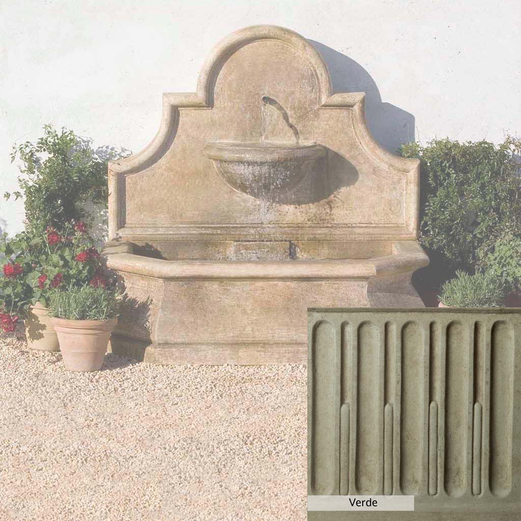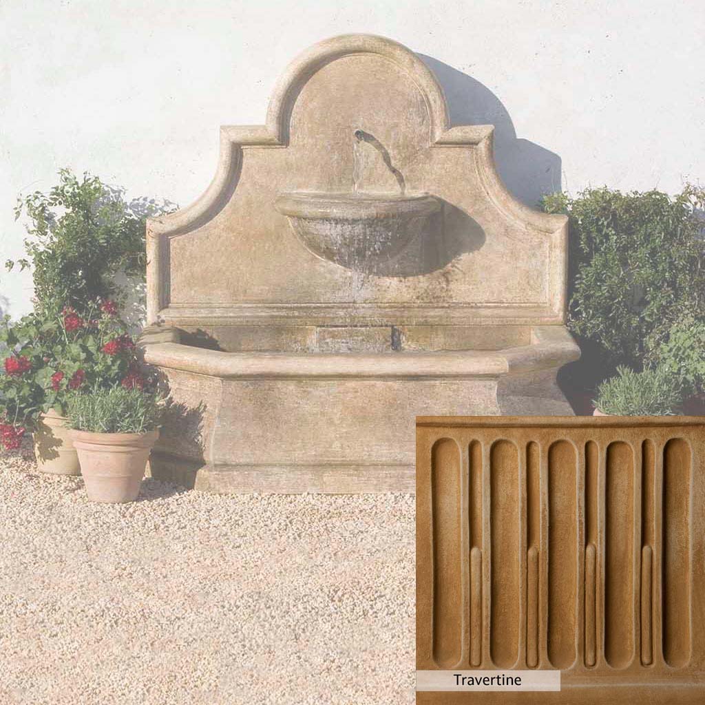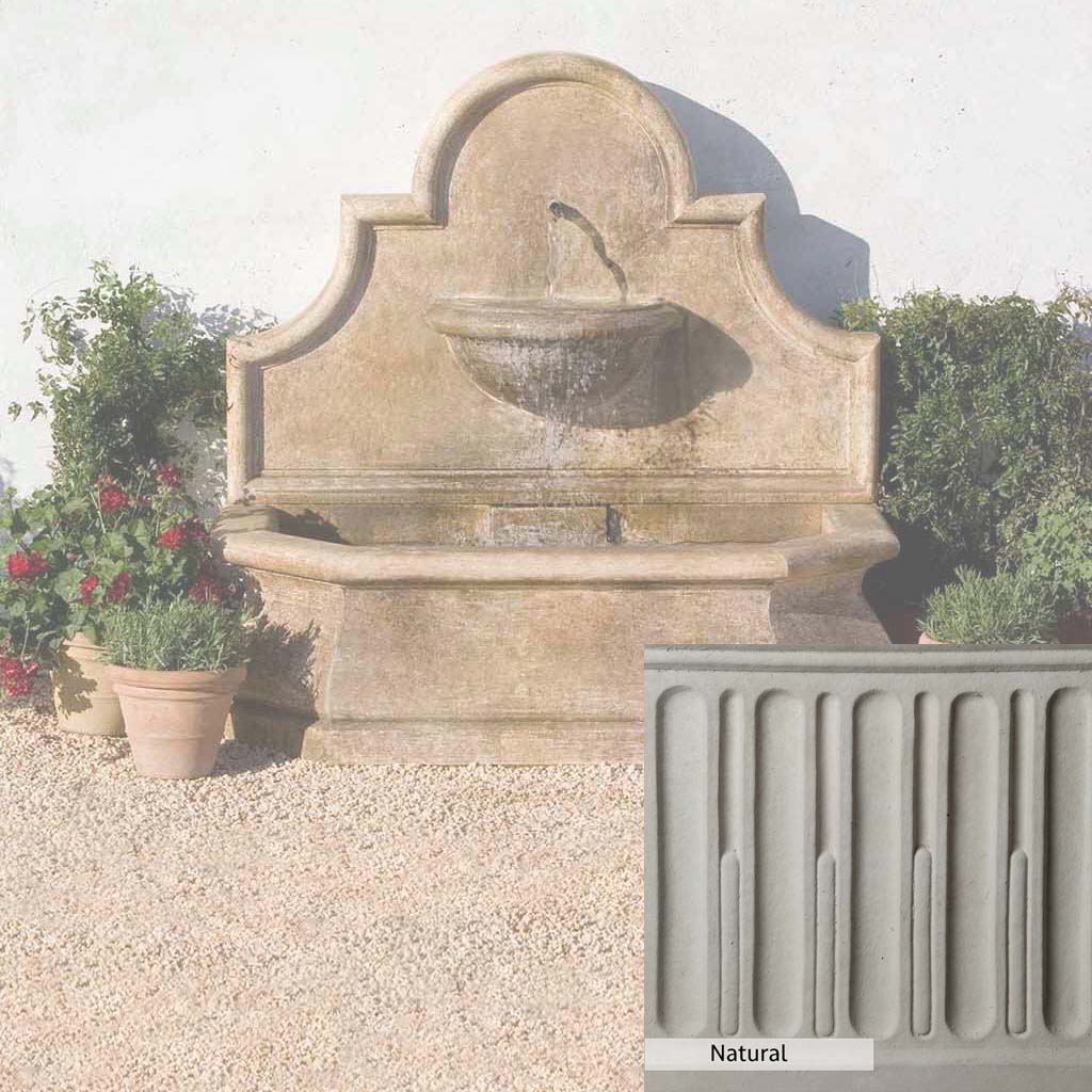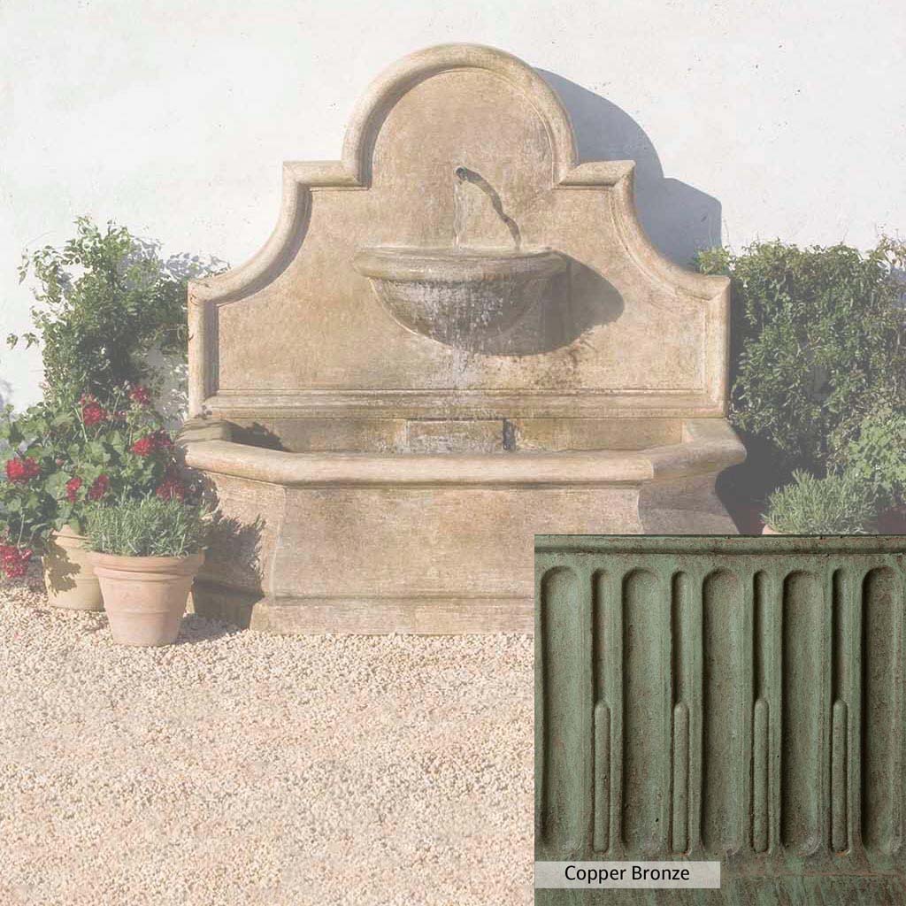 Skilled artisans in the USA handcraft the Andalusia Wall Fountain. The Campania team applies the unique patina using their experience, making each piece one-of-a-kind. This fountain is shown in the Aged Limestone color. Campania International's unique cast stone blend is meticulously molded to create each piece used in the construction of this fountain. Due to the materials, manufacturing processes, and variations in photography conditions, natural differences can occur in size, weight, and color. The actual color may vary from the photo.