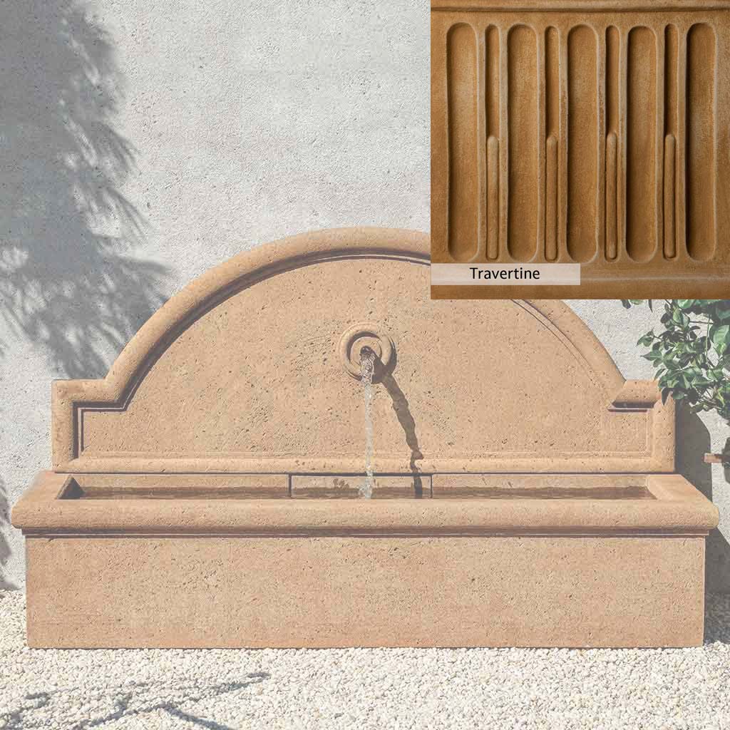 Skilled artisans in the USA handcraft the Aranjuez Fountain. The Campania team applies a unique patina, making each piece one-of-a-kind. This fountain is shown in the Travertine color. Due to materials, manufacturing processes, and variations in photography conditions, natural differences can occur in size, weight, and color. The actual color may vary from the photo.