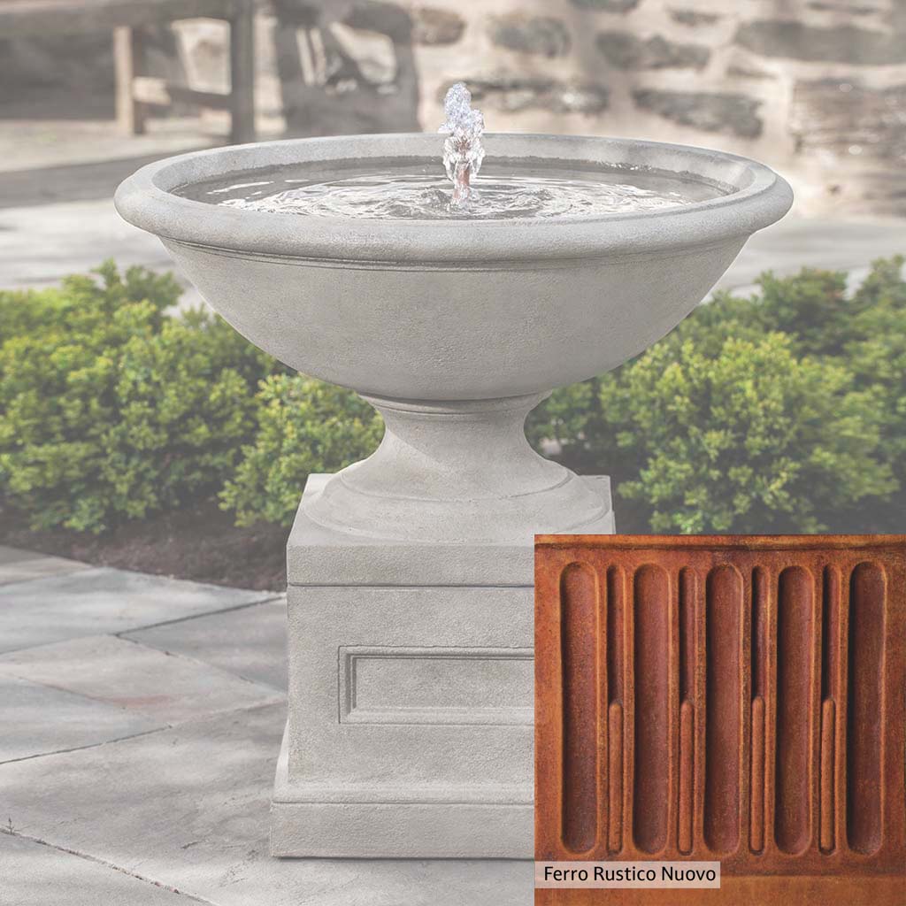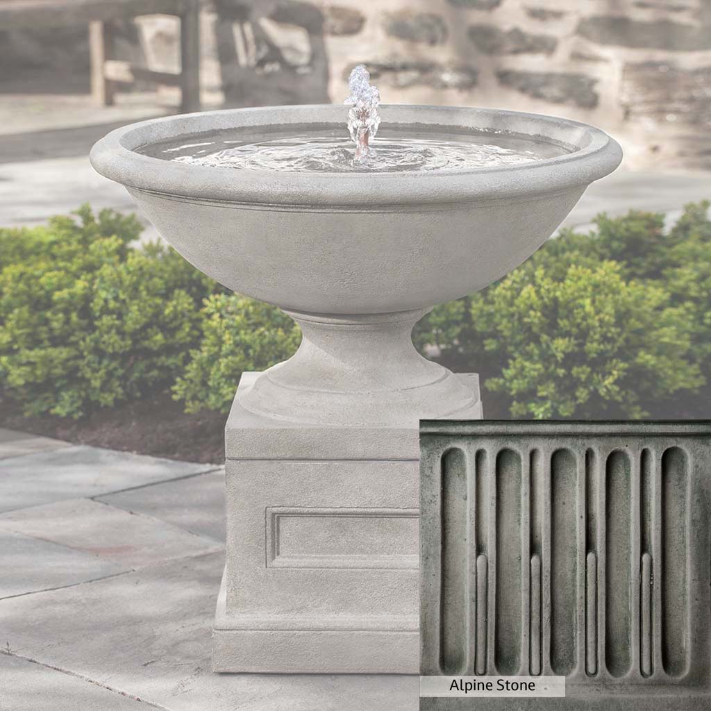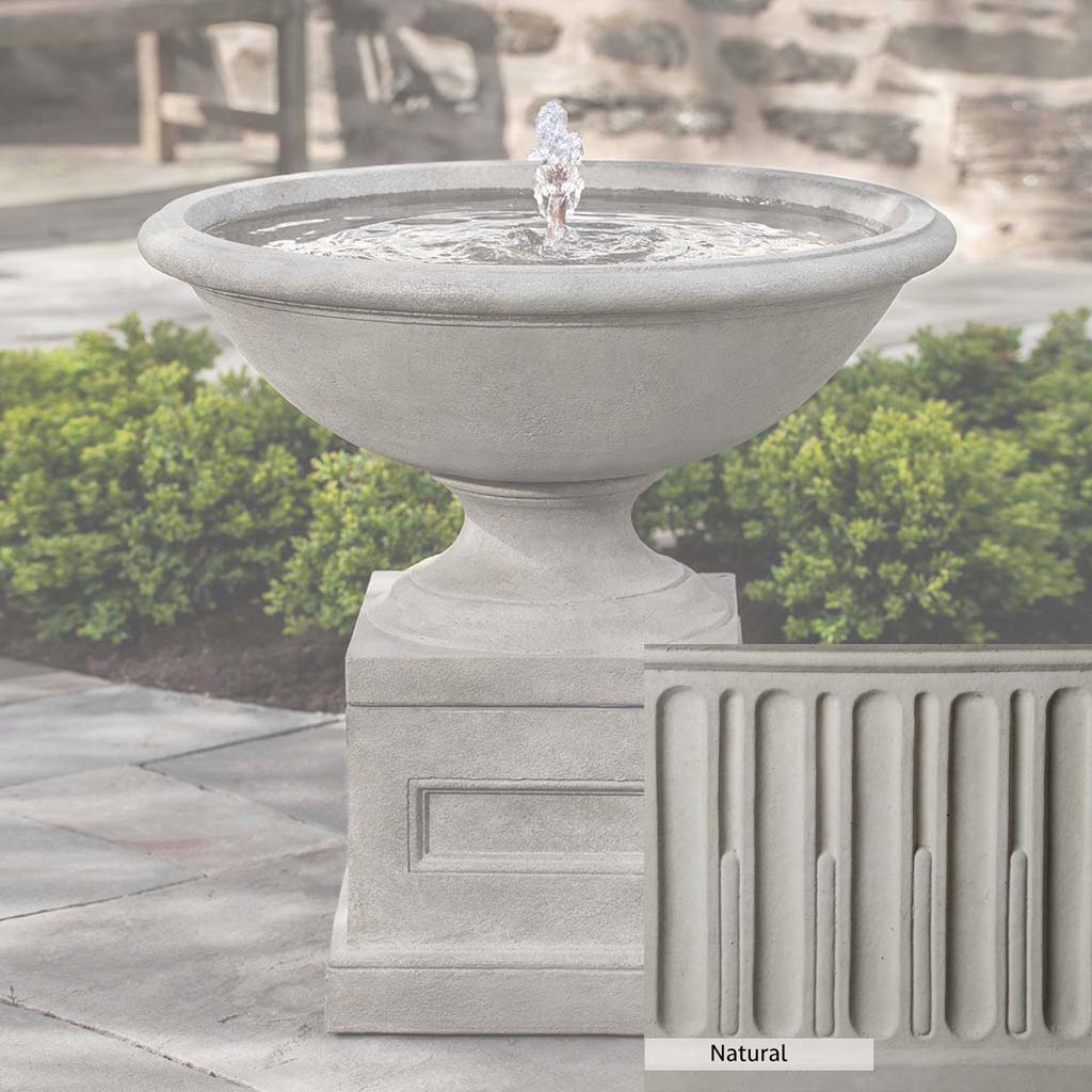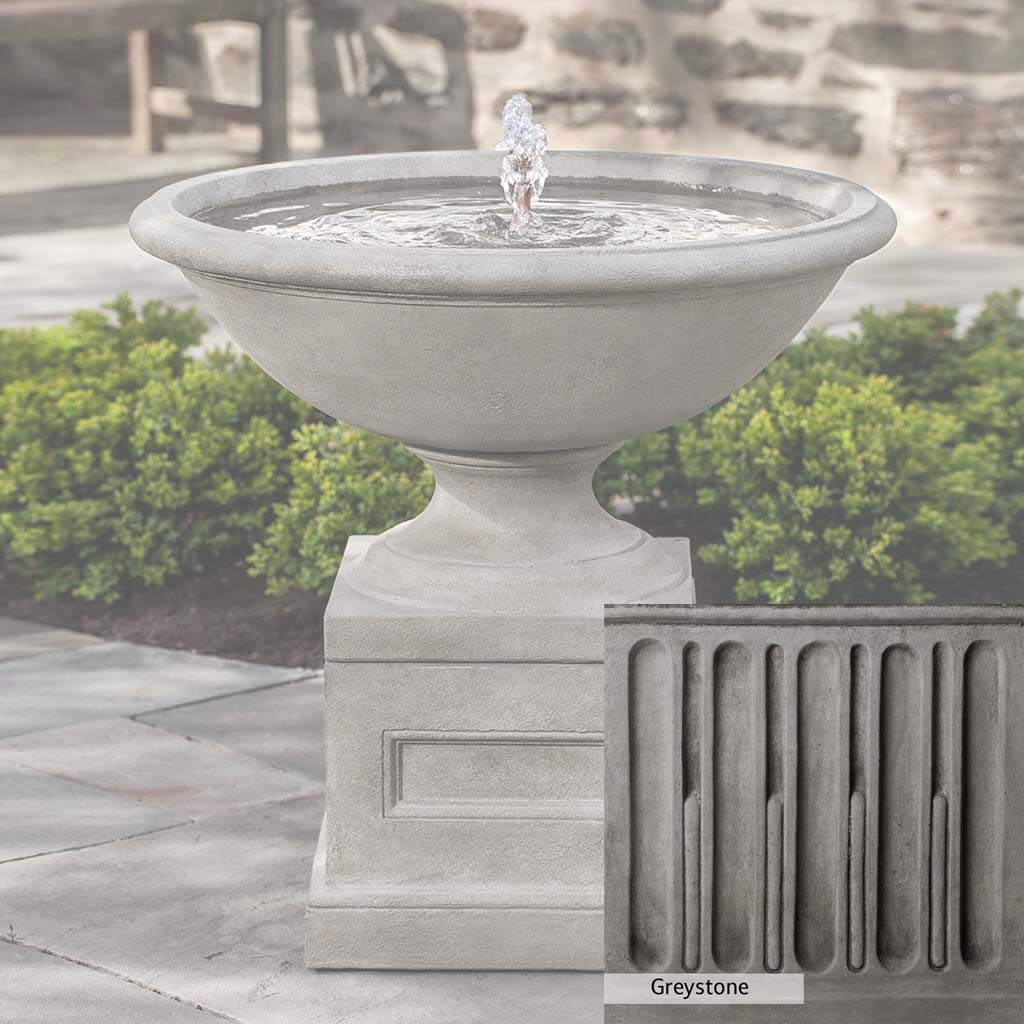 The Aurelia Fountain is handcrafted by skilled artisans in the USA. With their extensive experience, the Campania team applies a unique patina to ensure that each piece is special. This fountain is shown in the Greystone color. Campania International's proprietary cast stone blend is meticulously molded to create each piece used in the construction of this fountain. Due to the use of different materials and manufacturing processes, as well as varying photography conditions, natural variations in size, weight, and color can occur. The actual color may differ from the photo.