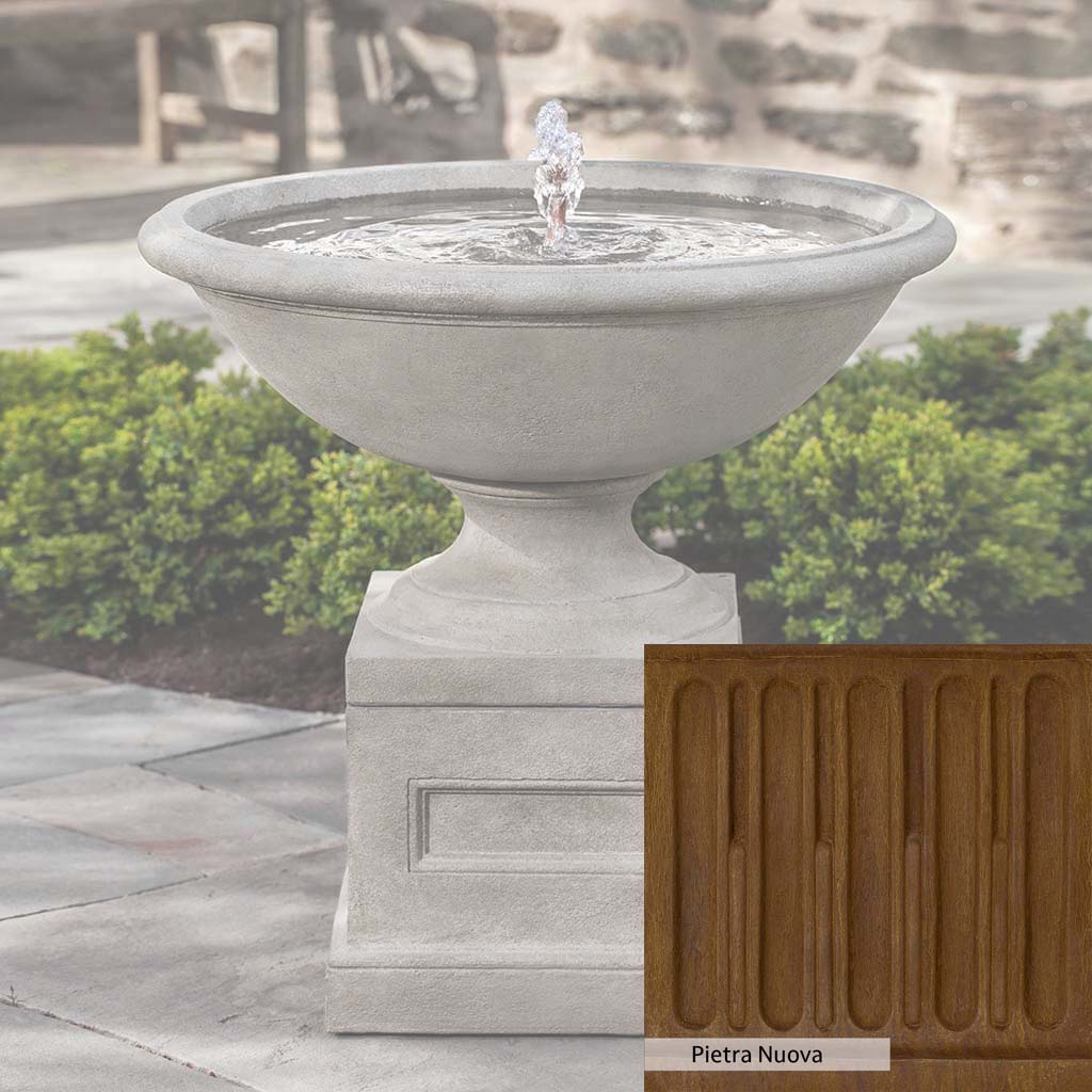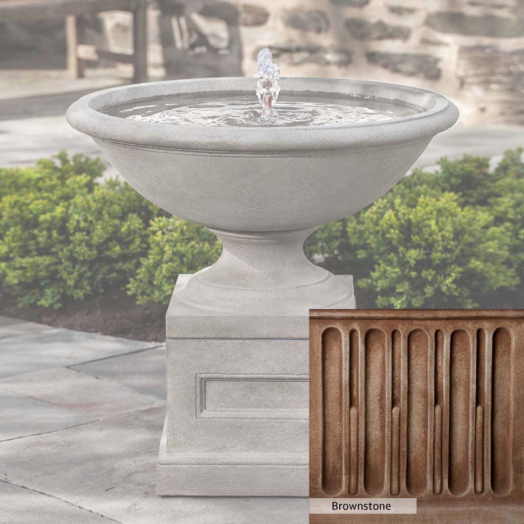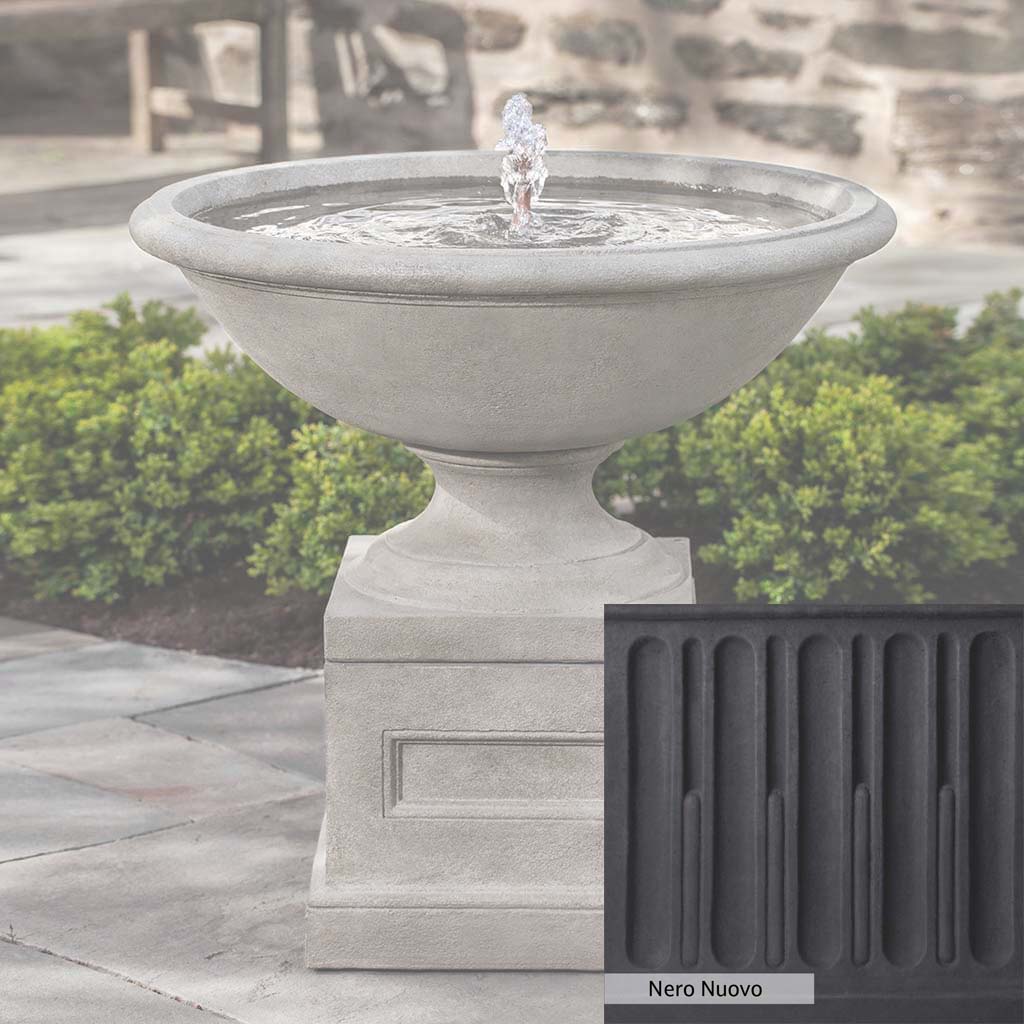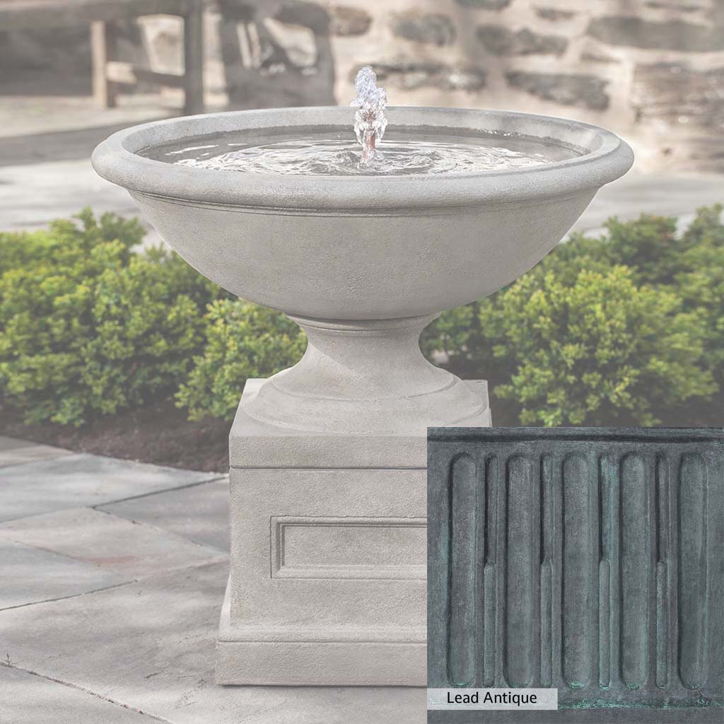 The Aurelia Fountain is handcrafted by skilled artisans in the USA. With their extensive experience, the Campania team applies a unique patina to ensure that each piece is special. This fountain is shown in the Greystone color. Campania International's proprietary cast stone blend is meticulously molded to create each piece used in the construction of this fountain. Due to the use of different materials and manufacturing processes, as well as varying photography conditions, natural variations in size, weight, and color can occur. The actual color may differ from the photo.