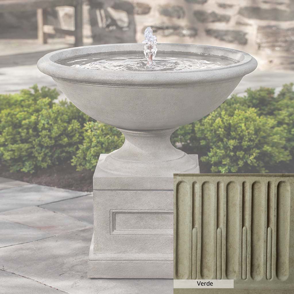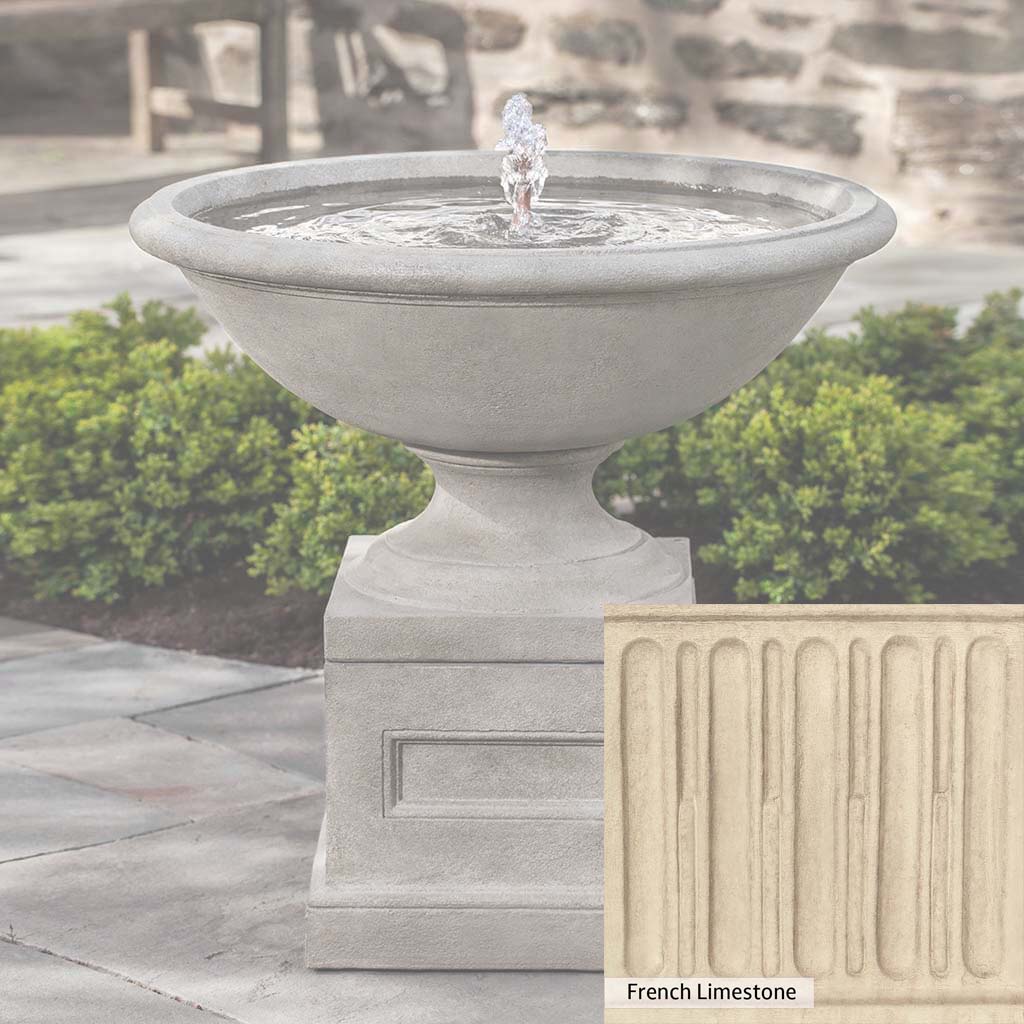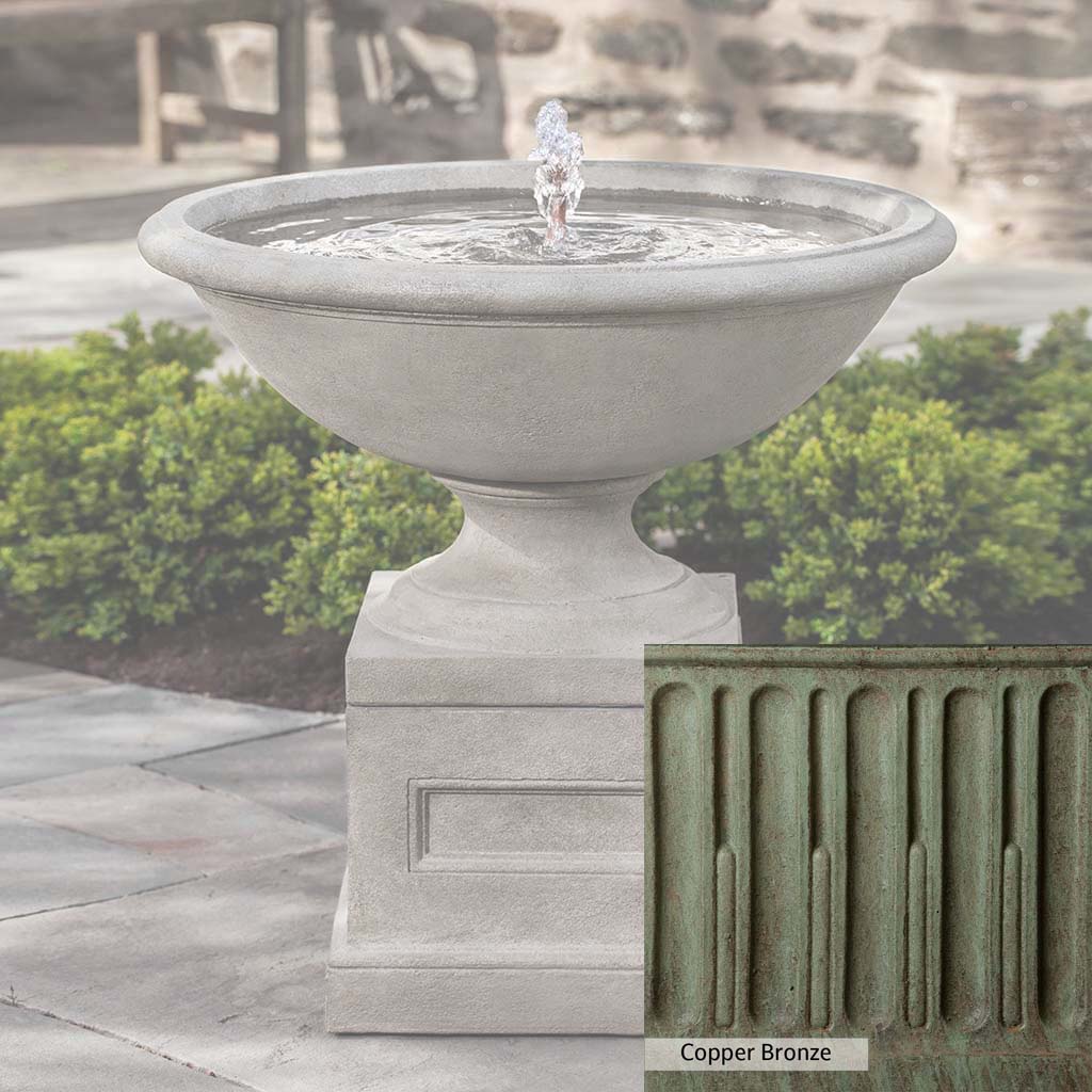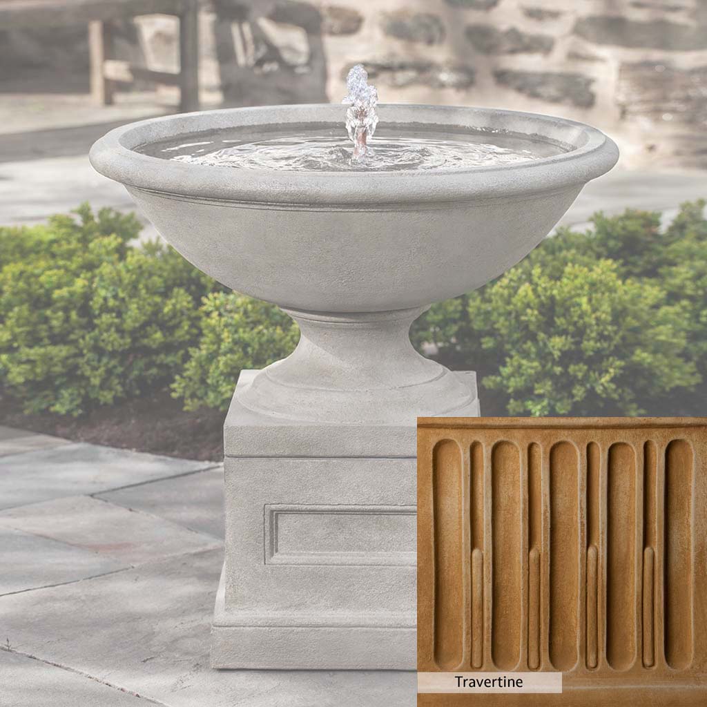 The Aurelia Fountain is handcrafted by skilled artisans in the USA. With their extensive experience, the Campania team applies a unique patina to ensure that each piece is special. This fountain is shown in the Greystone color. Campania International's proprietary cast stone blend is meticulously molded to create each piece used in the construction of this fountain. Due to the use of different materials and manufacturing processes, as well as varying photography conditions, natural variations in size, weight, and color can occur. The actual color may differ from the photo.