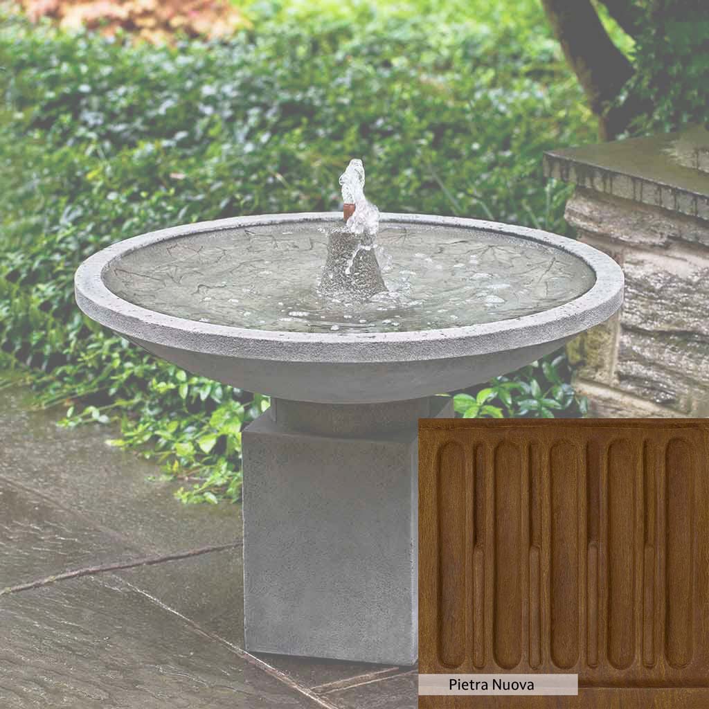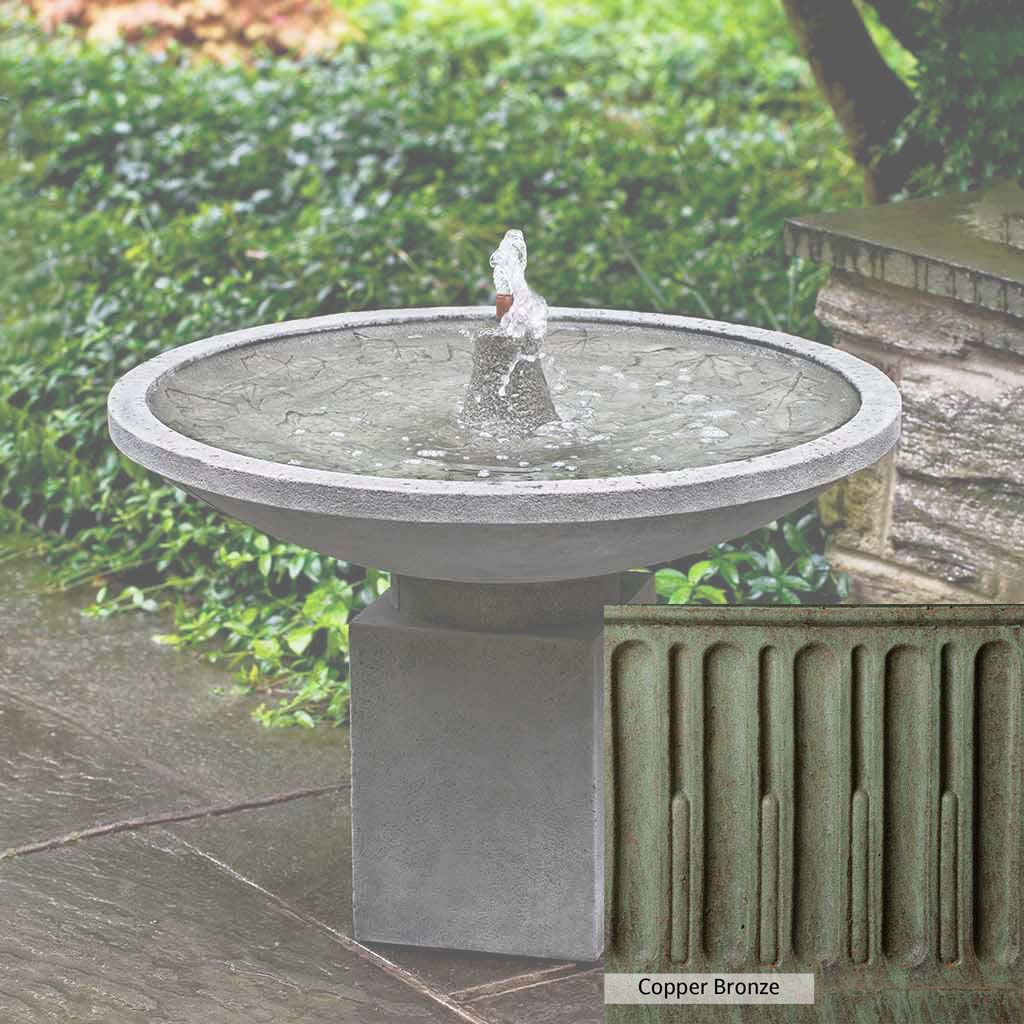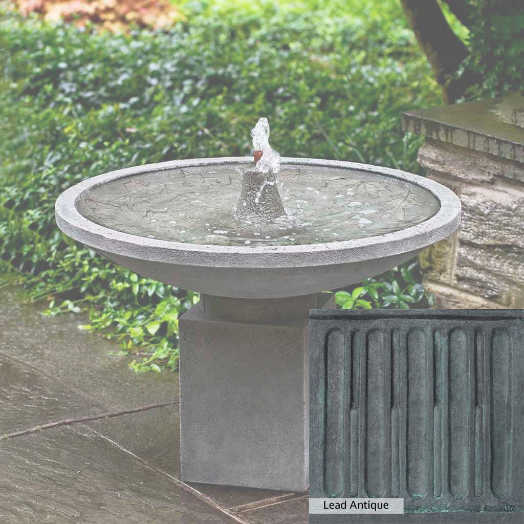 Skilled artisans in the USA handcraft the Autumn Leaves Fountain. The Campania team applies a unique patina, making each piece one-of-a-kind. This fountain is shown in the Alpine Stone color. Due to materials, manufacturing processes, and variations in photography conditions, natural differences can occur in size, weight, and color. The actual color may vary from the photo.