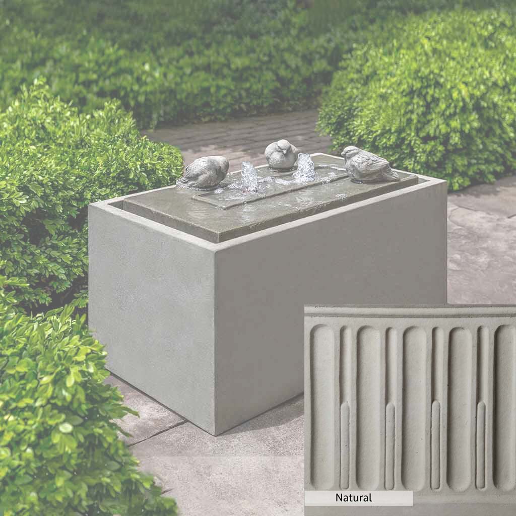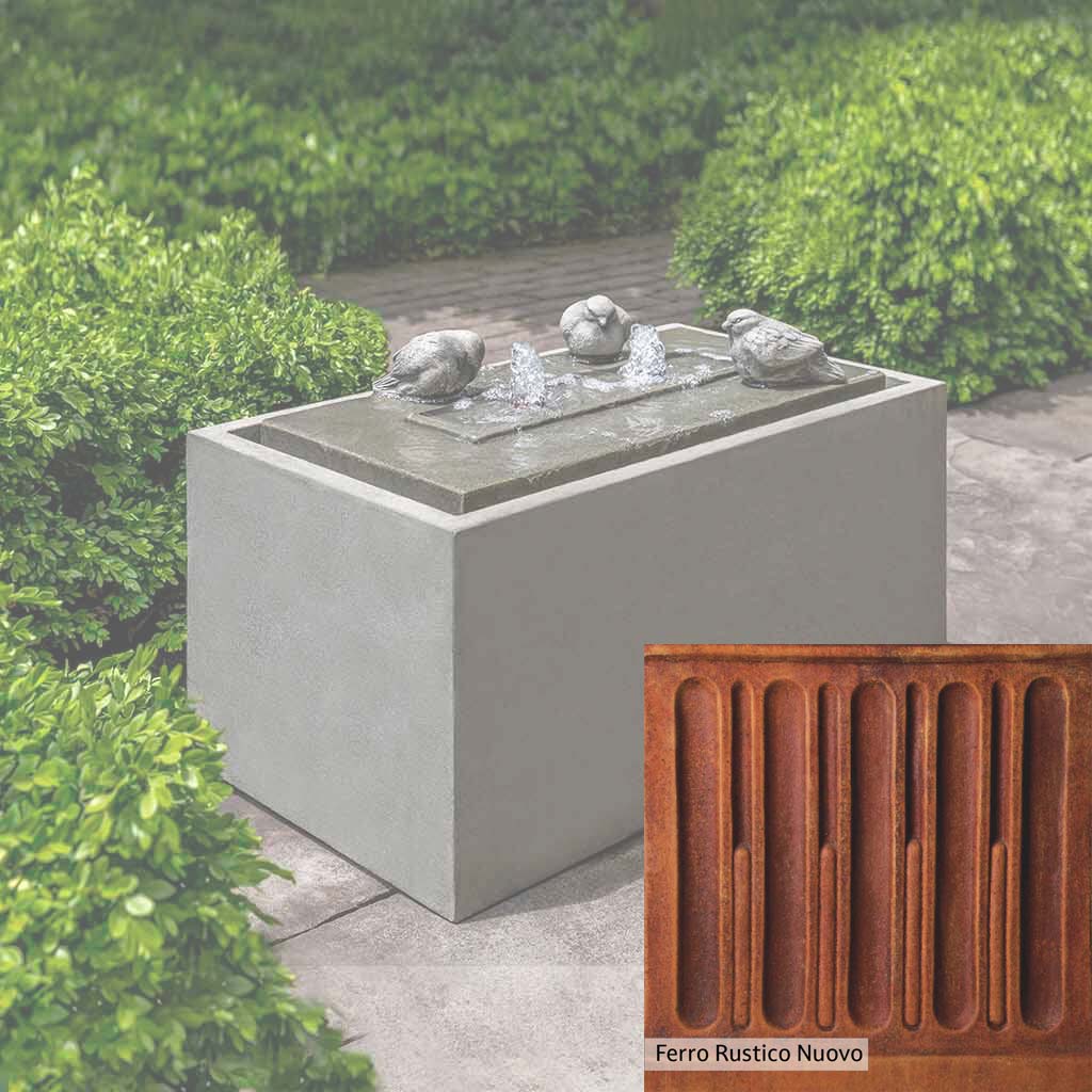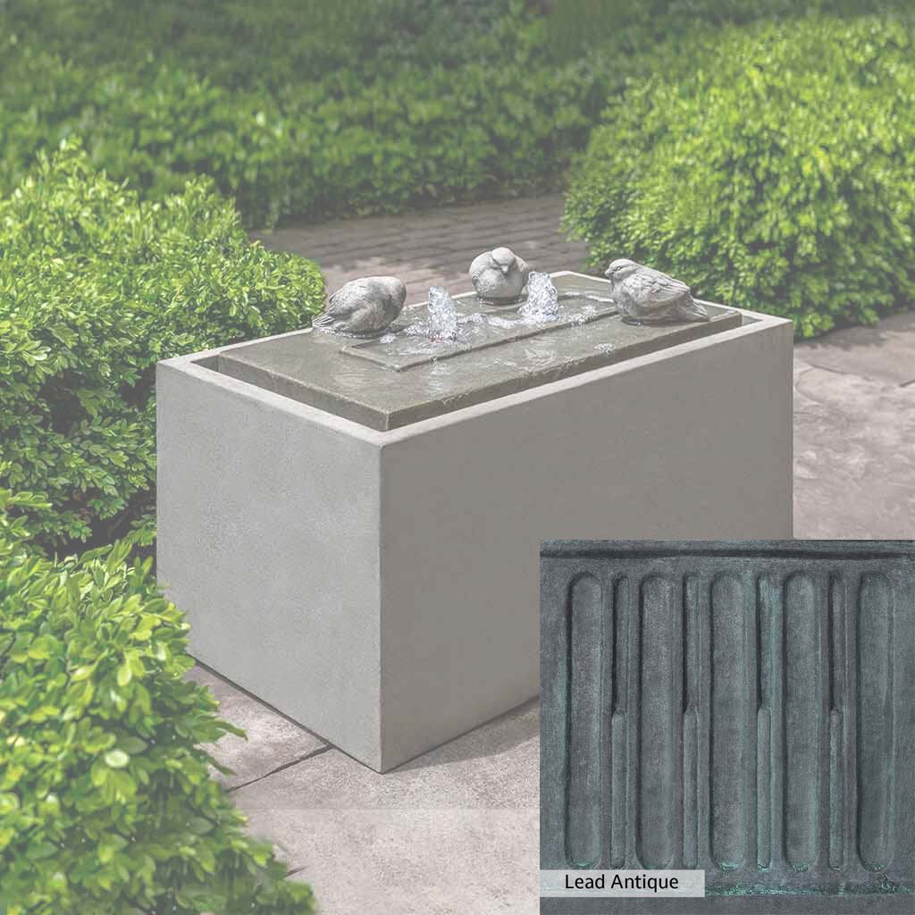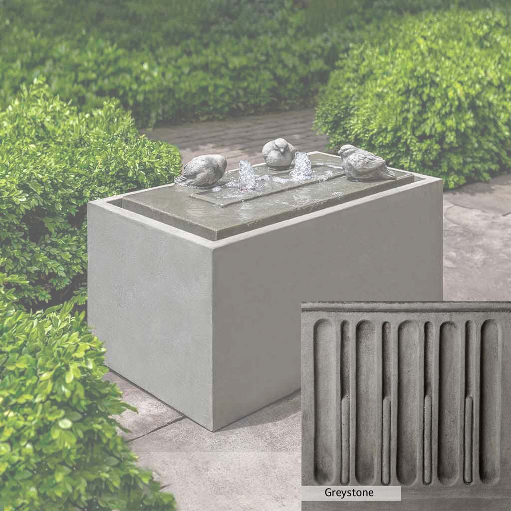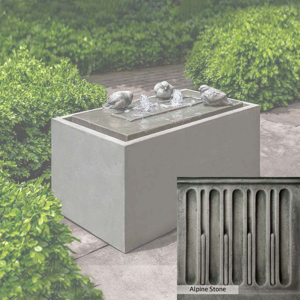 The Avondale Fountain is handcrafted by skilled artisans in the USA. The Campania team applies the unique patina with experienced hands, making each piece special. This fountain is featured in the Alpine Stone color. Campania International's exclusive cast stone blend is expertly molded to create each piece in the construction of this fountain. Due to the materials used and manufacturing processes, as well as variations in photography conditions, natural differences may occur in size, weight, and color. The actual color may vary from the photo.