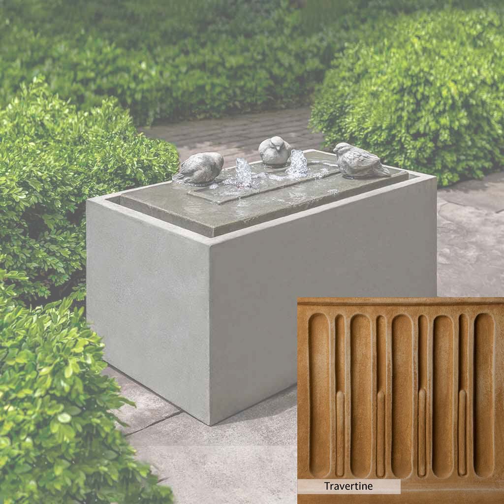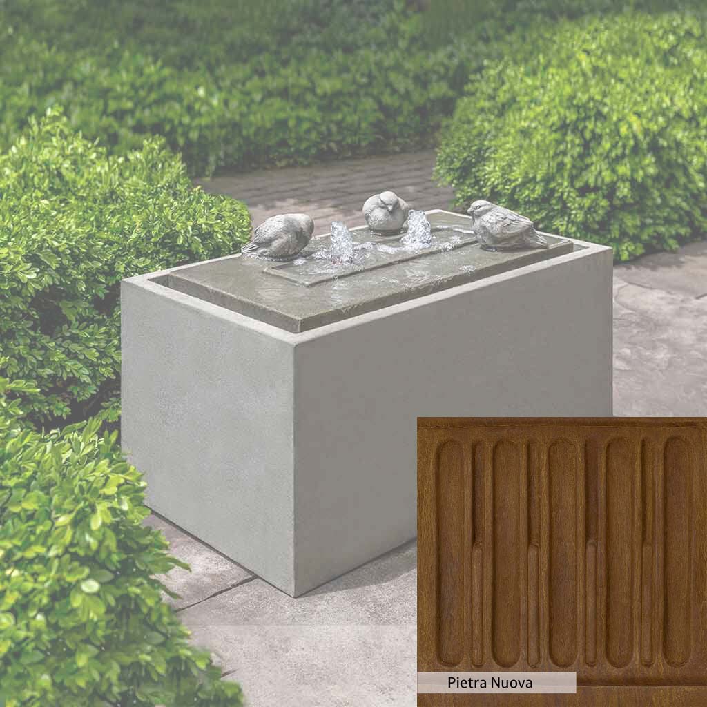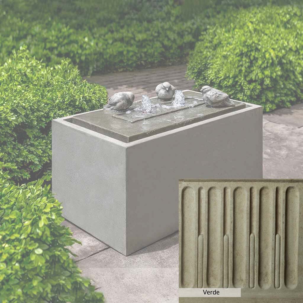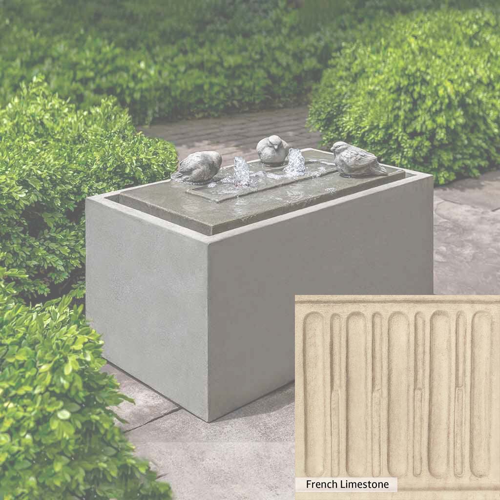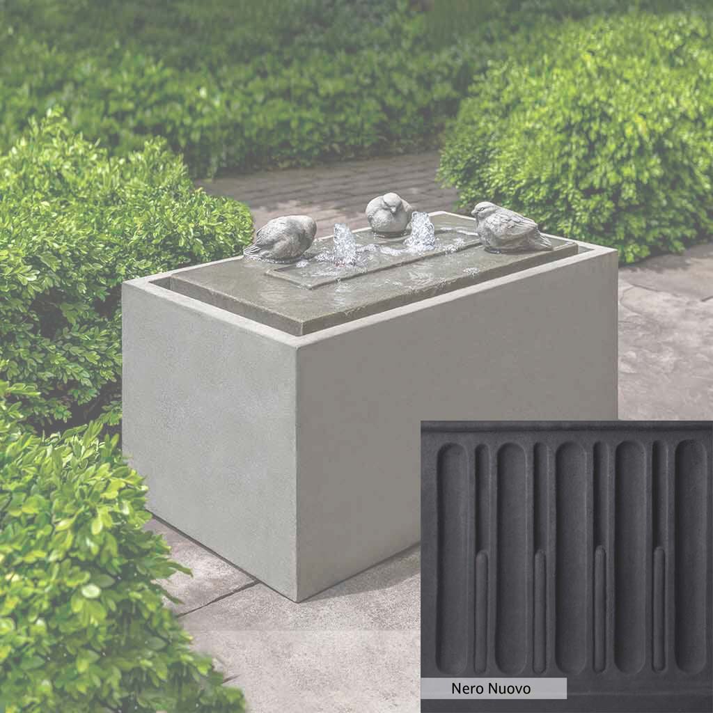 The Avondale Fountain is handcrafted by skilled artisans in the USA. The Campania team applies the unique patina with experienced hands, making each piece special. This fountain is featured in the Alpine Stone color. Campania International's exclusive cast stone blend is expertly molded to create each piece in the construction of this fountain. Due to the materials used and manufacturing processes, as well as variations in photography conditions, natural differences may occur in size, weight, and color. The actual color may vary from the photo.