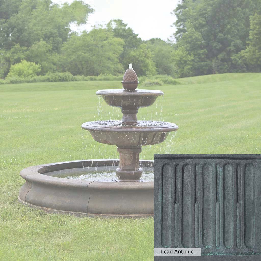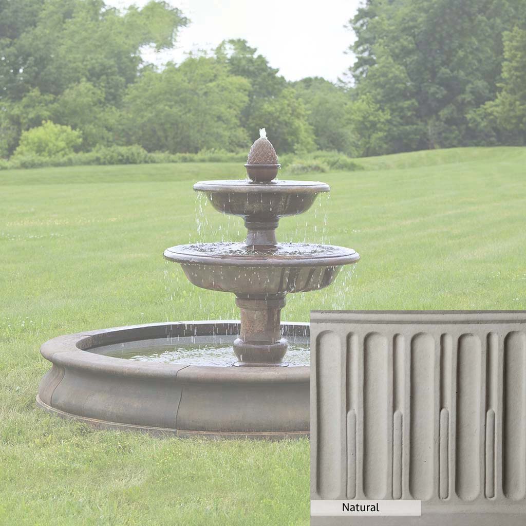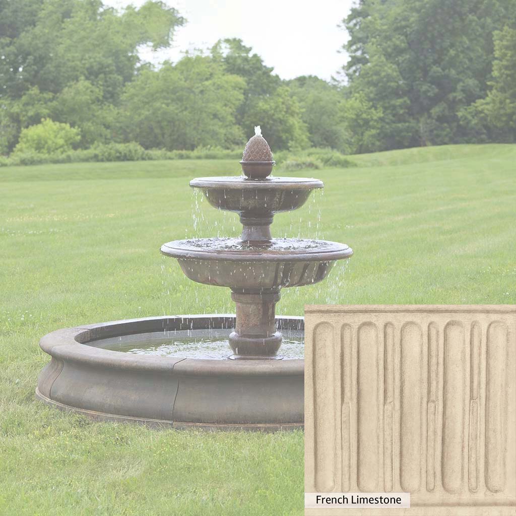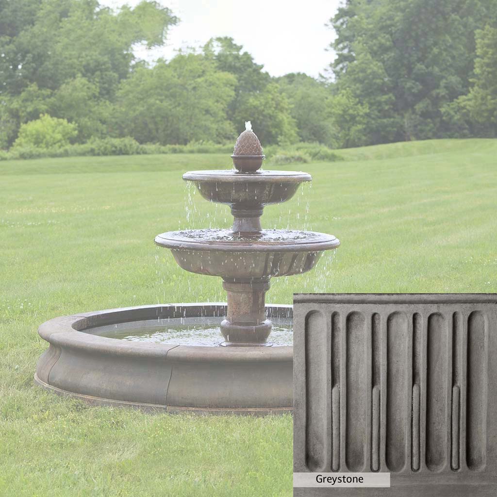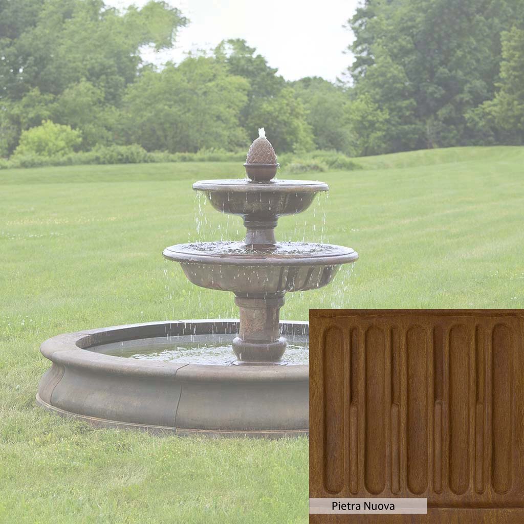 Skilled artisans in the USA handcraft the Beaufort Fountain. With their extensive experience, the Campania team applies the unique patina, ensuring each piece is extraordinary. This fountain is shone in the Pietra Nuovacolor. Campania International's proprietary cast stone blend is meticulously molded to create each piece used in the construction of this fountain. Due to the use of different materials and manufacturing processes, as well as varying photography conditions, natural variations in size, weight, and color can occur. The actual color may differ from the photo.