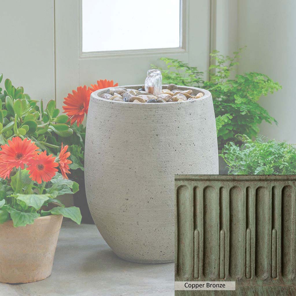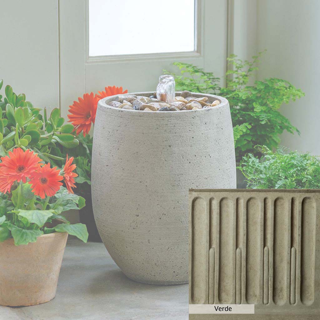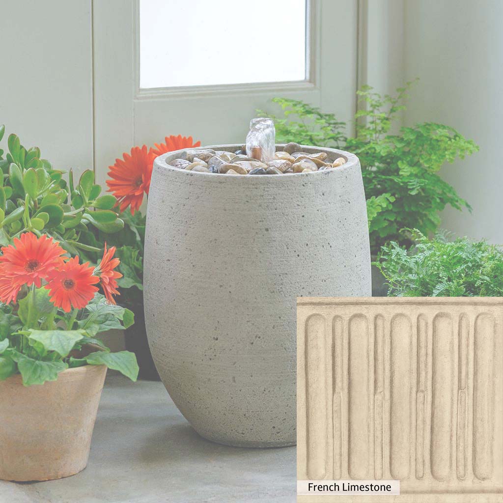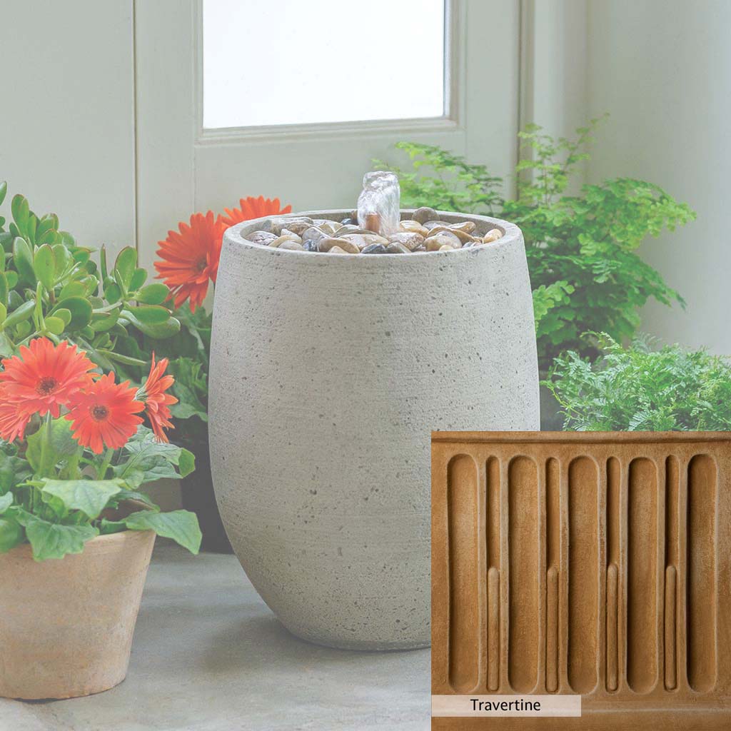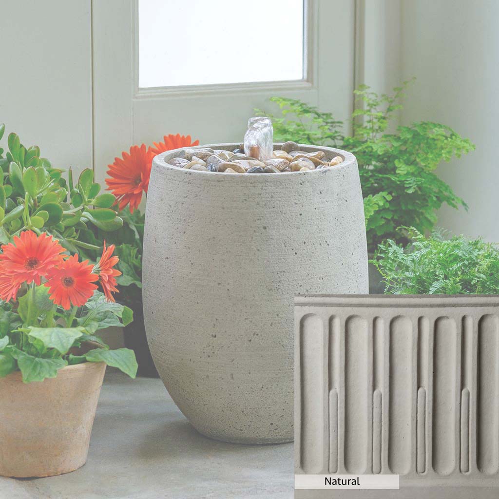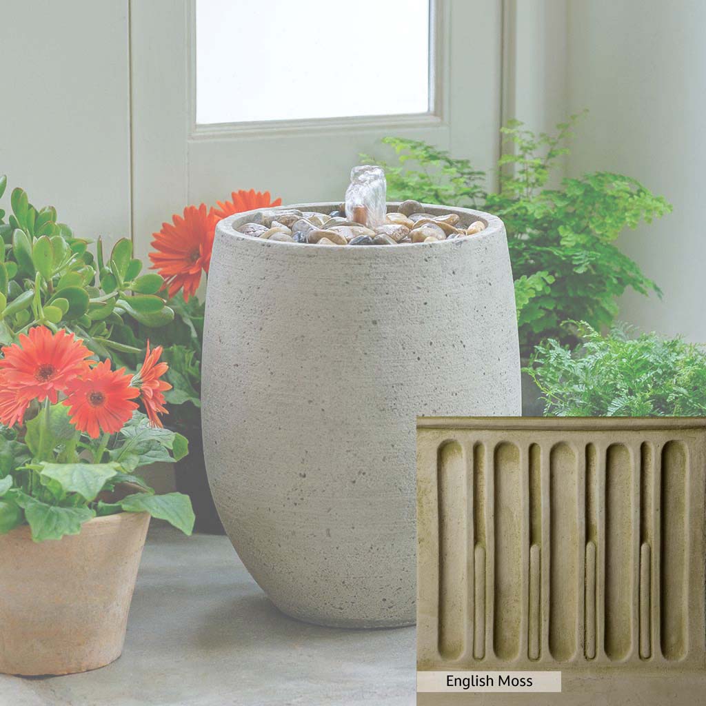 The Bebel Pebble Fountain is handcrafted by skilled artisans in the USA. With their extensive experience, the Campania team applies a unique patina to ensure that each piece is special. This fountain is shown in the Greystone color. Campania International's proprietary cast stone blend is meticulously molded to create each piece used in the construction of this fountain. Due to the use of different materials and manufacturing processes, as well as varying photography conditions, natural variations in size, weight, and color can occur. The actual color may differ from the photo.