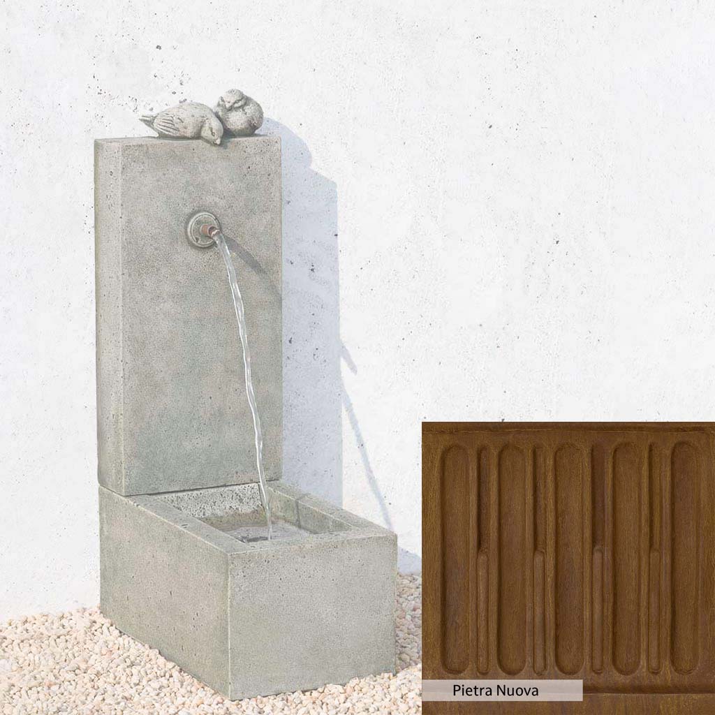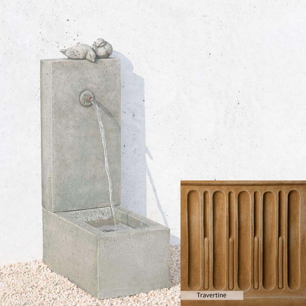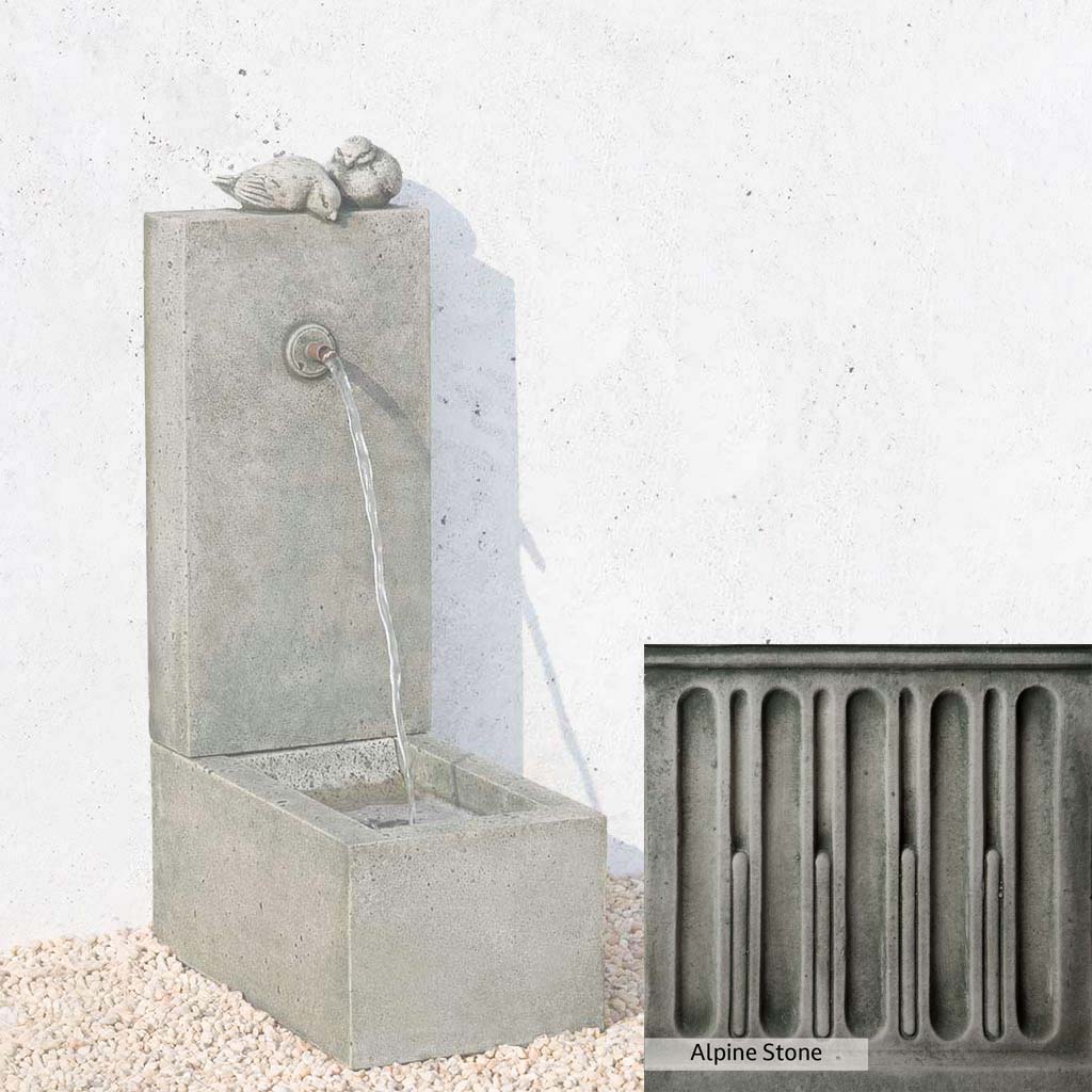 Skilled artisans in the USA handcraft the Bird Element Fountain. With their extensive experience, the Campania team applies the unique patina, ensuring each piece is extraordinary. This fountain is shone in the Alpine Stonecolor. Campania International's proprietary cast stone blend is meticulously molded to create each piece used in the construction of this fountain. Due to the use of different materials and manufacturing processes, as well as varying photography conditions, natural variations in size, weight, and color can occur. The actual color may differ from the photo.
