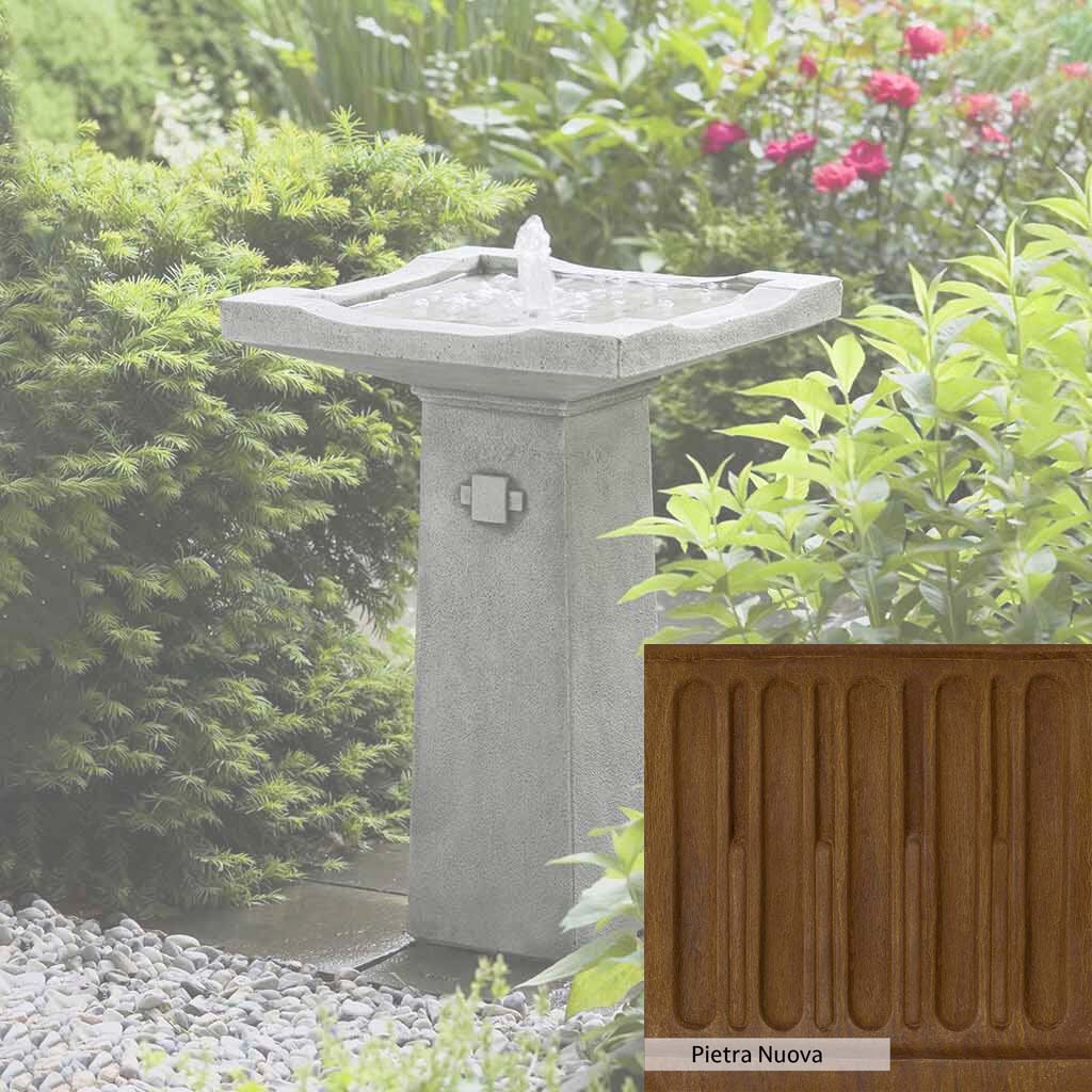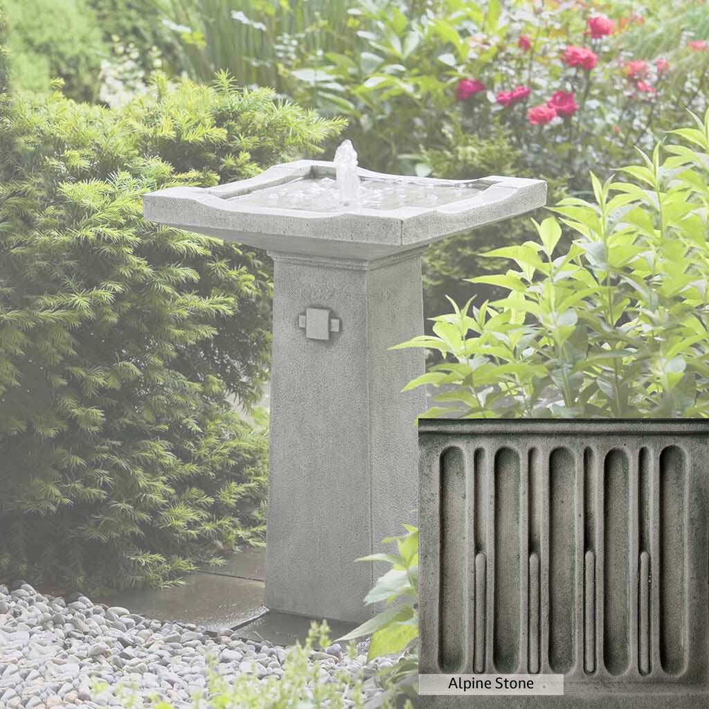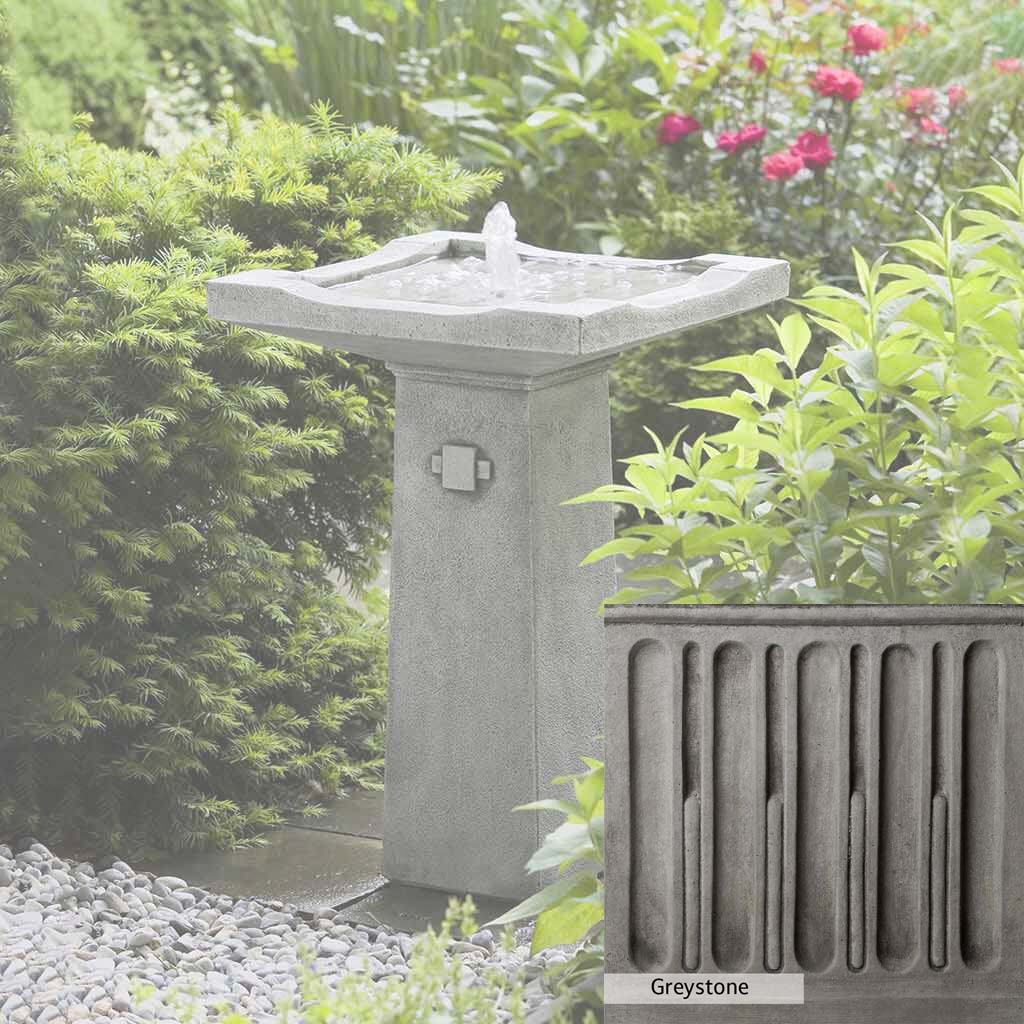The Bjorn Fountain is handcrafted by skilled artisans in the USA. The Campania team applies a unique patina with experienced hands, making each piece special. This fountain is featured in the Alpine Stone color. Campania International's exclusive cast stone blend is expertly molded to create each piece in the construction of this fountain. Due to the materials used and manufacturing processes, as well as variations in photography conditions, natural differences may occur in size, weight, and color. The actual color may vary from the photo.