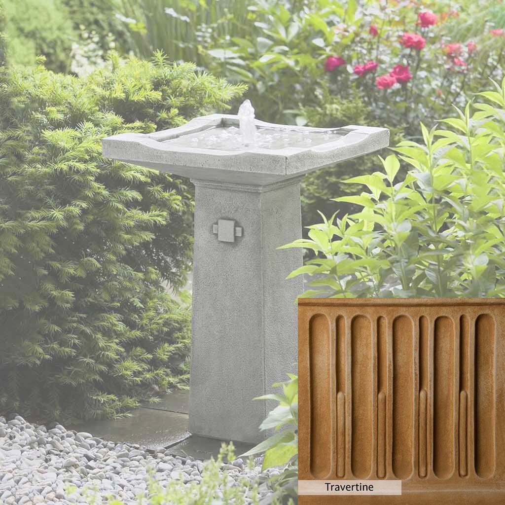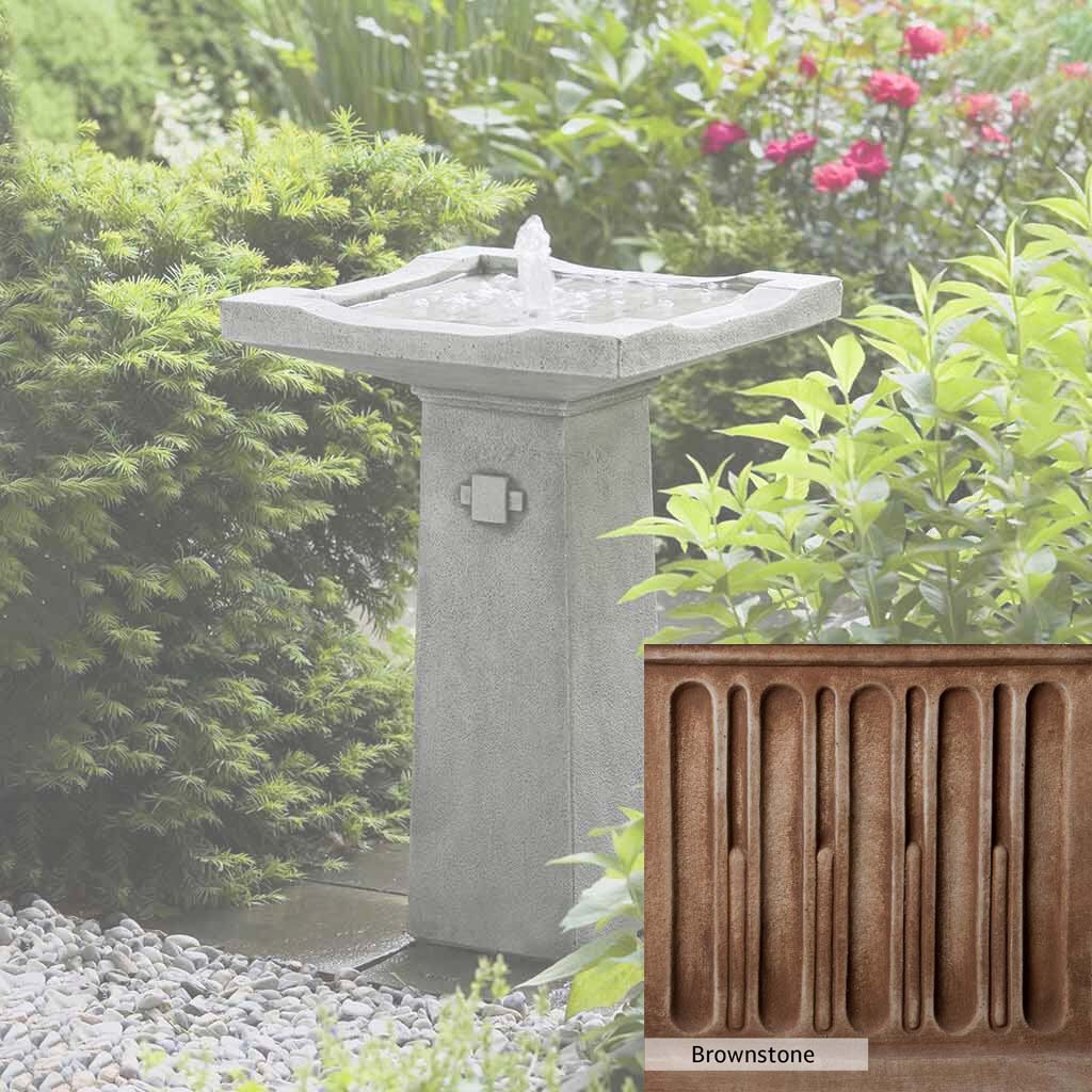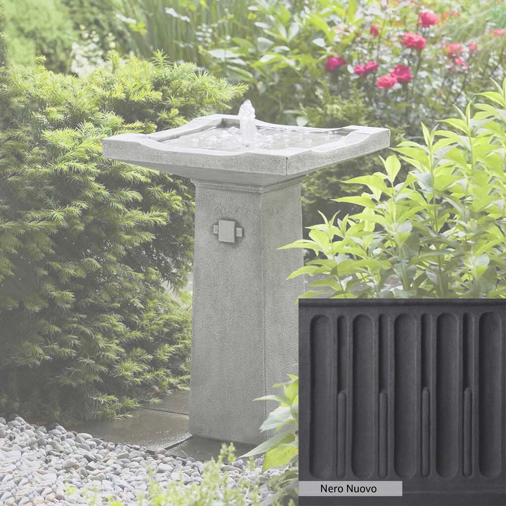 The Bjorn Fountain is handcrafted by skilled artisans in the USA. The Campania team applies a unique patina with experienced hands, making each piece special. This fountain is featured in the Alpine Stone color. Campania International's exclusive cast stone blend is expertly molded to create each piece in the construction of this fountain. Due to the materials used and manufacturing processes, as well as variations in photography conditions, natural differences may occur in size, weight, and color. The actual color may vary from the photo.