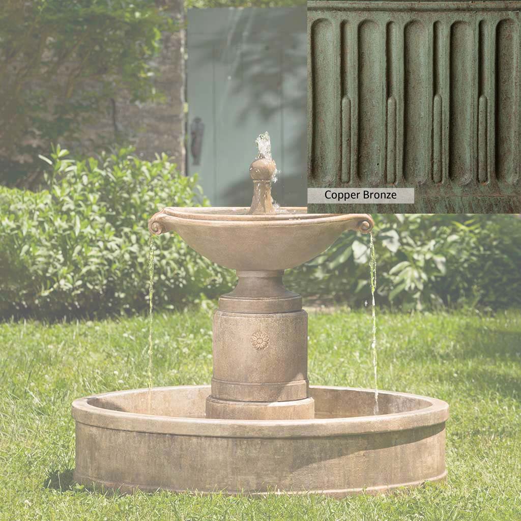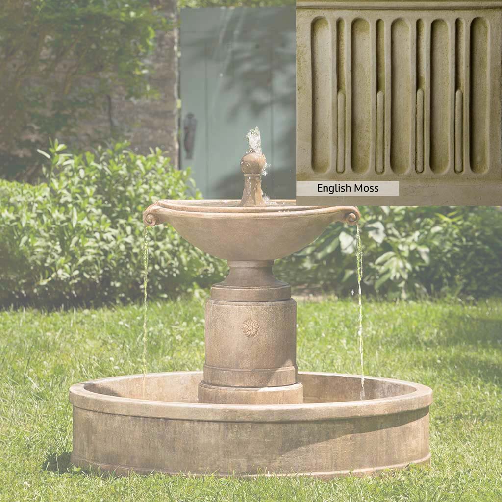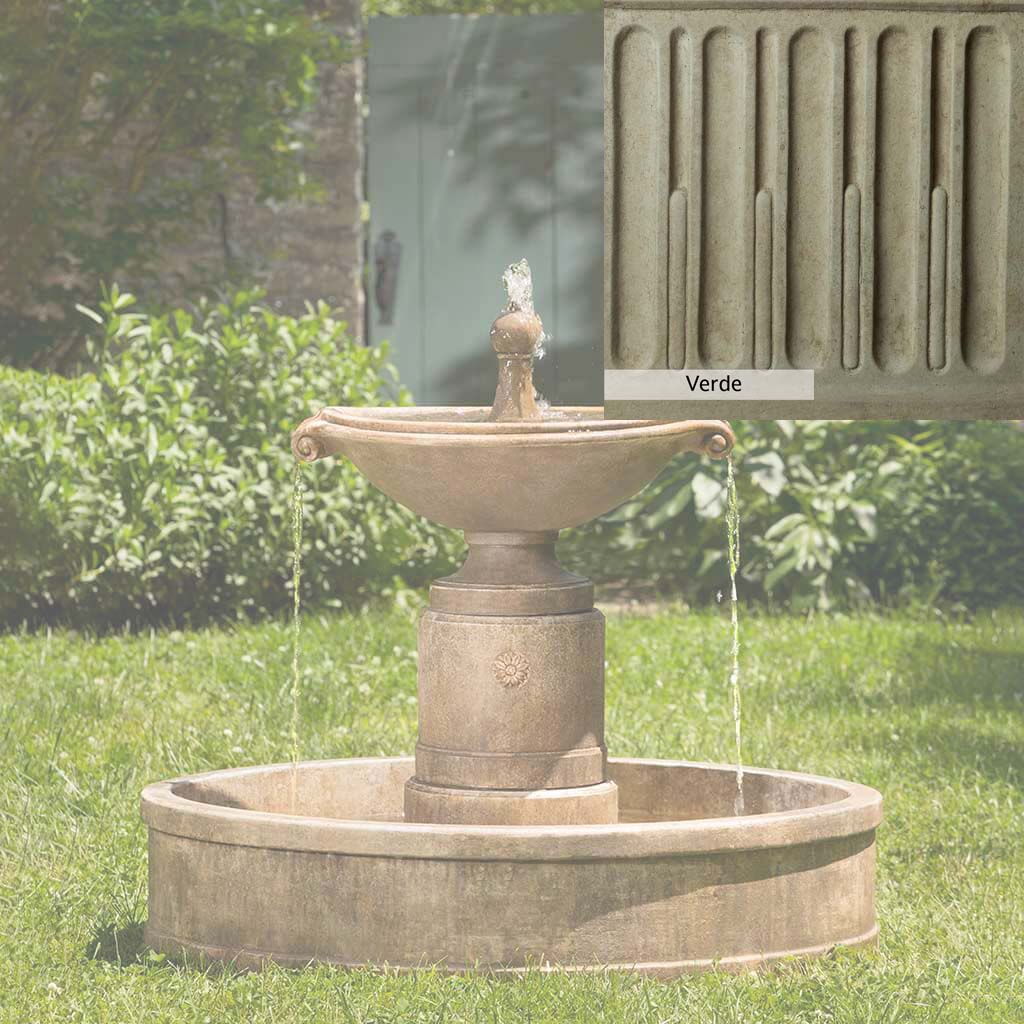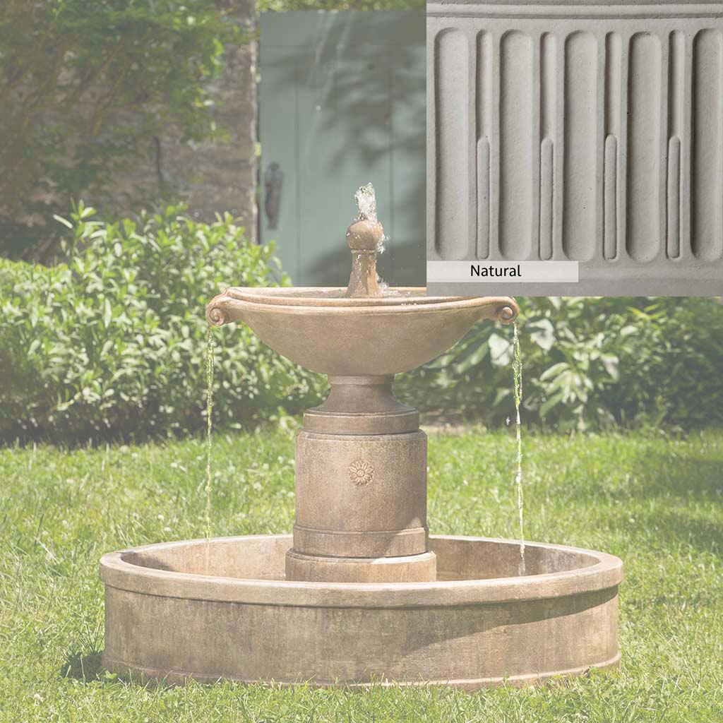 Skilled artisans in the USA handcraft the Borghese Fountain in Basin. The Campania team applies a unique patina, making each piece one-of-a-kind. This fountain is shown in the Pietra Nuova color. Due to materials, manufacturing processes, and variations in photography conditions, natural differences can occur in size, weight, and color. The actual color may vary from the photo.