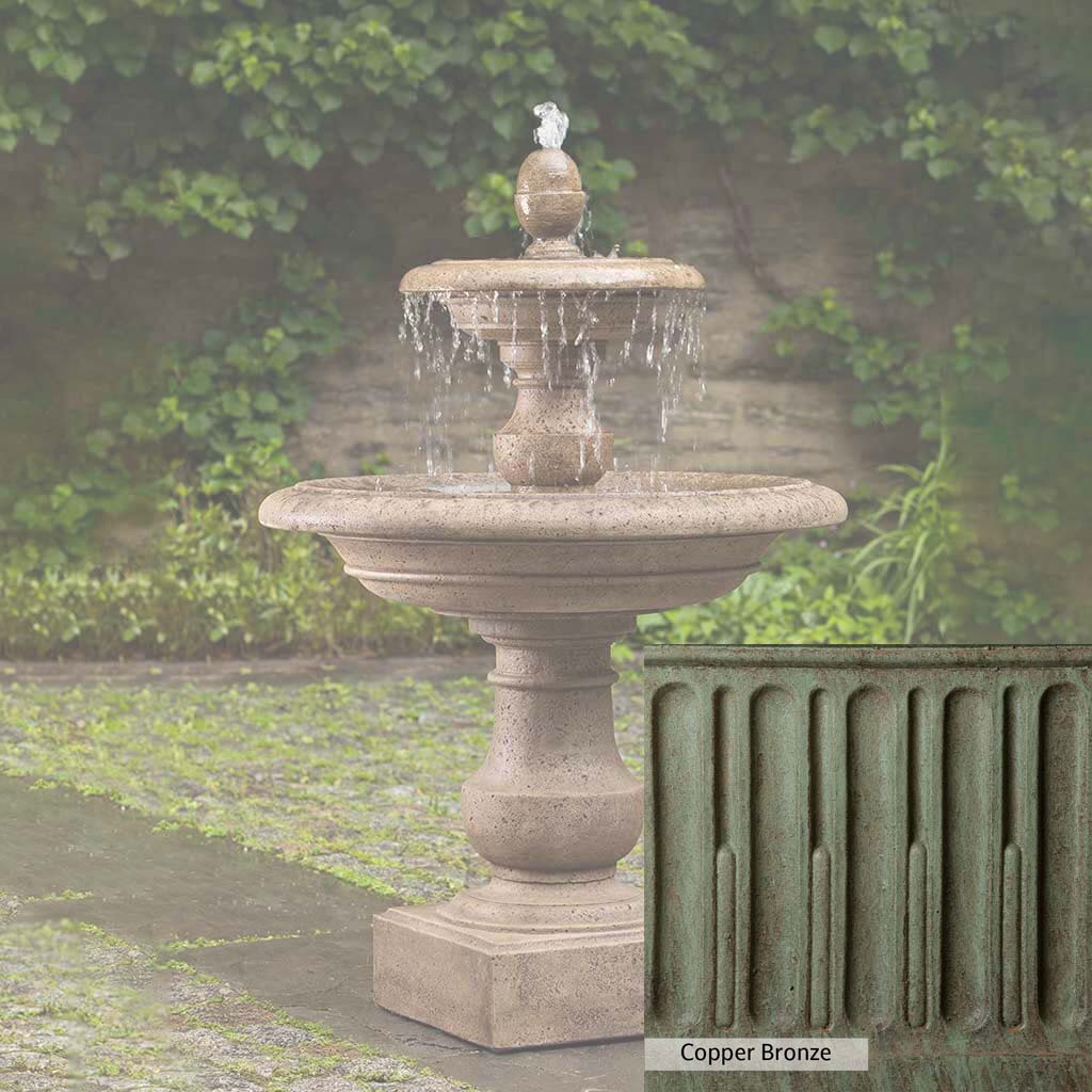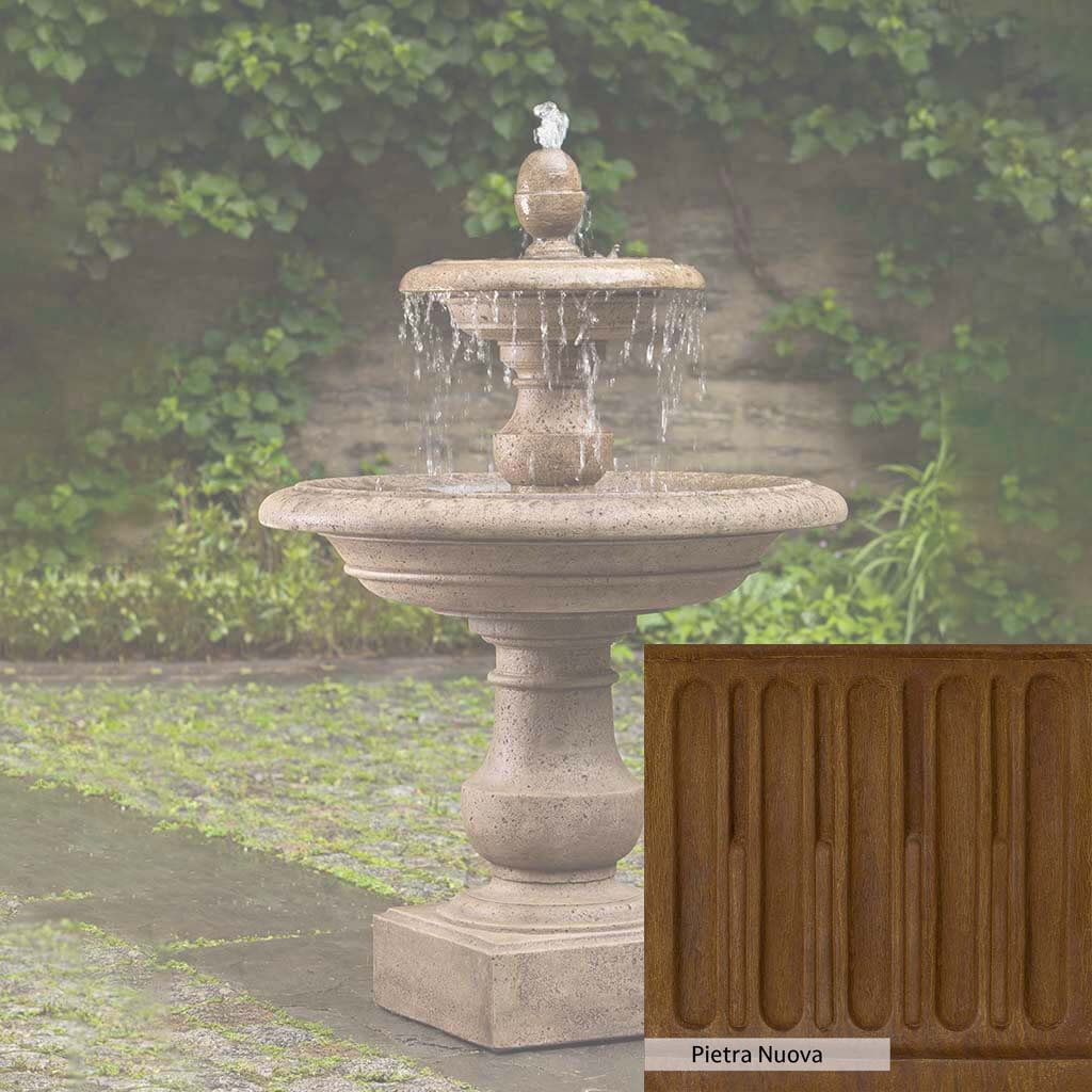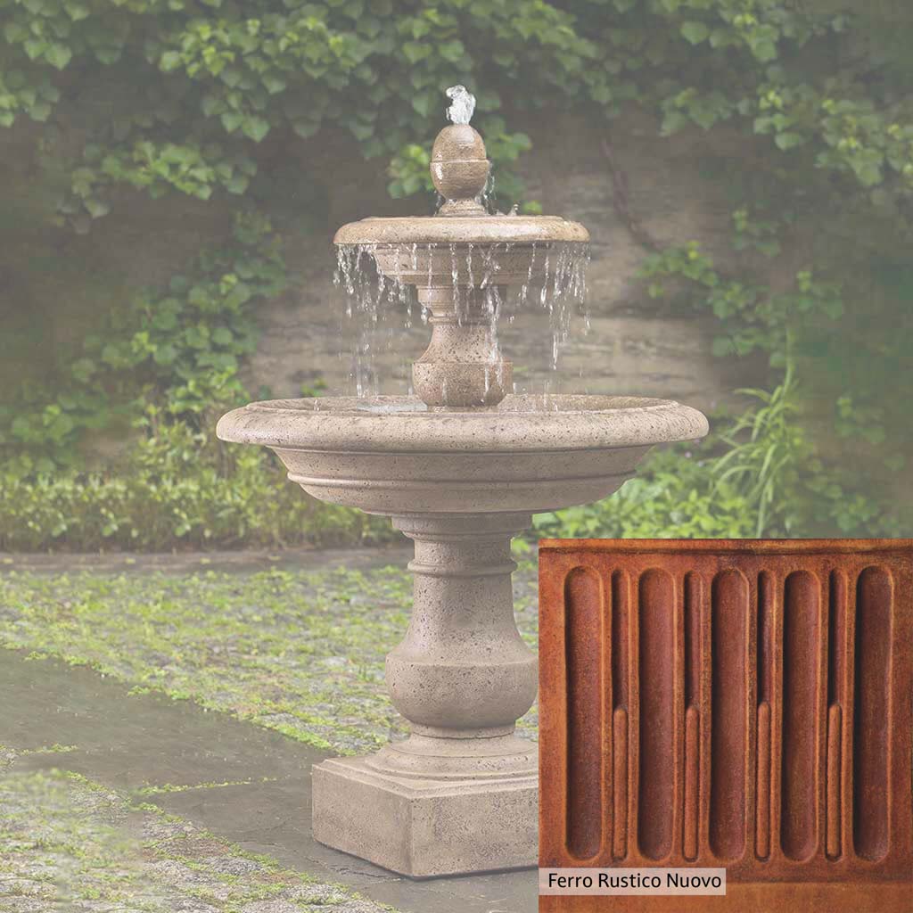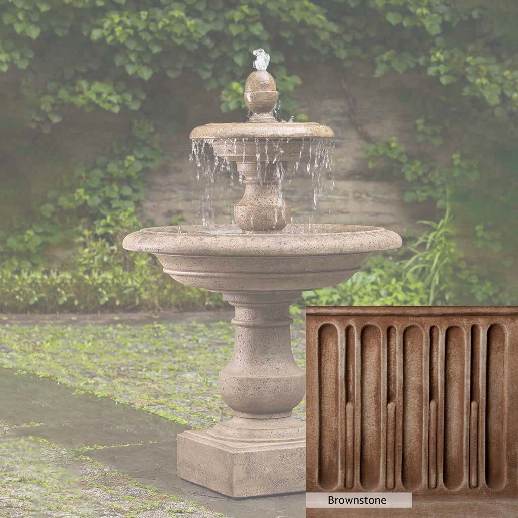 The Caterina Fountain is handcrafted by skilled artisans in the USA. The Campania team applies a unique patina with experienced hands, making each piece special. This fountain is featured in the Brownstone color. Campania International's exclusive cast stone blend is expertly molded to create each piece in the construction of this fountain. Due to the materials used and manufacturing processes, as well as variations in photography conditions, natural differences may occur in size, weight, and color. The actual color may vary from the photo.