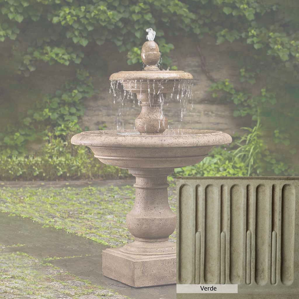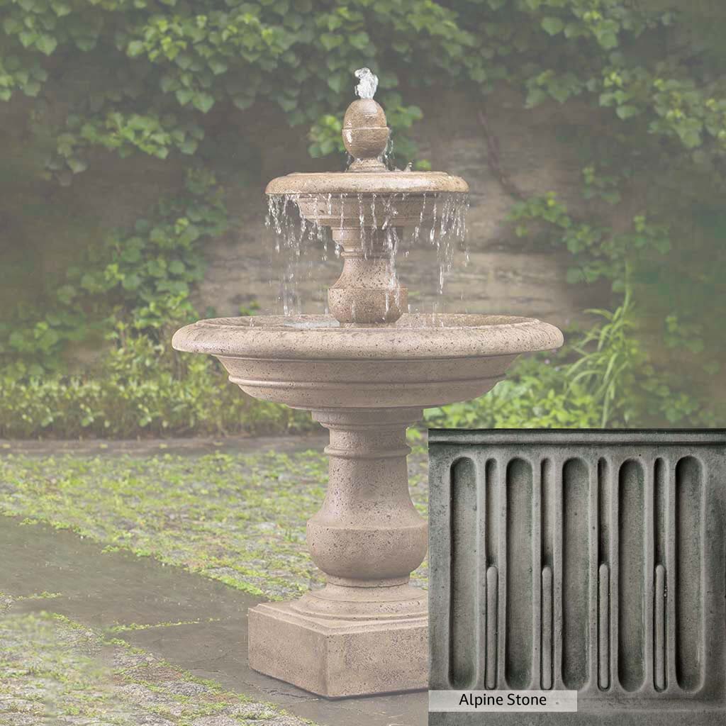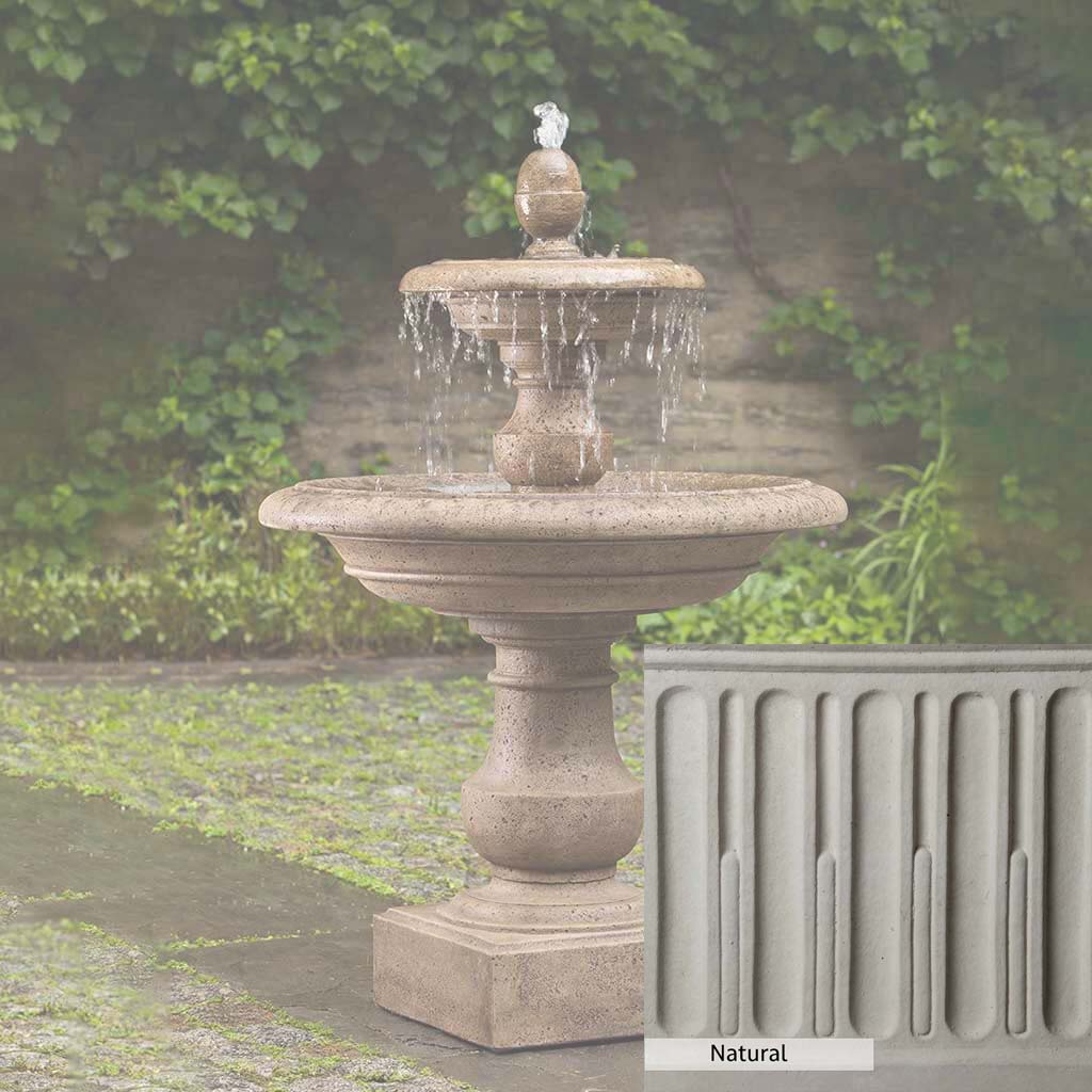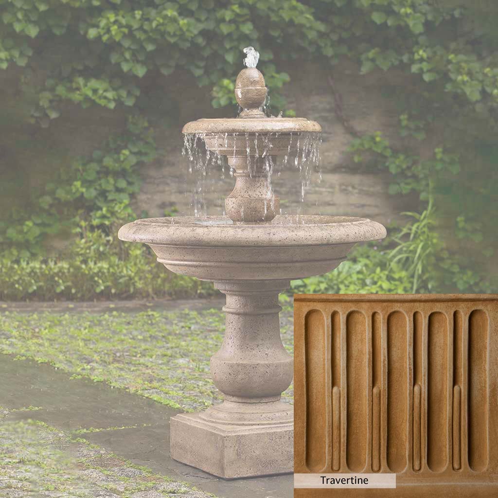 The Caterina Fountain is handcrafted by skilled artisans in the USA. The Campania team applies a unique patina with experienced hands, making each piece special. This fountain is featured in the Brownstone color. Campania International's exclusive cast stone blend is expertly molded to create each piece in the construction of this fountain. Due to the materials used and manufacturing processes, as well as variations in photography conditions, natural differences may occur in size, weight, and color. The actual color may vary from the photo.