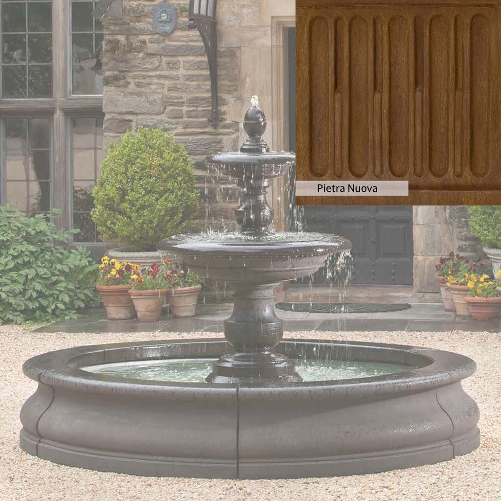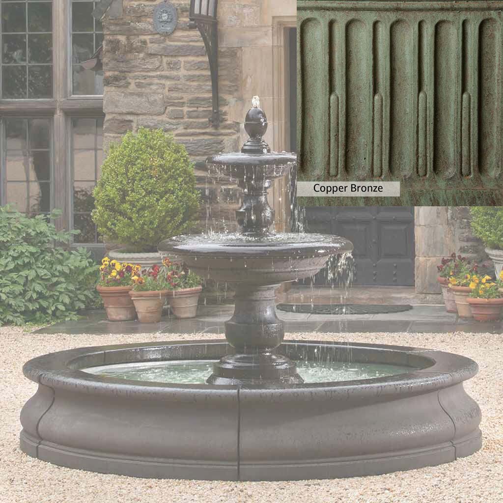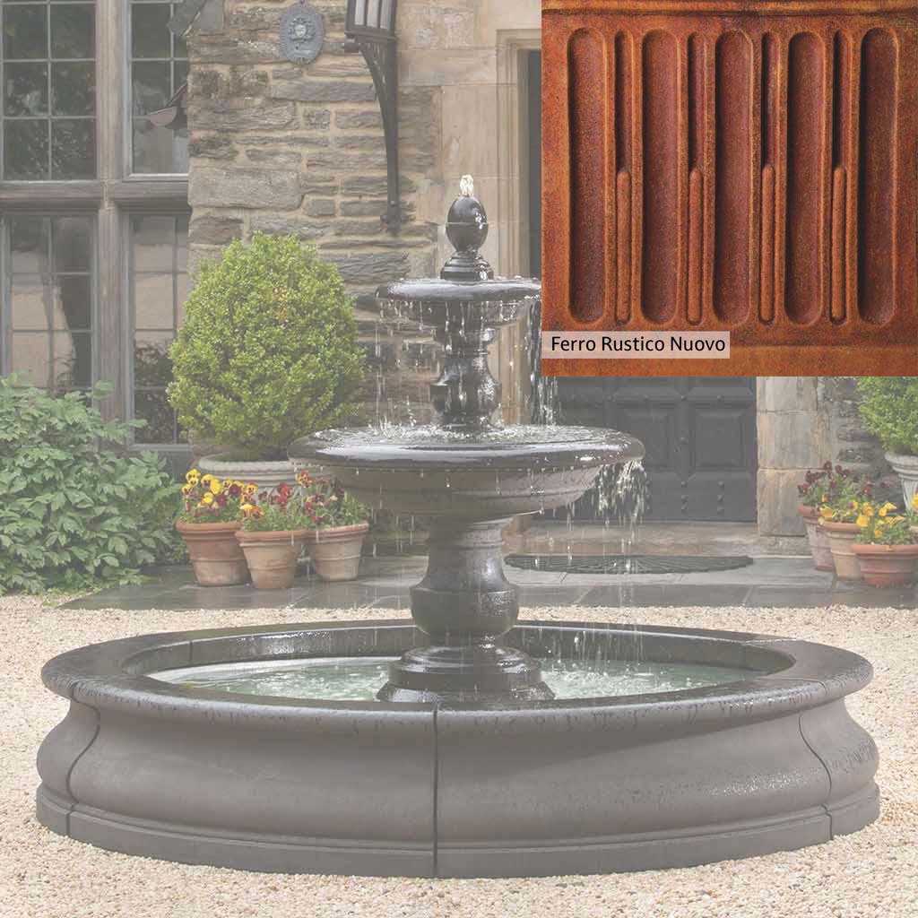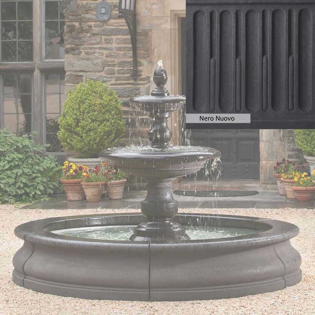 The Caterina Fountain in Basin is handcrafted by skilled artisans in the USA. With their extensive experience, the Campania team applies a unique patina to ensure that each piece is special. This fountain is shown in the Nero Nuovo color. Campania International's proprietary cast stone blend is meticulously molded to create each piece used in the construction of this fountain. Due to the use of different materials and manufacturing processes, as well as varying photography conditions, natural variations in size, weight, and color can occur. The actual color may differ from the photo.
