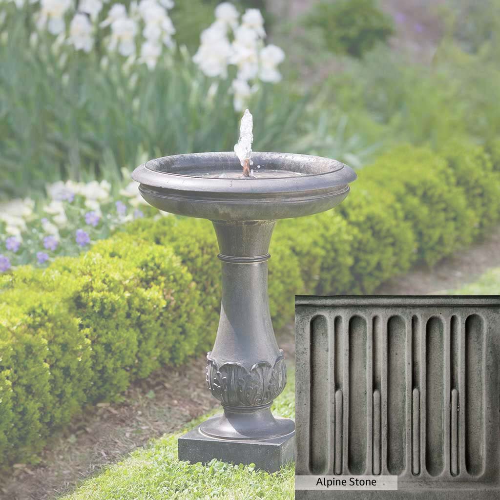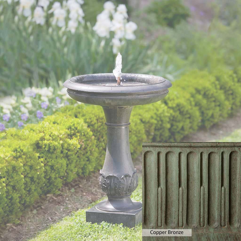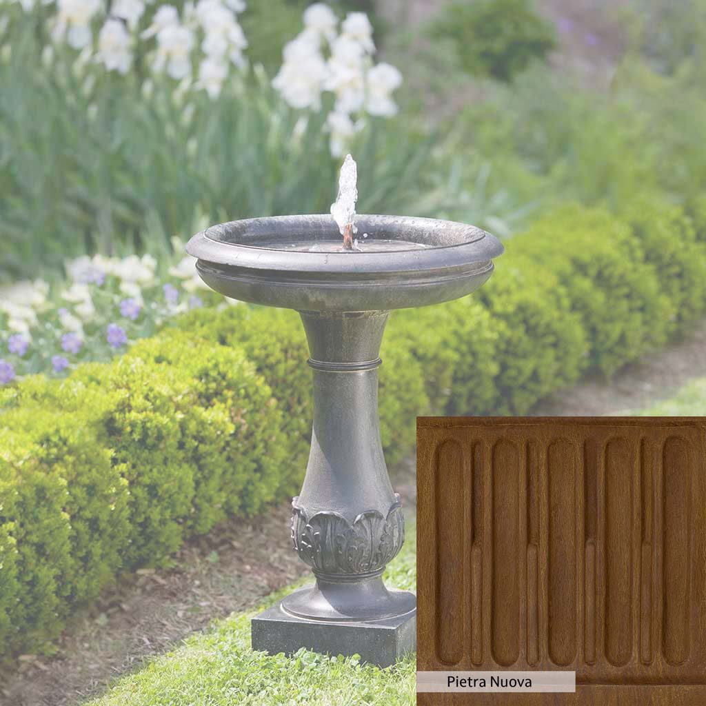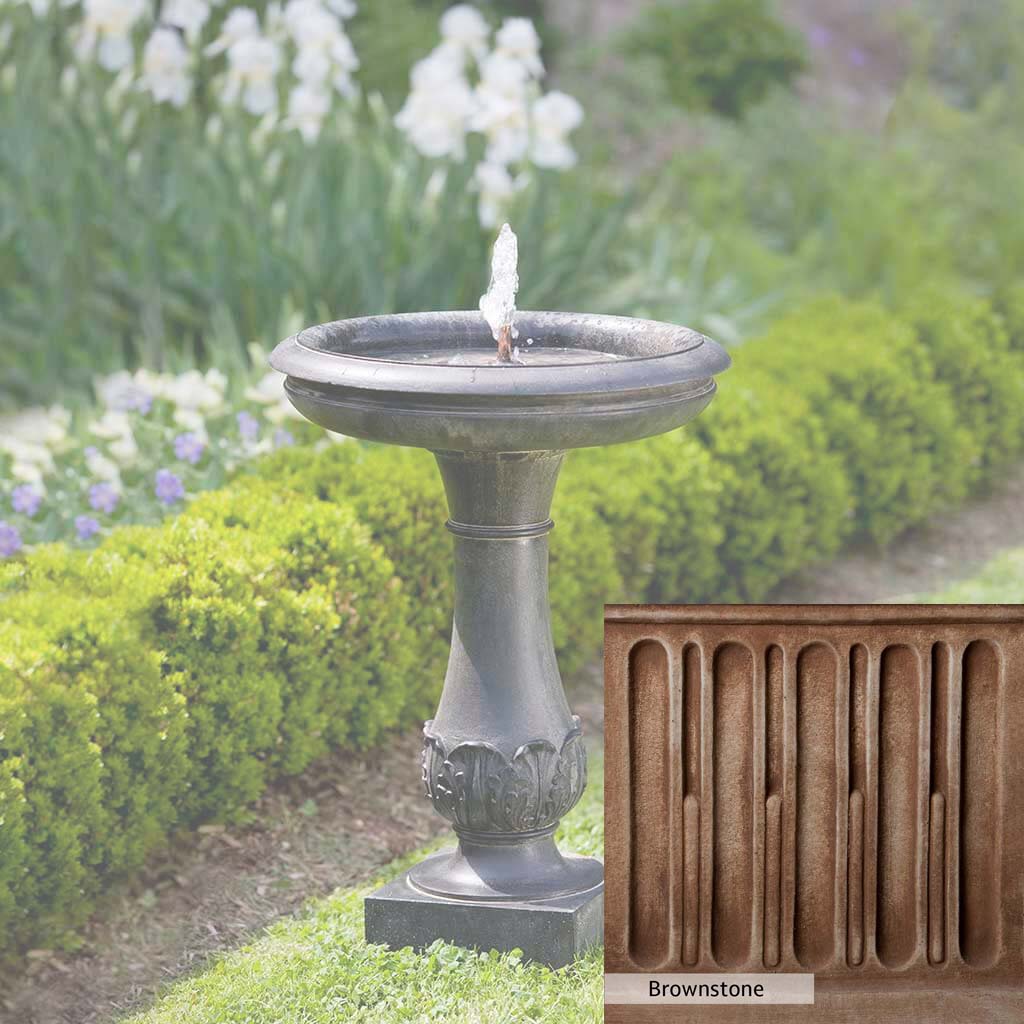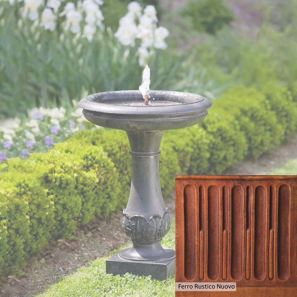 The Chatsworth Fountain is handcrafted by skilled artisans in the USA. With their extensive experience, the Campania team applies a unique patina to ensure that each piece is special. This fountain is shown in the Nero Nuovo color. Campania International's proprietary cast stone blend is meticulously molded to create each piece used in the construction of this fountain. Due to the use of different materials and manufacturing processes, as well as varying photography conditions, natural variations in size, weight, and color can occur. The actual color may differ from the photo.