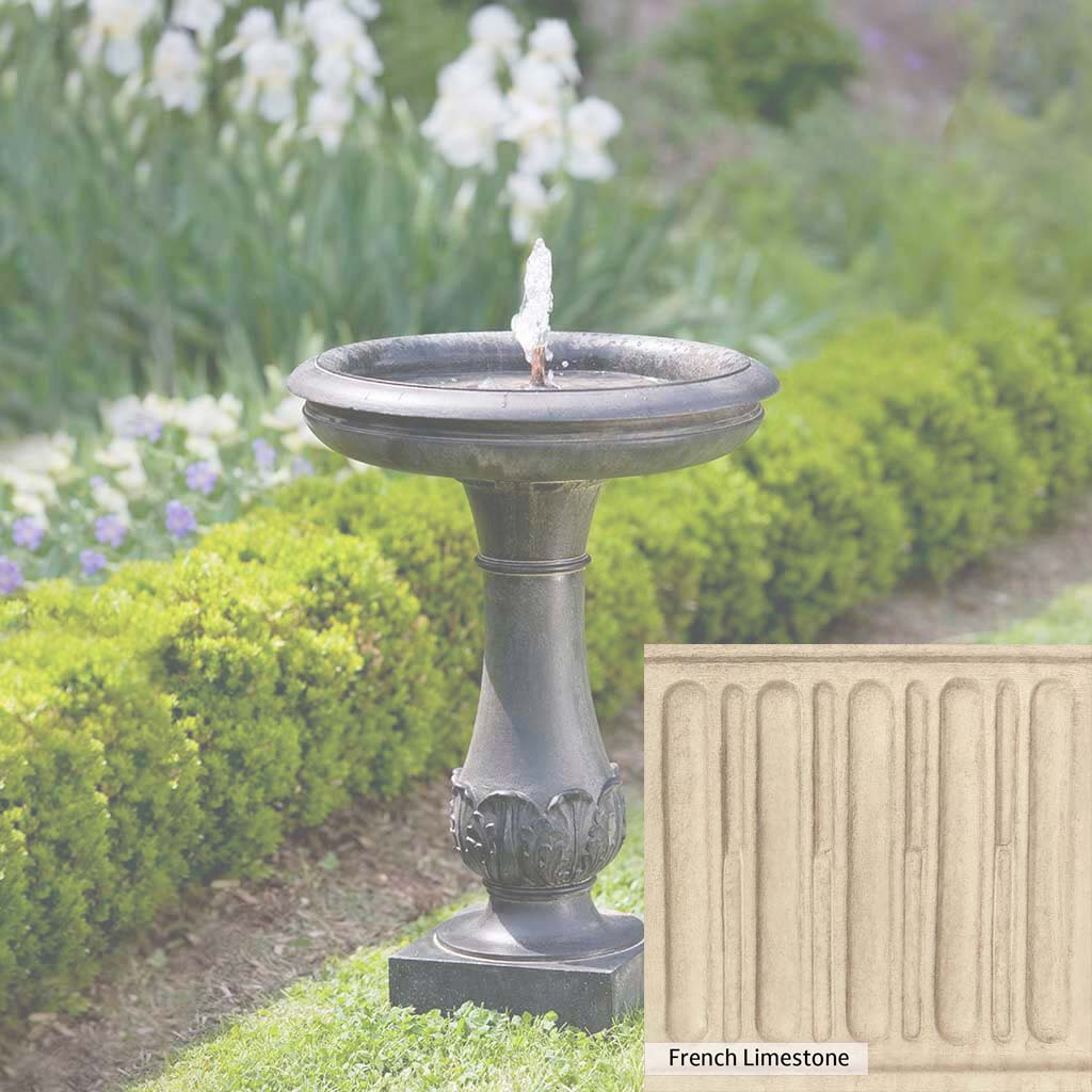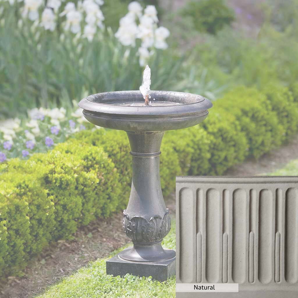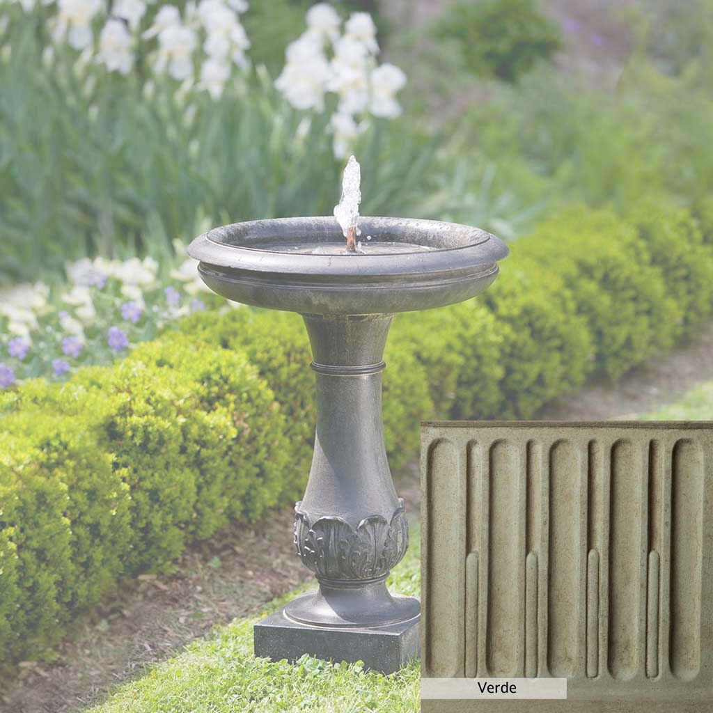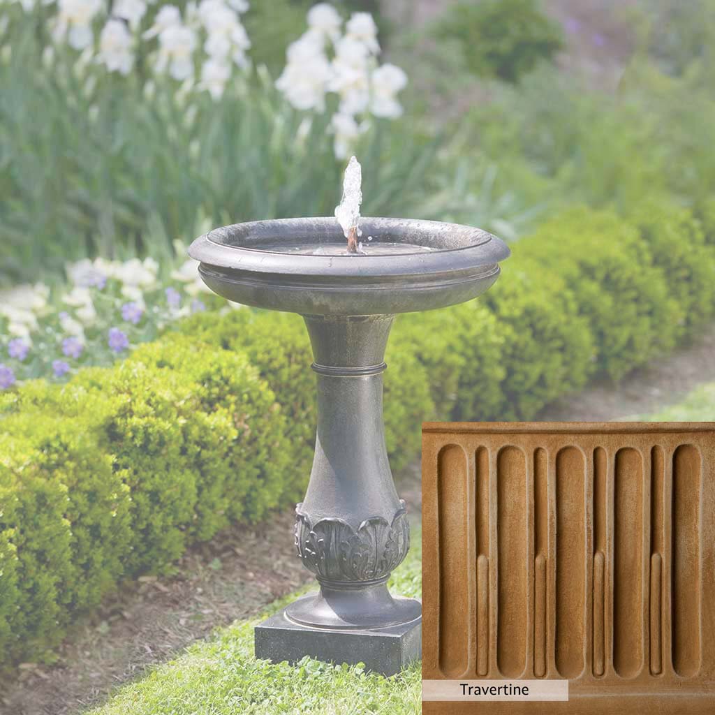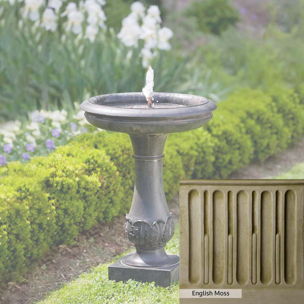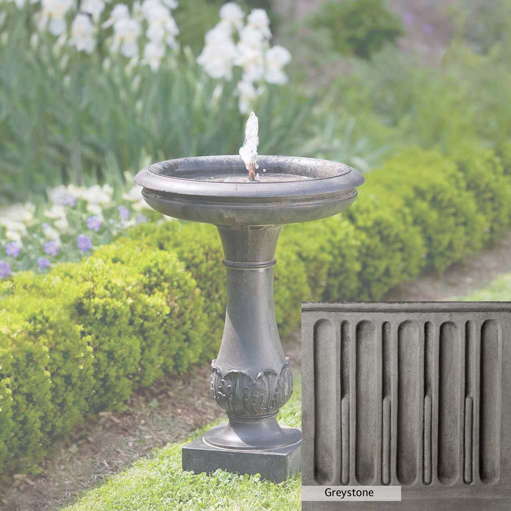 The Chatsworth Fountain is handcrafted by skilled artisans in the USA. With their extensive experience, the Campania team applies a unique patina to ensure that each piece is special. This fountain is shown in the Nero Nuovo color. Campania International's proprietary cast stone blend is meticulously molded to create each piece used in the construction of this fountain. Due to the use of different materials and manufacturing processes, as well as varying photography conditions, natural variations in size, weight, and color can occur. The actual color may differ from the photo.
