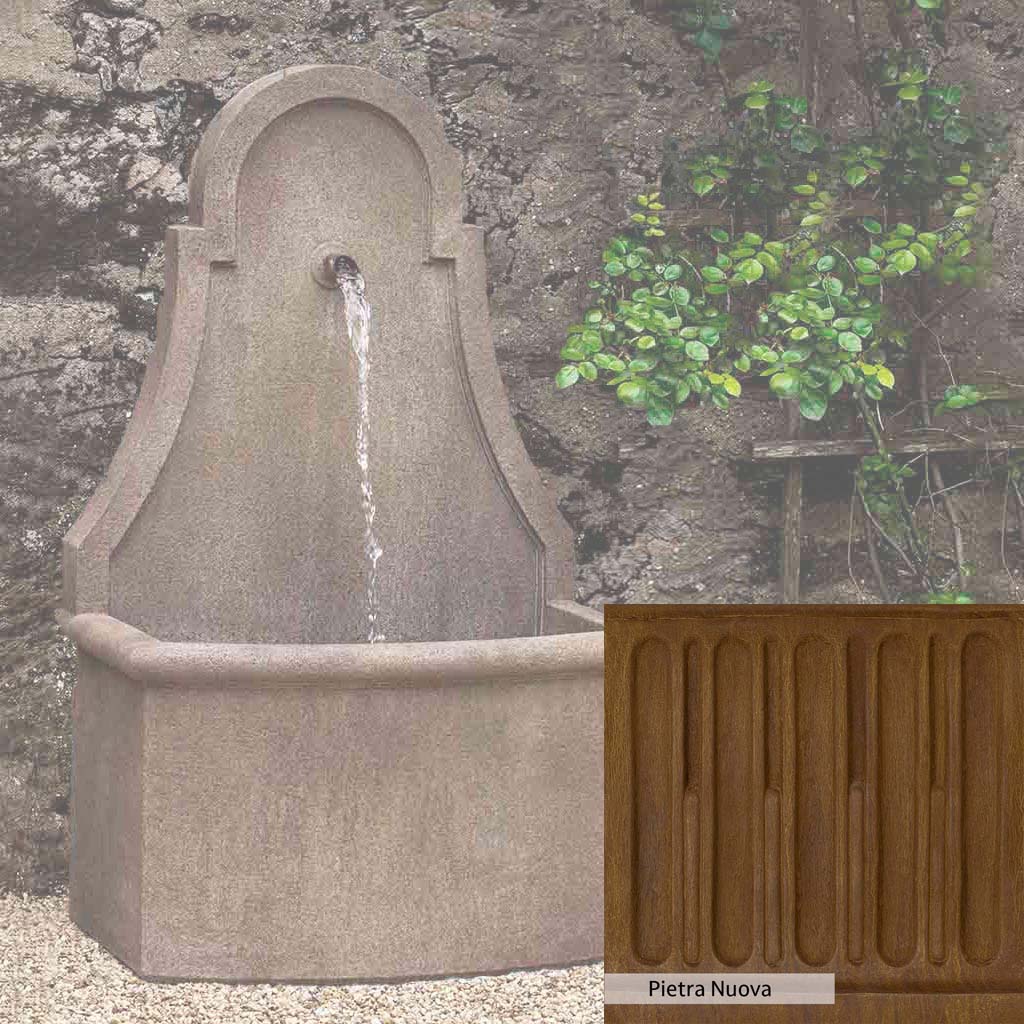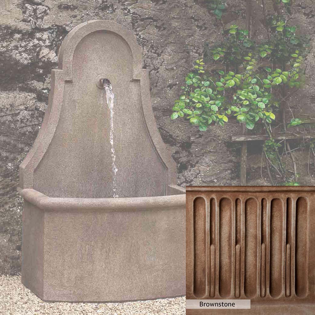 Skilled artisans in the USA handcraft the Closerie Wall Fountain. With their extensive experience, the Campania team applies the unique patina, ensuring each piece is extraordinary. This fountain is shone in the Aged Limestonecolor. Campania International's proprietary cast stone blend is meticulously molded to create each piece used in the construction of this fountain. Due to the use of different materials and manufacturing processes, as well as varying photography conditions, natural variations in size, weight, and color can occur. The actual color may differ from the photo.