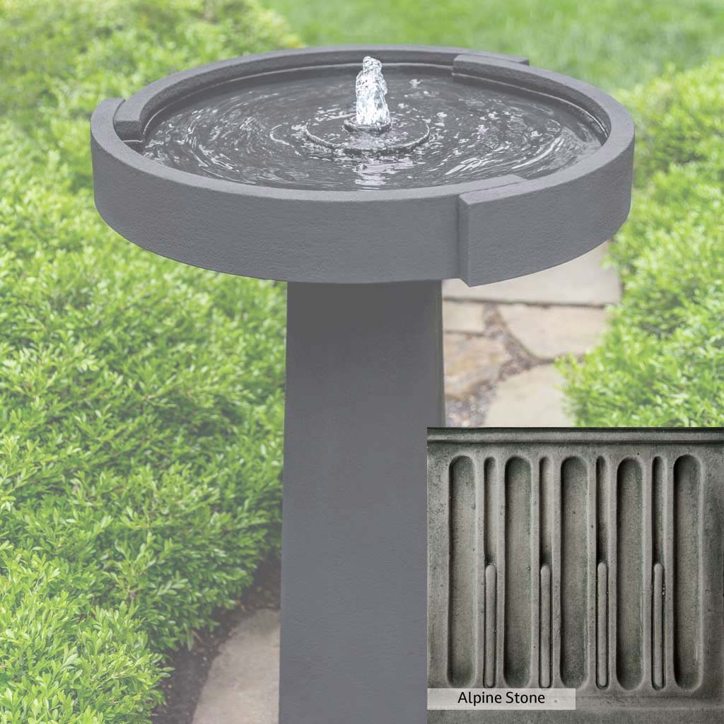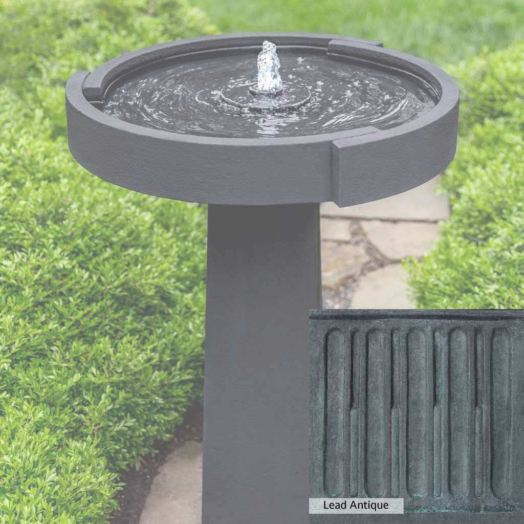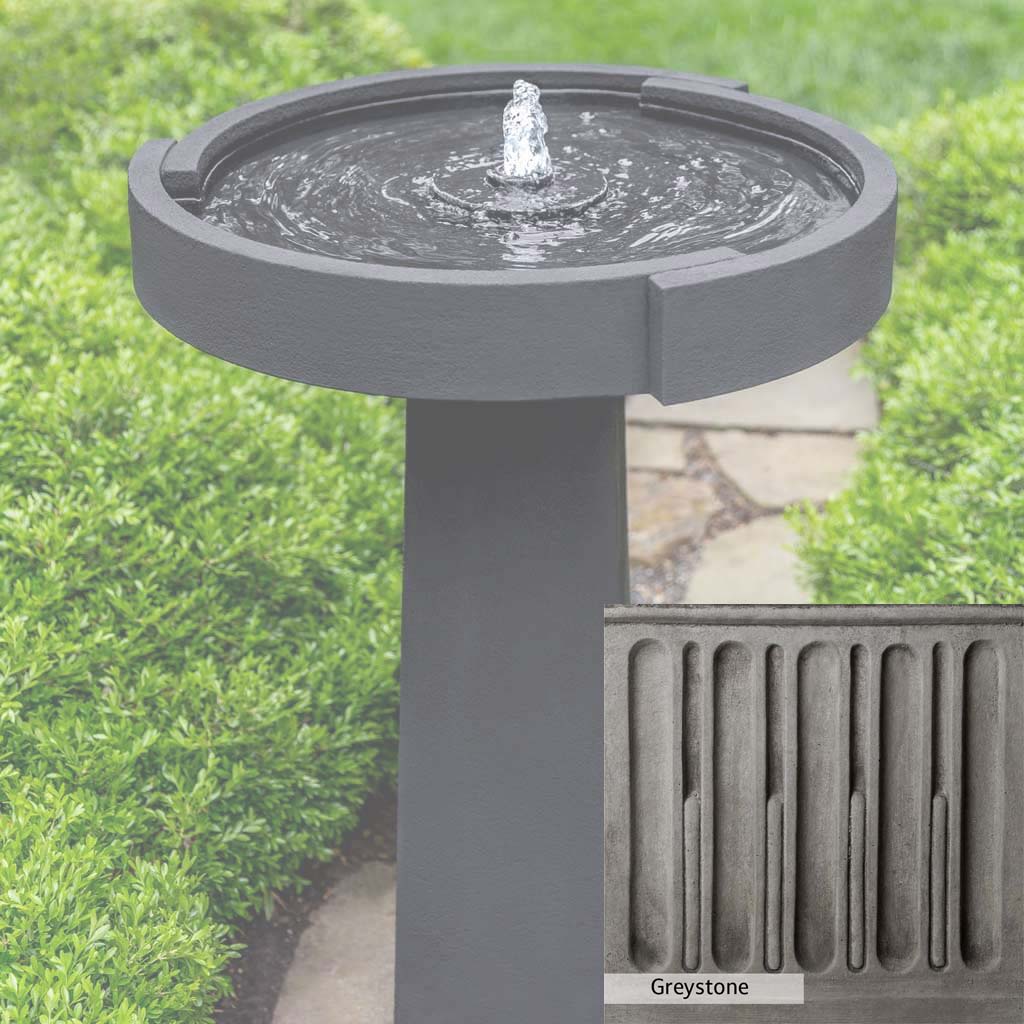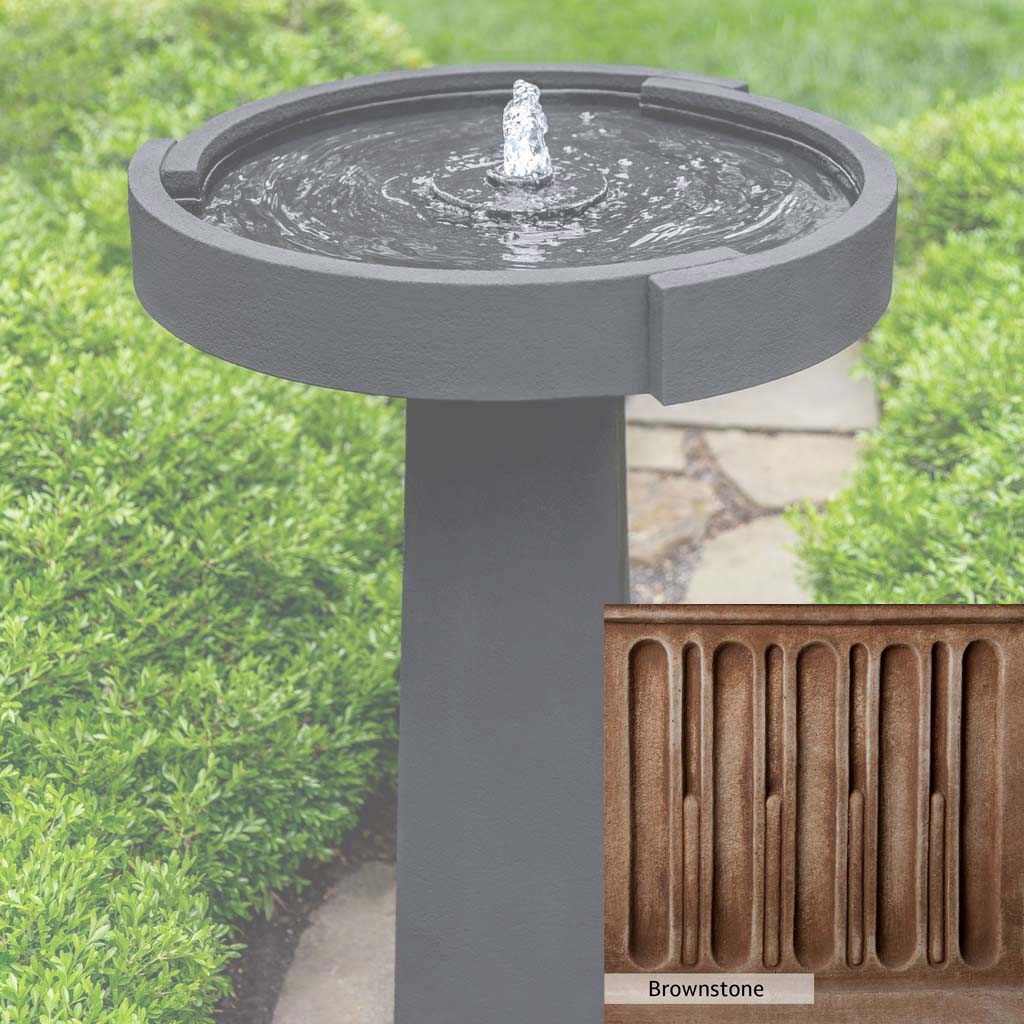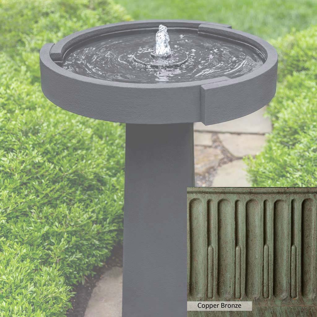 Skilled artisans in the USA handcraft the Concept Birdbath Fountain. The Campania team applies a unique patina, making each piece one-of-a-kind. This fountain is shown in the Nero Nuovo color. Due to materials, manufacturing processes, and variations in photography conditions, natural differences can occur in size, weight, and color. The actual color may vary from the photo.