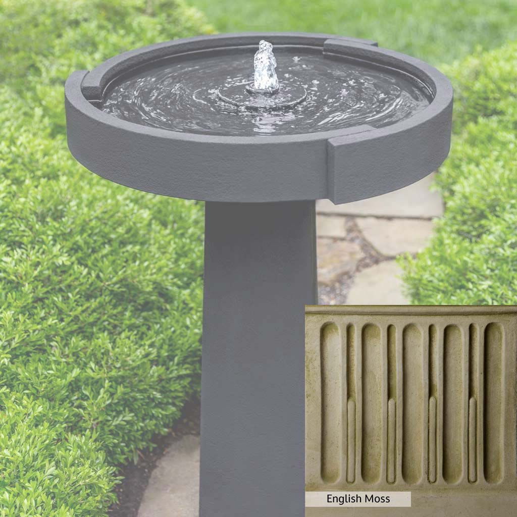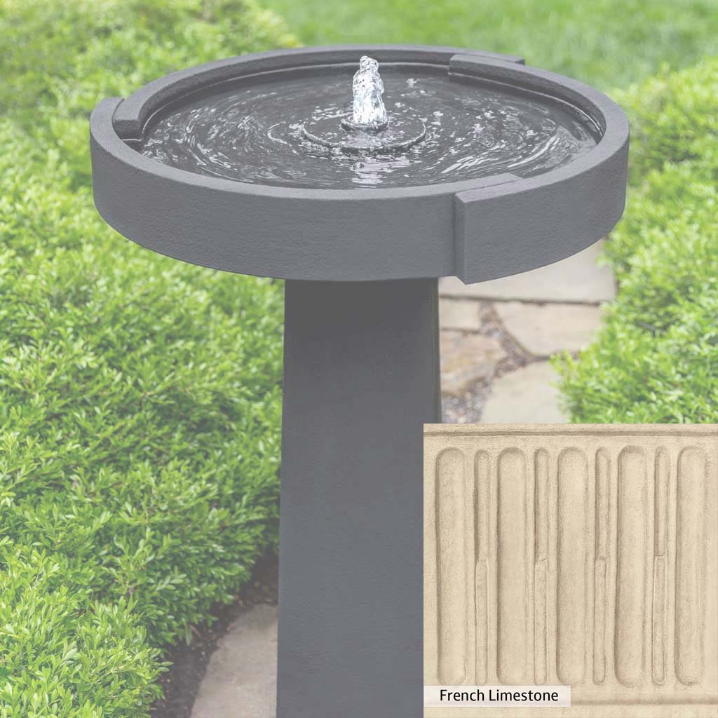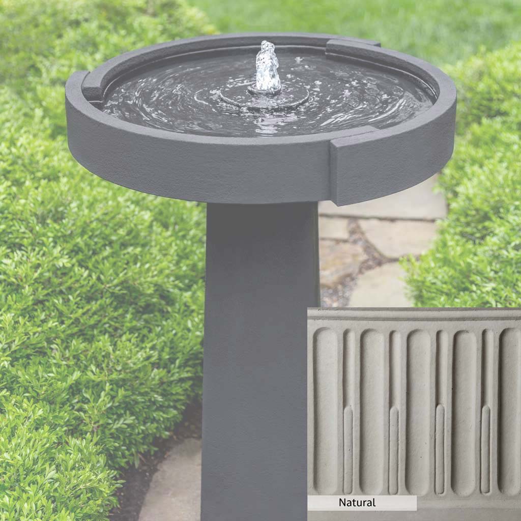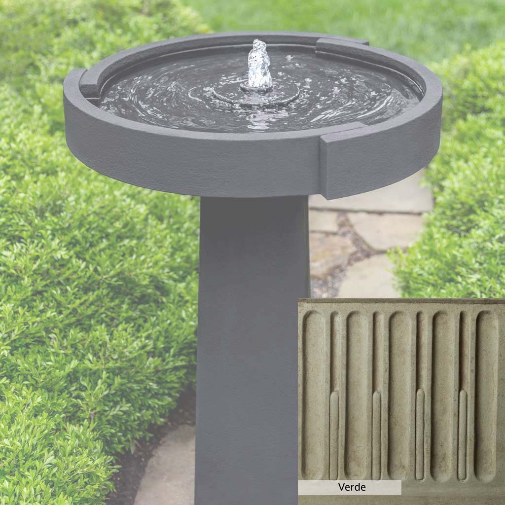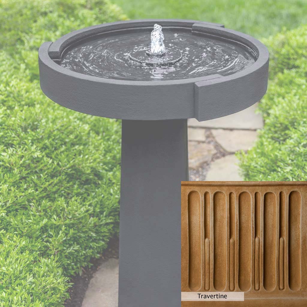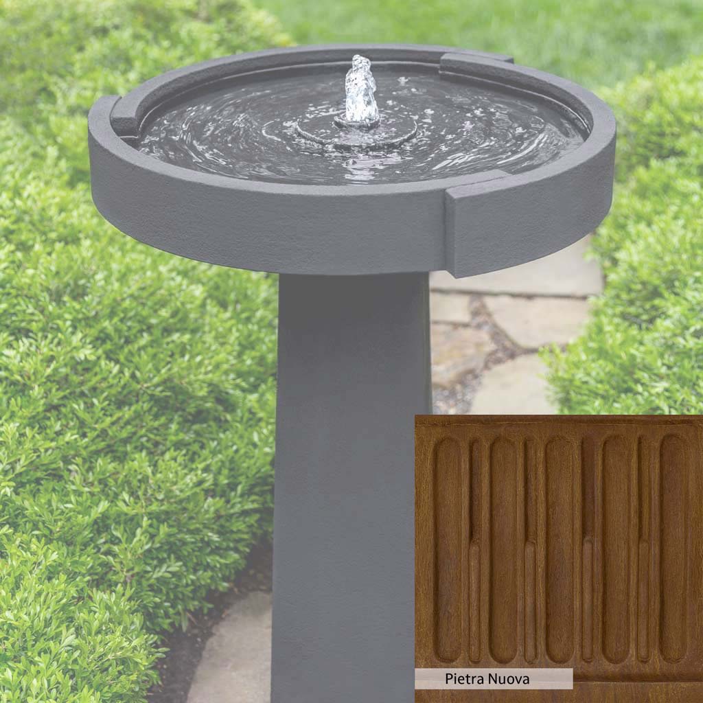 Skilled artisans in the USA handcraft the Concept Birdbath Fountain. The Campania team applies a unique patina, making each piece one-of-a-kind. This fountain is shown in the Nero Nuovo color. Due to materials, manufacturing processes, and variations in photography conditions, natural differences can occur in size, weight, and color. The actual color may vary from the photo.