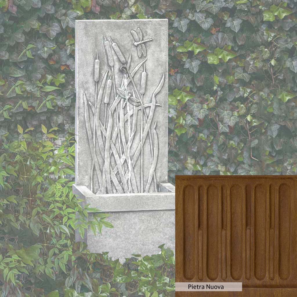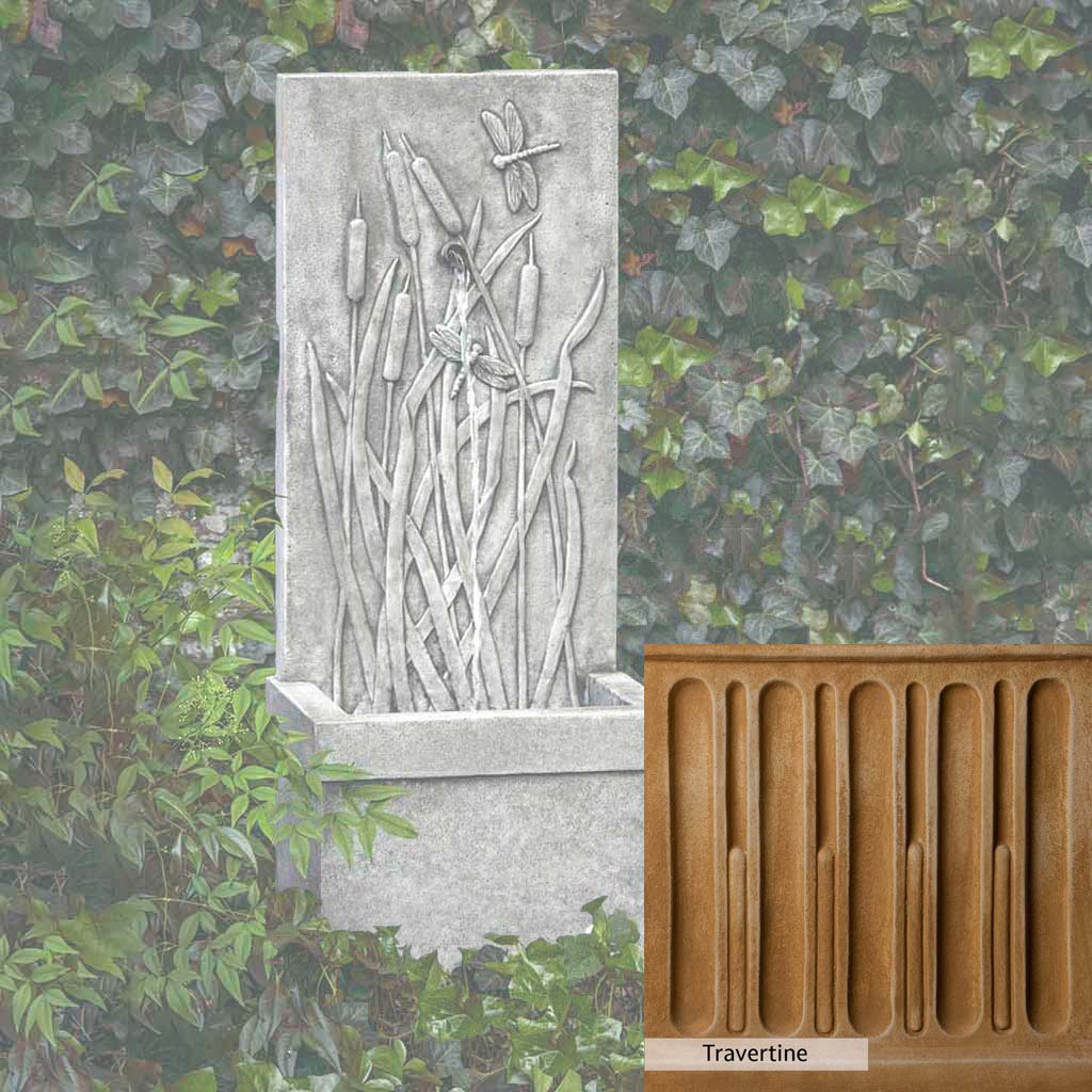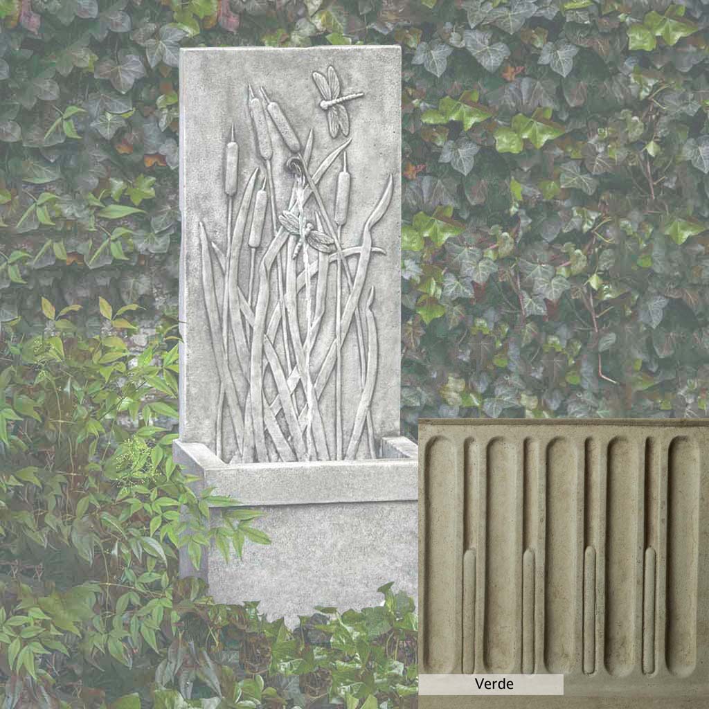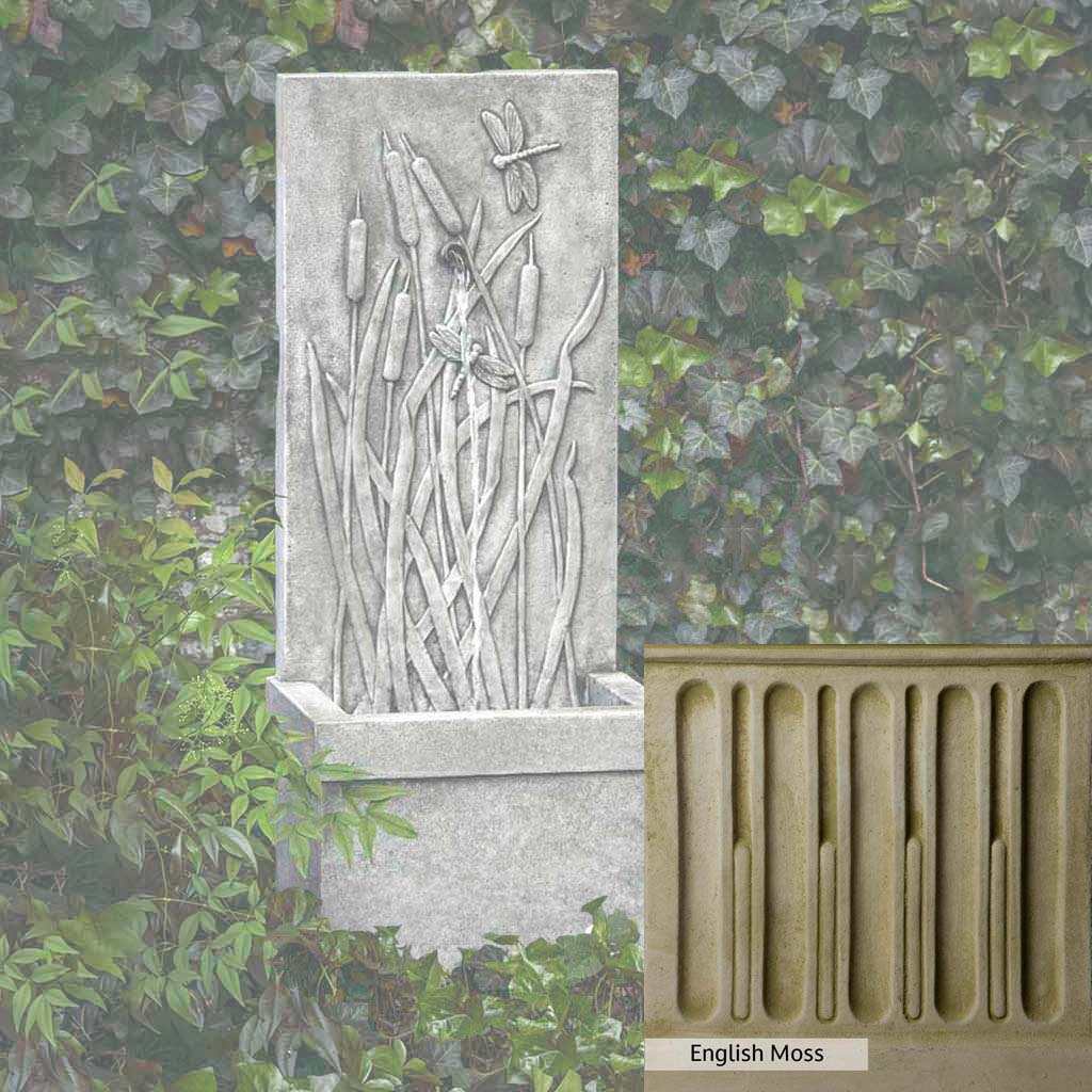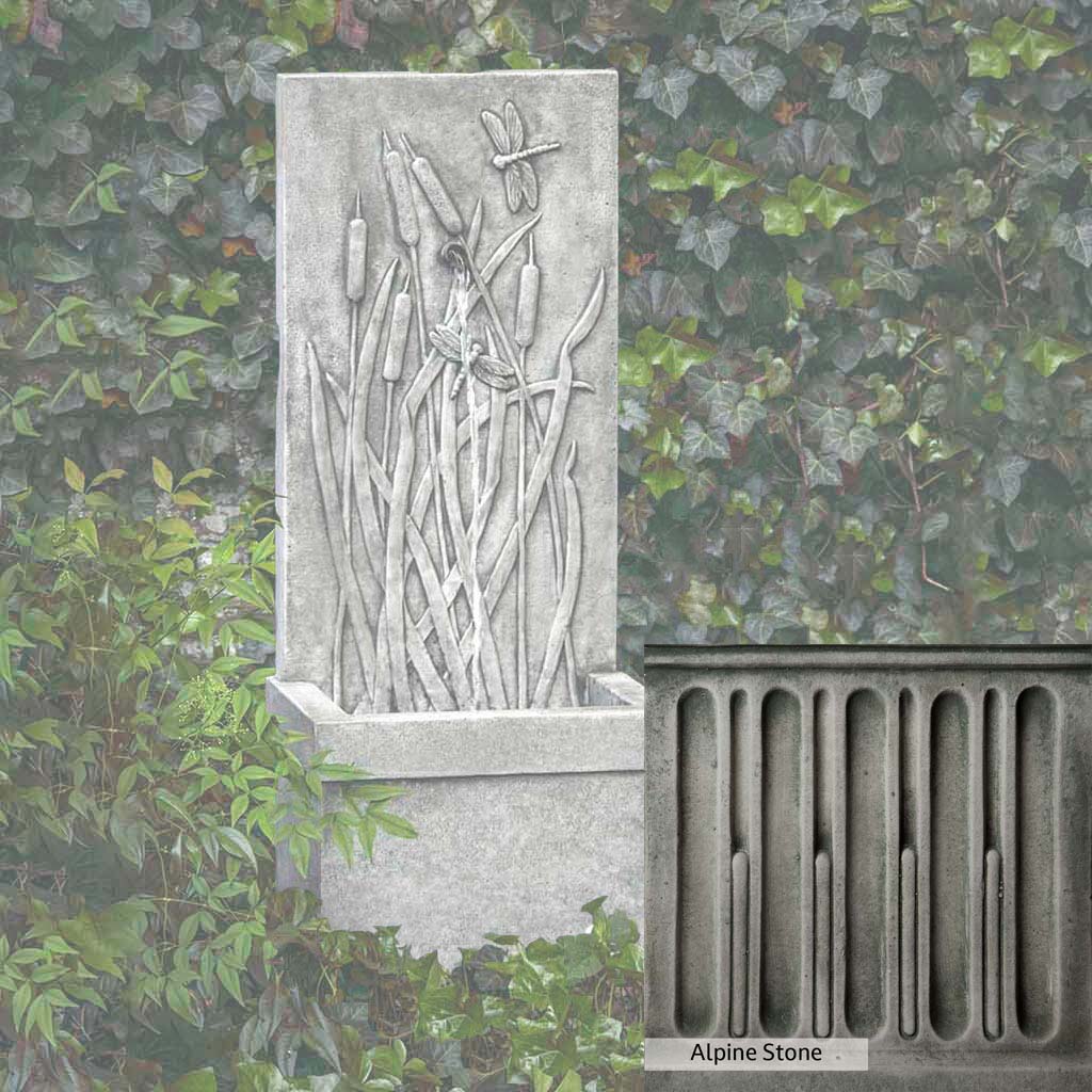 The Dragonfly Wall Fountain is handcrafted by skilled artisans in the USA. With their extensive experience, the Campania team applies a unique patina to ensure that each piece is special. This fountain is shown in the Alpine Stone color. Campania International's proprietary cast stone blend is meticulously molded to create each piece used in the construction of this fountain. Due to the use of different materials and manufacturing processes, as well as varying photography conditions, natural variations in size, weight, and color can occur. The actual color may differ from the photo.