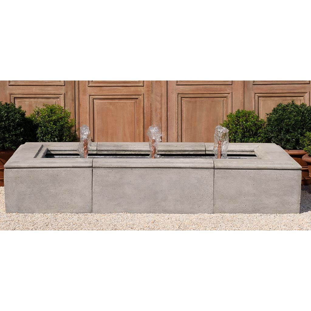 The Embarcadero Fountain is handcrafted by skilled artisans in the USA. With their extensive experience, the Campania team applies a unique patina to ensure that each piece is special. This fountain is shown in the Alpine Stone color. Campania International's proprietary cast stone blend is meticulously molded to create each piece used in the construction of this fountain. Due to the use of different materials and manufacturing processes, as well as varying photography conditions, natural variations in size, weight, and color can occur. The actual color may differ from the photo.