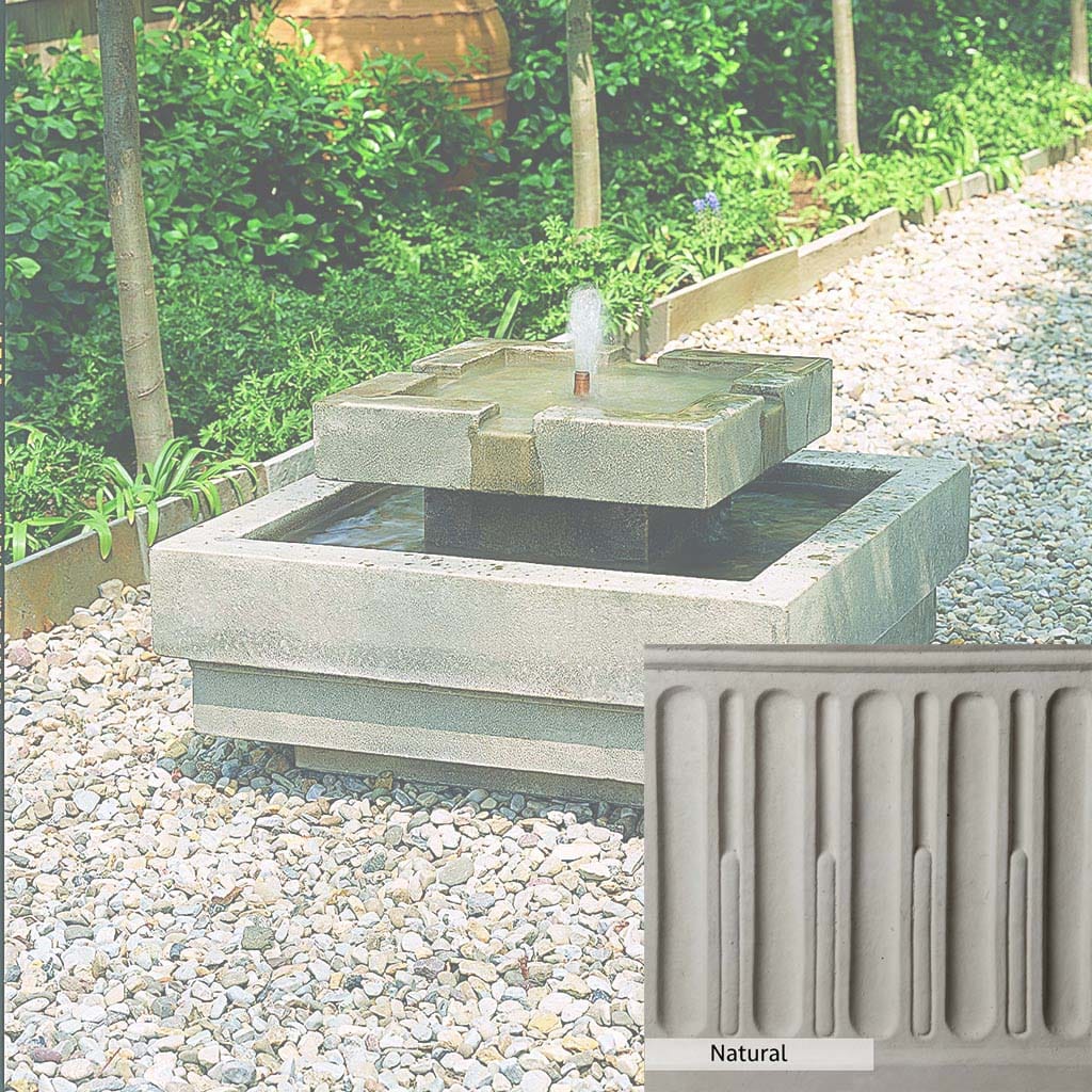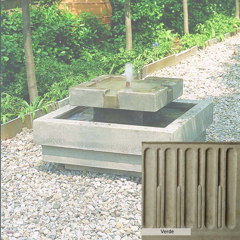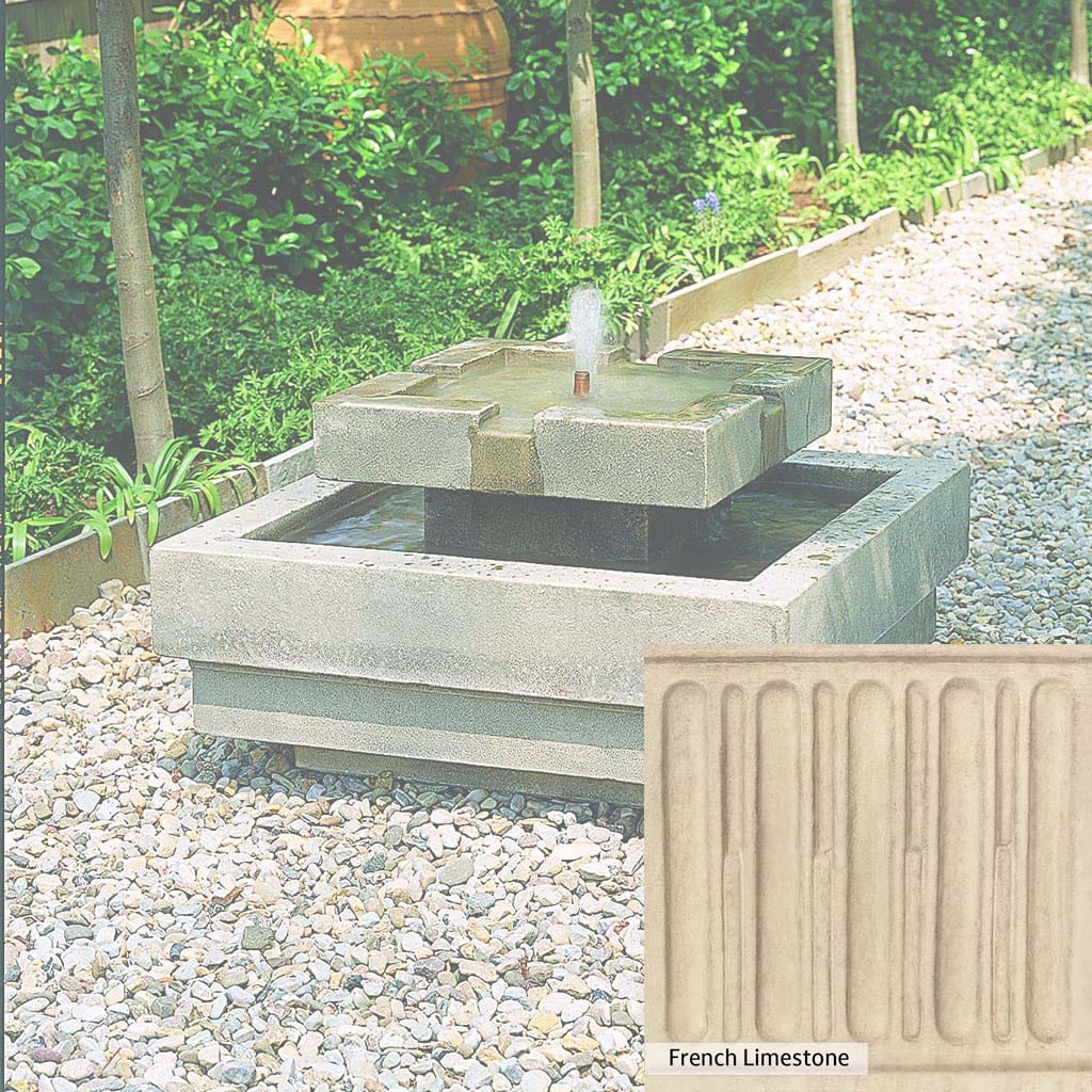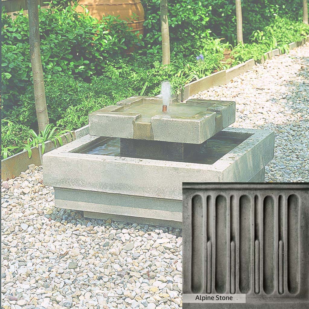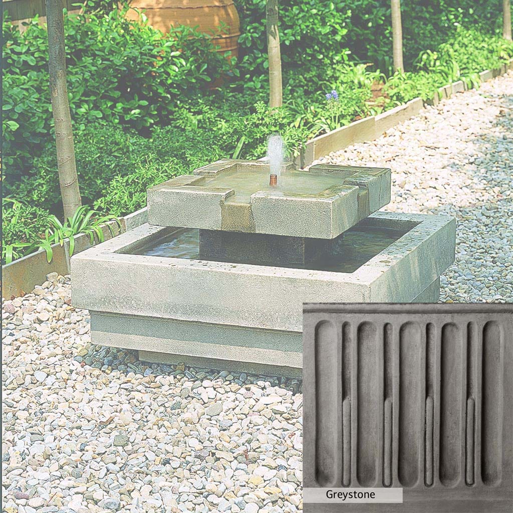 The Escala Fountain is handcrafted by skilled artisans in the USA. The Campania team applies the unique patina with experienced hands, making each piece special. This fountain is featured in the Greystone color. Campania International's exclusive cast stone blend is expertly molded to create each piece in the construction of this fountain. Due to the materials used and manufacturing processes, as well as variations in photography conditions, natural differences may occur in size, weight, and color. The actual color may vary from the photo.