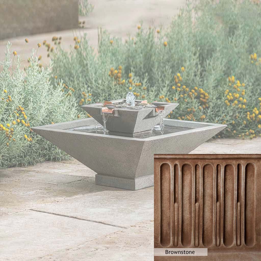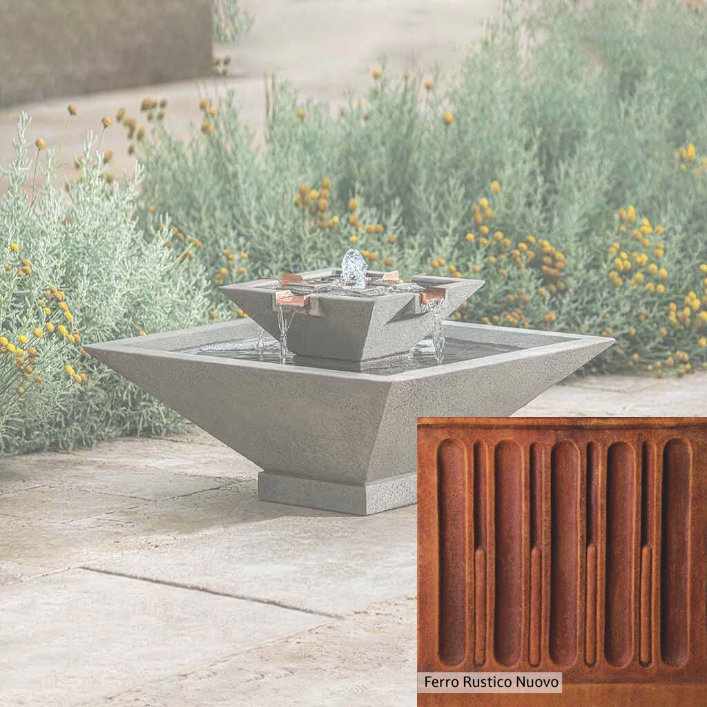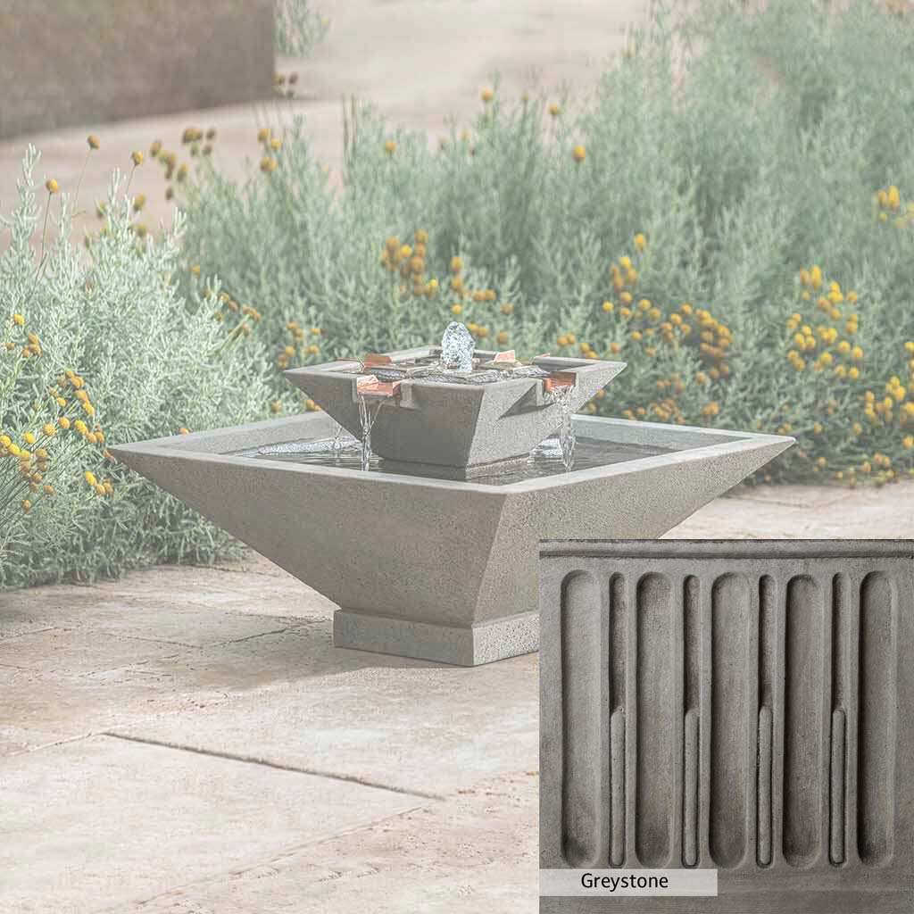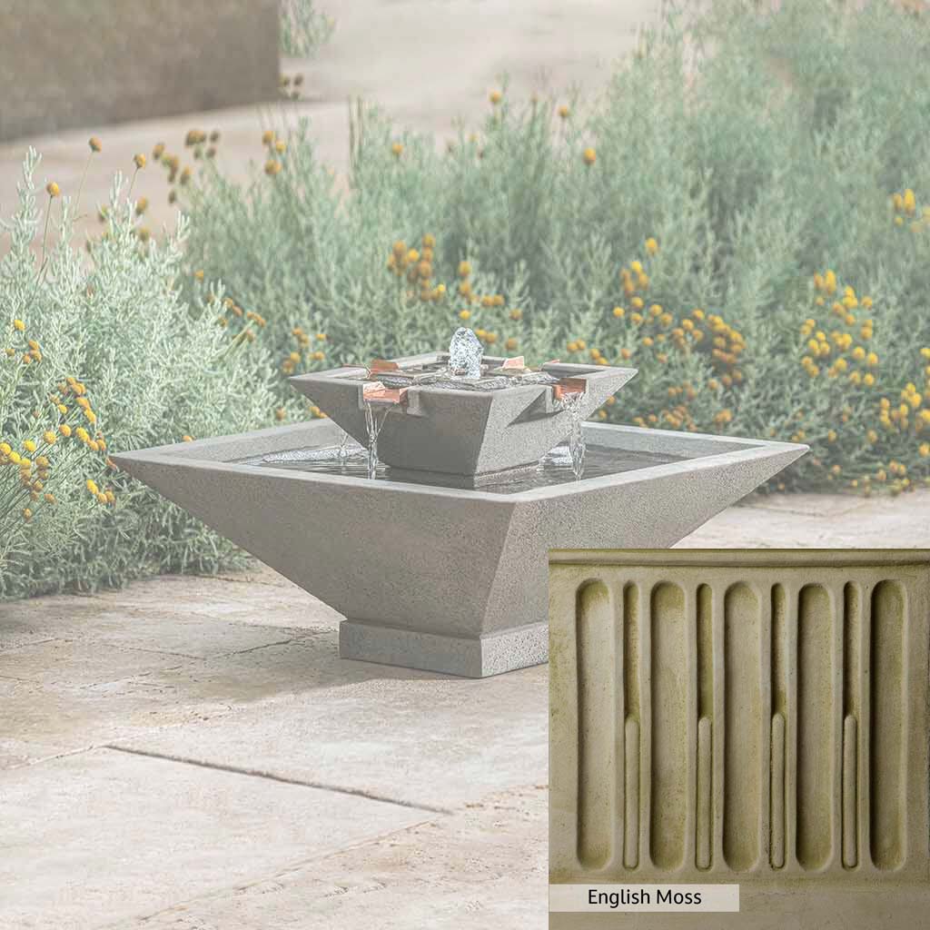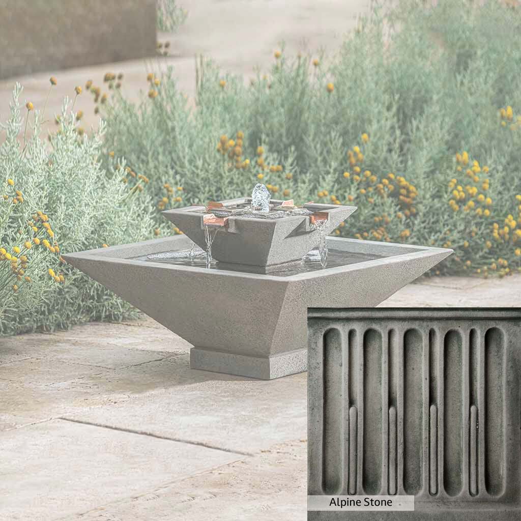 The Facet Small Fountain is handcrafted by skilled artisans in the USA. With their extensive experience, the Campania team applies a unique patina to ensure that each piece is special. This fountain is shown in the Alpine Stone color. Campania International's proprietary cast stone blend is meticulously molded to create each piece used in the construction of this fountain. Due to the use of different materials and manufacturing processes, as well as varying photography conditions, natural variations in size, weight, and color can occur. The actual color may differ from the photo.