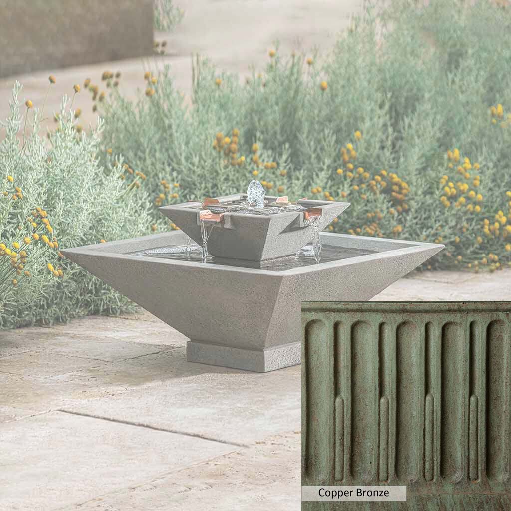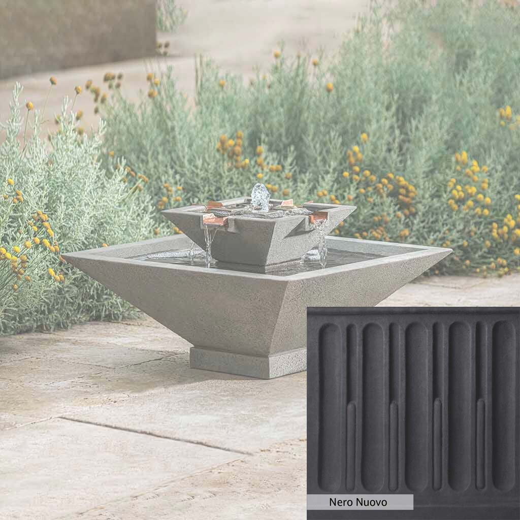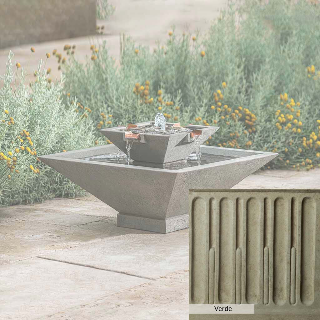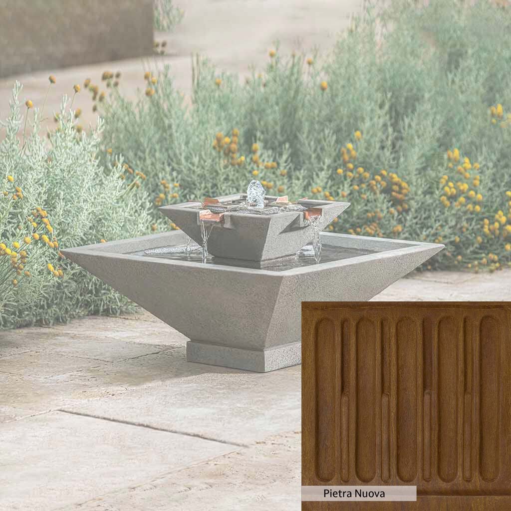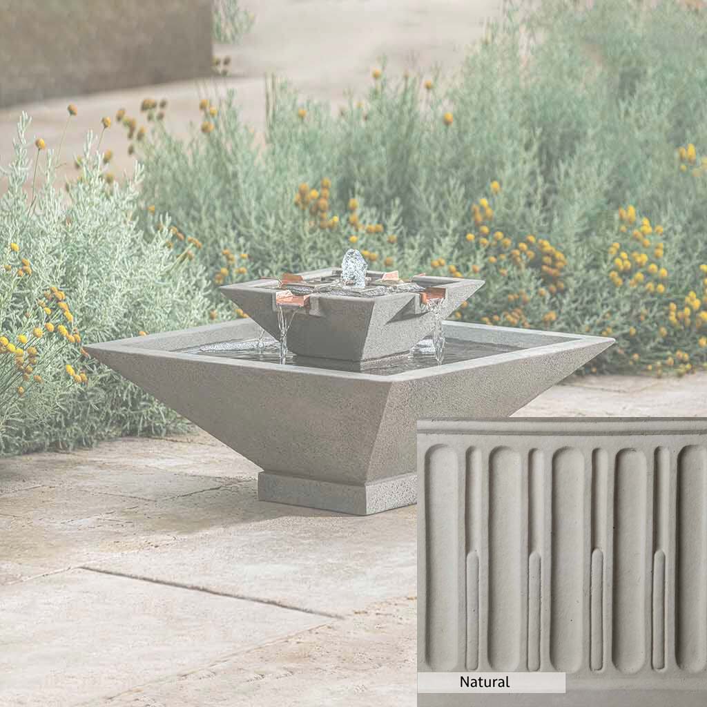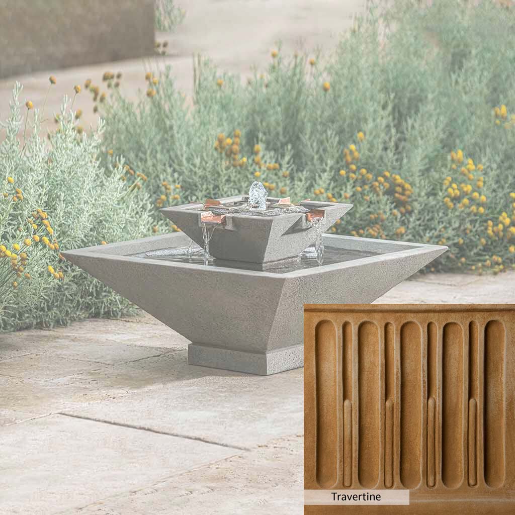 The Facet Small Fountain is handcrafted by skilled artisans in the USA. With their extensive experience, the Campania team applies a unique patina to ensure that each piece is special. This fountain is shown in the Alpine Stone color. Campania International's proprietary cast stone blend is meticulously molded to create each piece used in the construction of this fountain. Due to the use of different materials and manufacturing processes, as well as varying photography conditions, natural variations in size, weight, and color can occur. The actual color may differ from the photo.