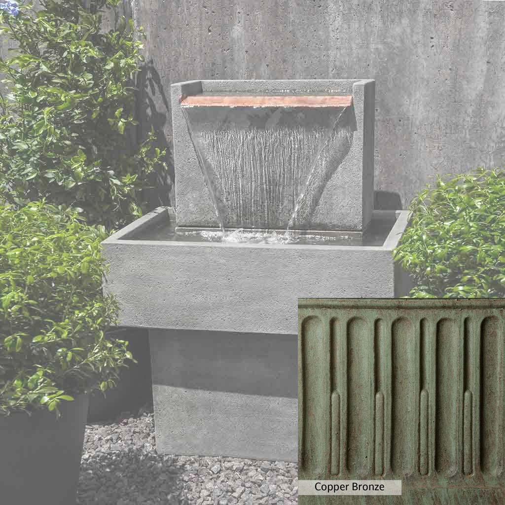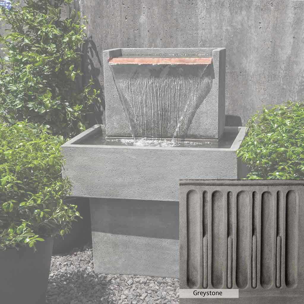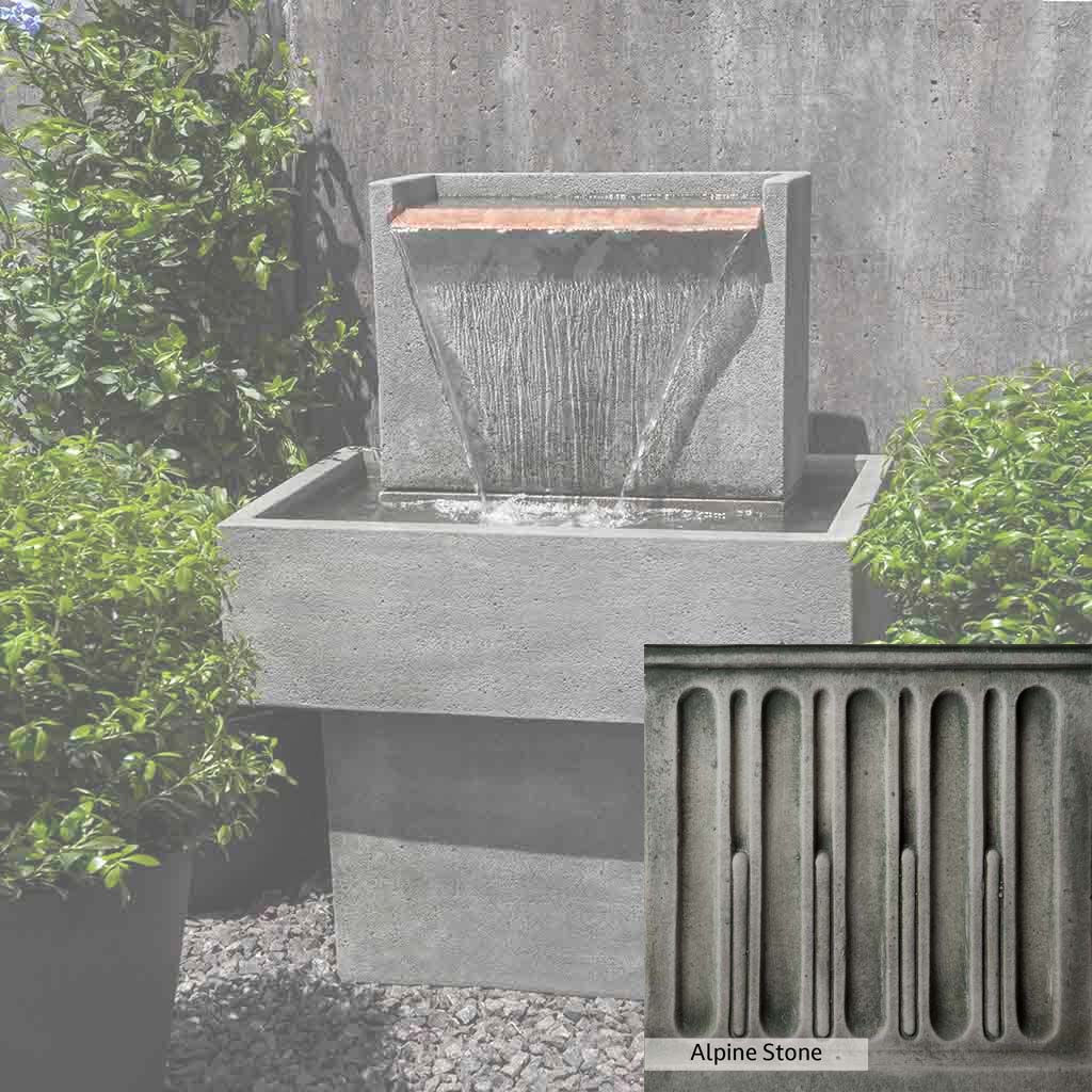Skilled artisans in the USA handcraft the Falling Water Fountain I. The Campania team applies the unique patina using their experience, making each piece one-of-a-kind. This fountain is shown in the Alpine Stone color. Campania International's unique cast stone blend is meticulously molded to create each piece used in the construction of this fountain. Due to the materials, manufacturing processes, and variations in photography conditions, natural differences can occur in size, weight, and color. The actual color may vary from the photo.