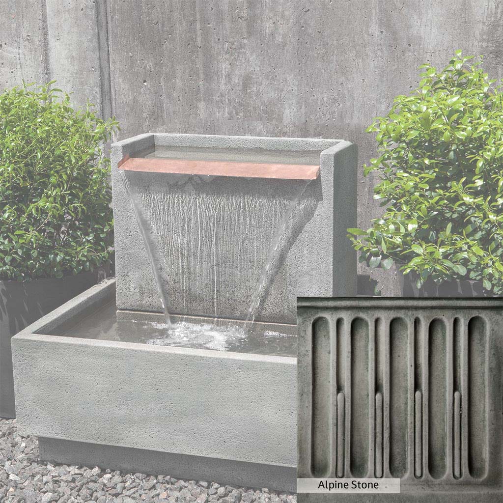 Skilled artisans in the USA handcraft the Falling Water Fountain II. With their extensive experience, the Campania team applies the unique patina, ensuring each piece is extraordinary. This fountain is shone in the Alpine Stone color. Campania International's proprietary cast stone blend is meticulously molded to create each piece used in the construction of this fountain. Due to the use of different materials and manufacturing processes, as well as varying photography conditions, natural variations in size, weight, and color can occur. The actual color may differ from the photo.