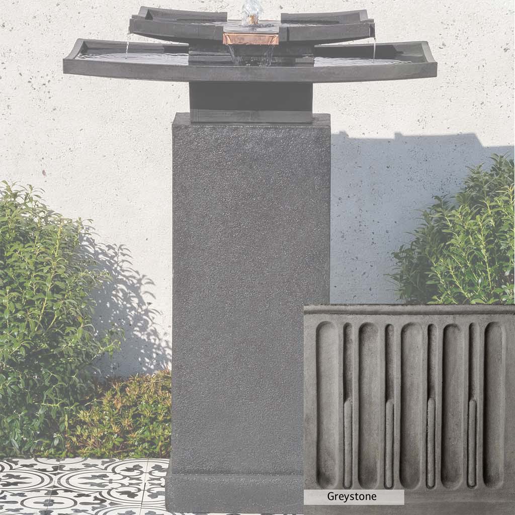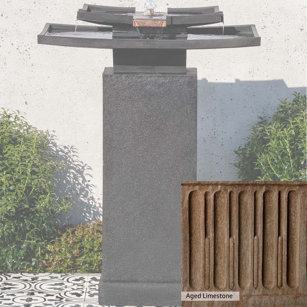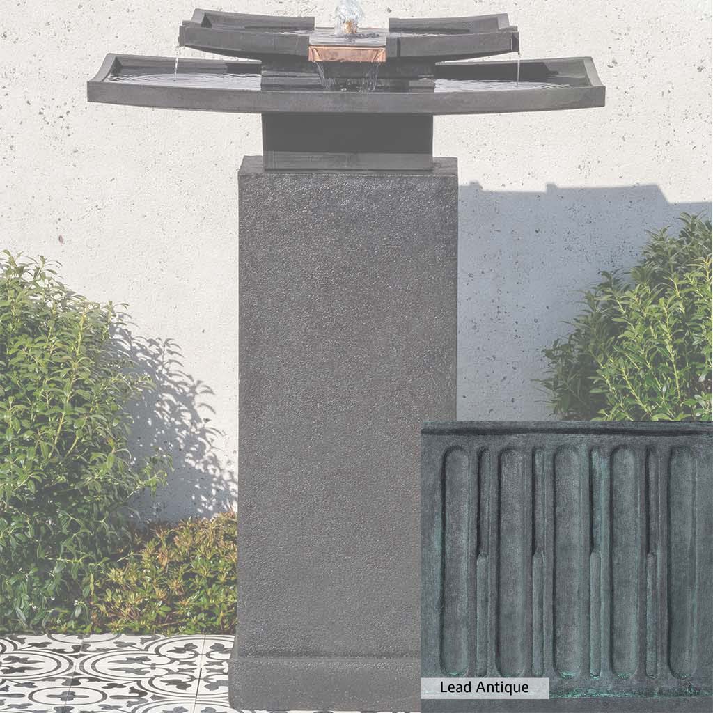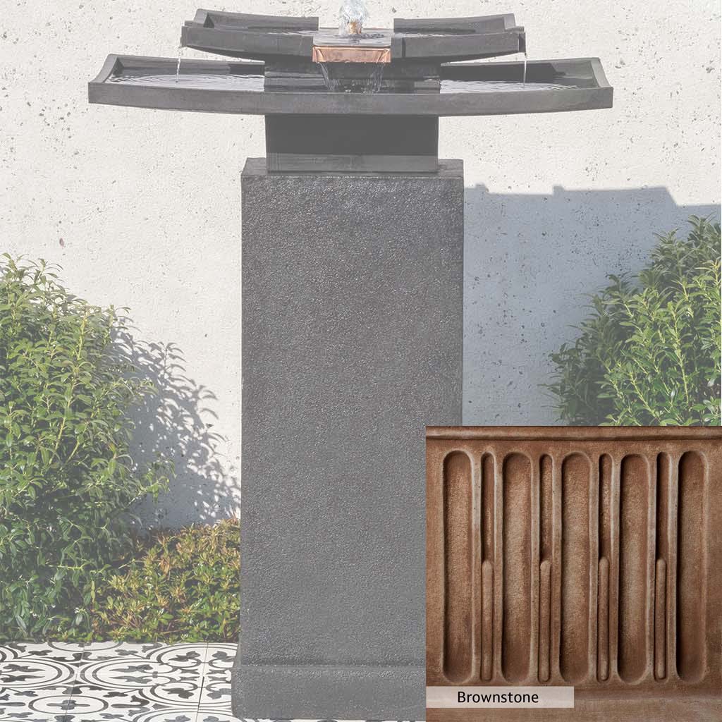 The Katsura Fountain with Pedestal is handcrafted by skilled artisans in the USA. With their extensive experience, the Campania team applies a unique patina to ensure that each piece is special. This fountain is shown in the Nero Nuovo color. Campania International's proprietary cast stone blend is meticulously molded to create each piece used in the construction of this fountain. Due to the use of different materials and manufacturing processes, as well as varying photography conditions, natural variations in size, weight, and color can occur. The actual color may differ from the photo.