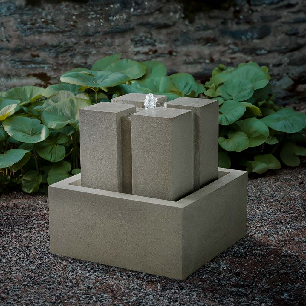 The Korsa Fountain from Campania International is made using glass-reinforced concrete (GFRC), which incorporates glass fibers to enhance flexibility, tensile strength, and impact resistance. This material has a high compressive strength, making it resistant to frost, thaw, rust, and fire. GFRC can mimic the appearance and texture of cast stone while being significantly lighter, making it an ideal choice for projects requiring lightweight materials and large-scale planting. These planters are highly durable and can withstand UV exposure and extreme temperatures, including high heat and frost.