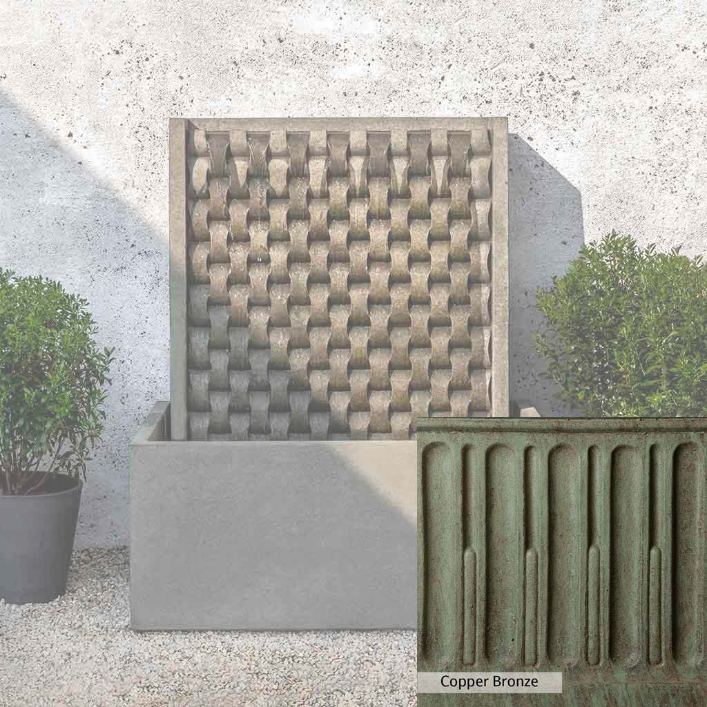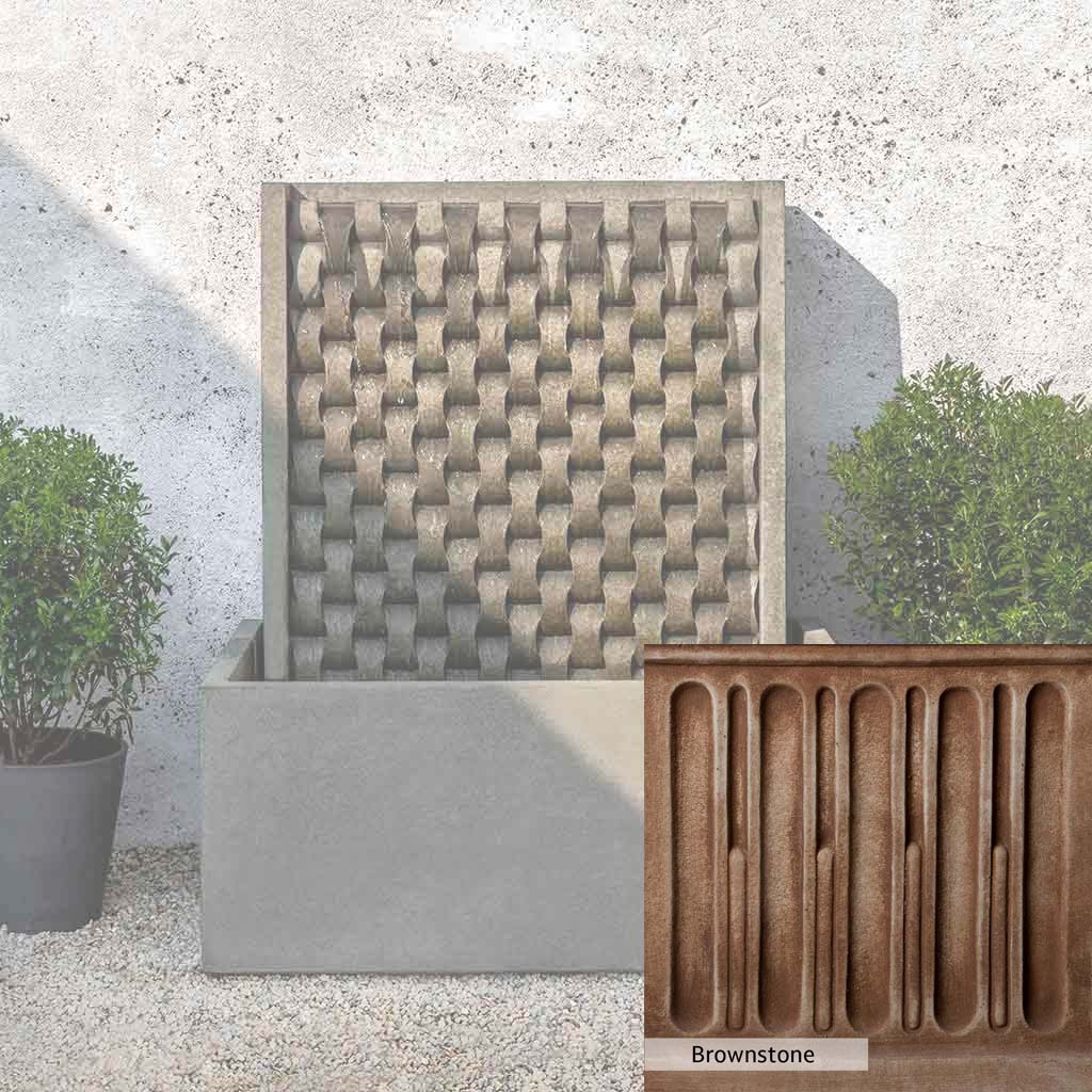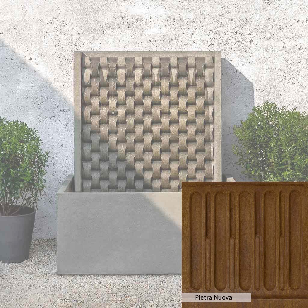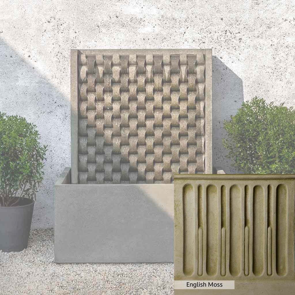 The Large M Weave Fountain is handcrafted by skilled artisans in the USA. With their extensive experience, the Campania team applies a unique patina to ensure that each piece is special. This fountain is shown in the Alpine Stone color. Campania International's proprietary cast stone blend is meticulously molded to create each piece used in the construction of this fountain. Due to the use of different materials and manufacturing processes, as well as varying photography conditions, natural variations in size, weight, and color can occur. The actual color may differ from the photo.
