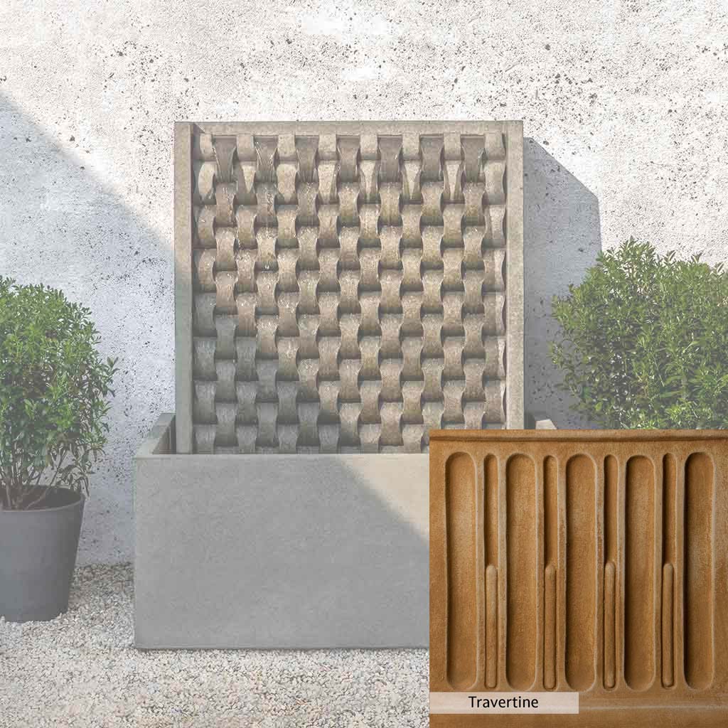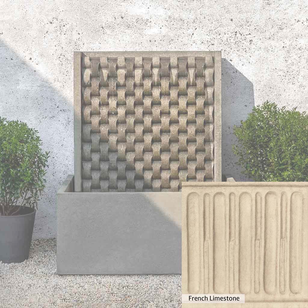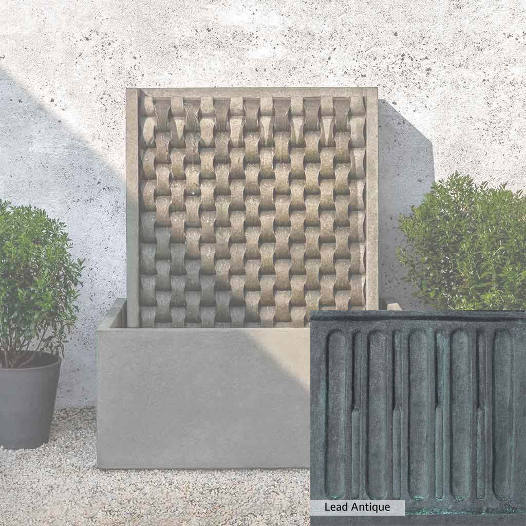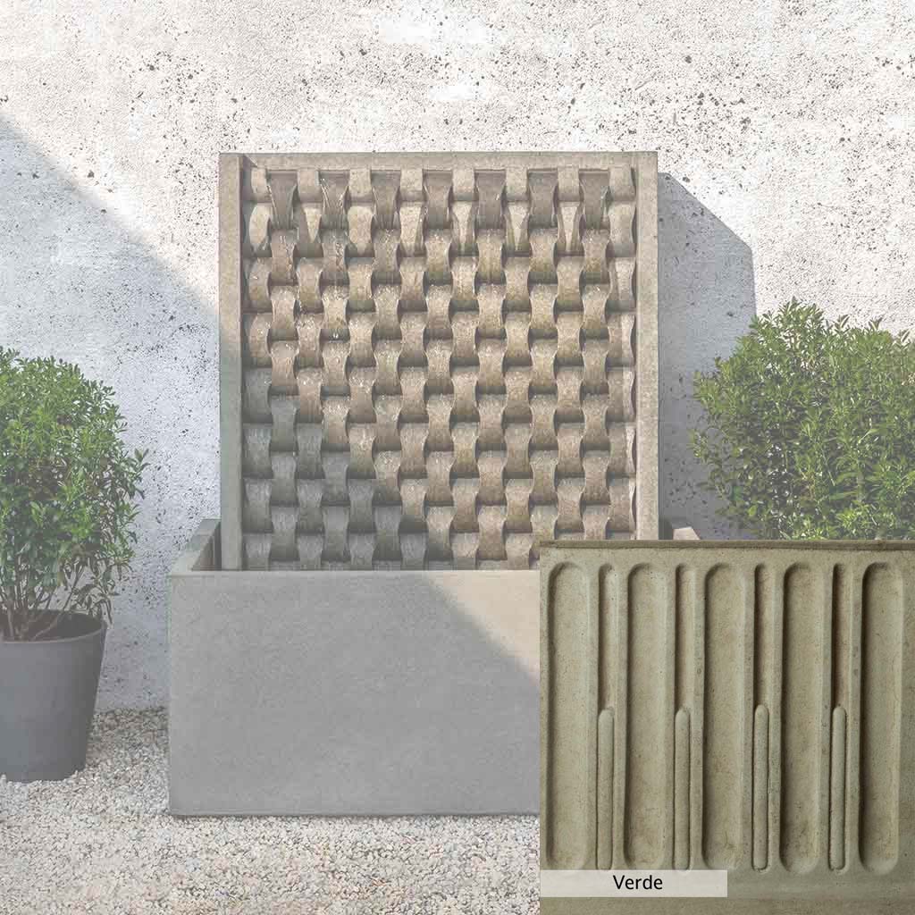 The Large M Weave Fountain is handcrafted by skilled artisans in the USA. With their extensive experience, the Campania team applies a unique patina to ensure that each piece is special. This fountain is shown in the Alpine Stone color. Campania International's proprietary cast stone blend is meticulously molded to create each piece used in the construction of this fountain. Due to the use of different materials and manufacturing processes, as well as varying photography conditions, natural variations in size, weight, and color can occur. The actual color may differ from the photo.