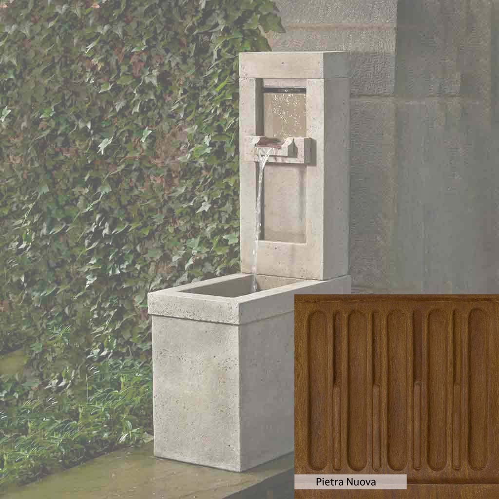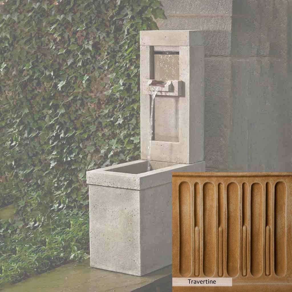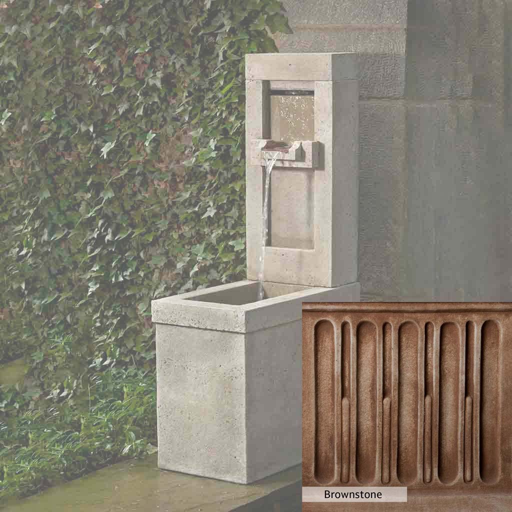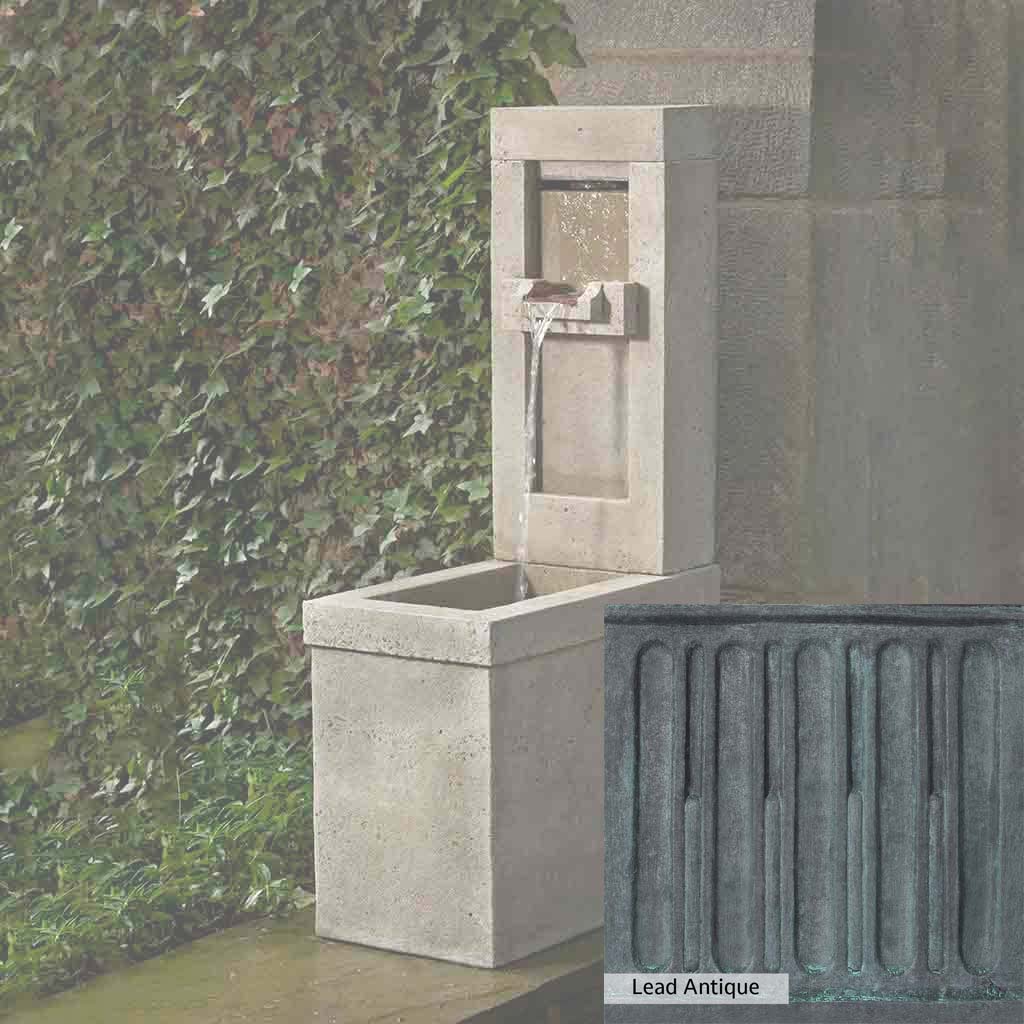 The Lucas Fountain is handcrafted by skilled artisans in the USA. The Campania team applies a unique patina with experienced hands, making each piece special. This fountain is featured in the Alpine Stone color. Campania International's exclusive cast stone blend is expertly molded to create each piece in the construction of this fountain. Due to the materials used and manufacturing processes, as well as variations in photography conditions, natural differences may occur in size, weight, and color. The actual color may vary from the photo.