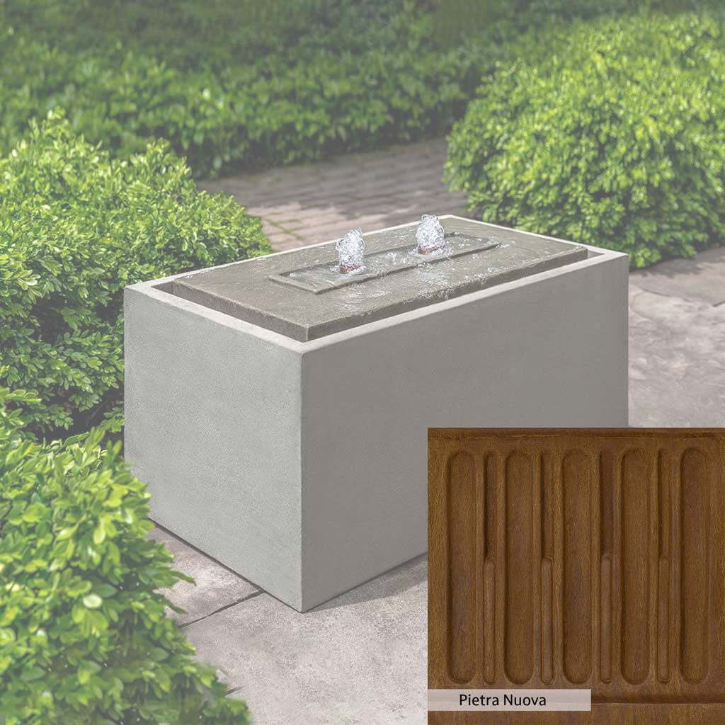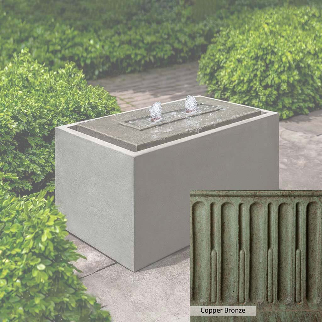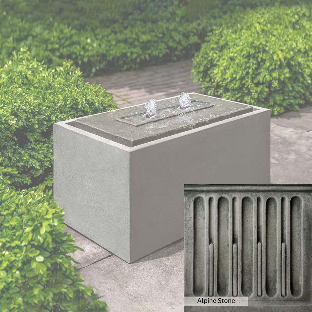 The Lutea Fountain is handcrafted by skilled artisans in the USA. The Campania team applies the unique patina with experienced hands, making each piece special. This fountain is featured in the Alpine Stone color. Campania International's exclusive cast stone blend is expertly molded to create each piece in the construction of this fountain. Due to the materials used and manufacturing processes, as well as variations in photography conditions, natural differences may occur in size, weight, and color. The actual color may vary from the photo.