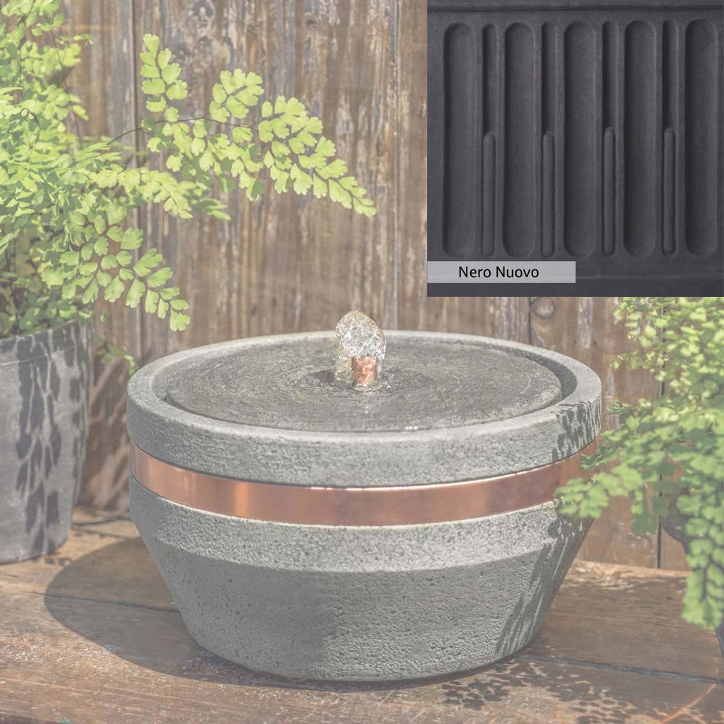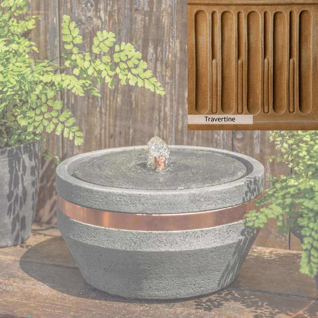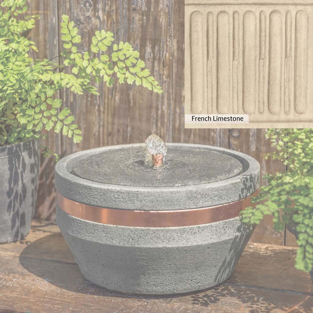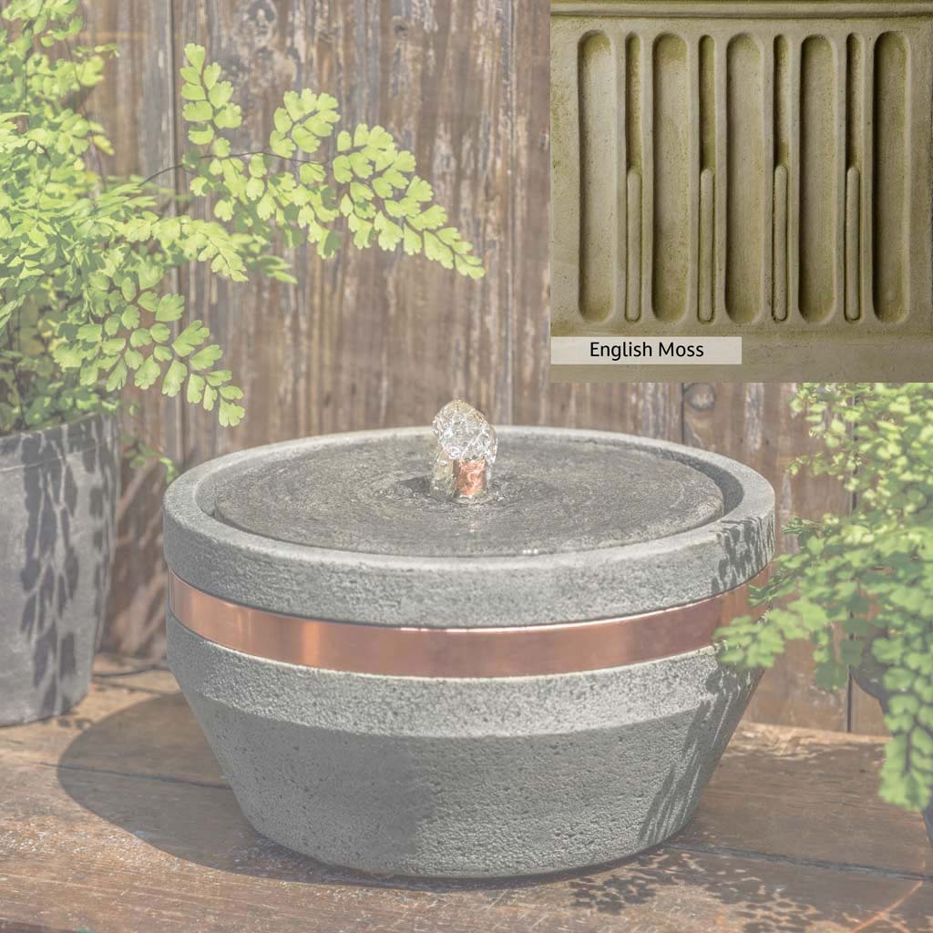 Skilled artisans in the USA handcraft the M-Series Bevel Fountain. The Campania team applies a unique patina, making each piece one-of-a-kind. This fountain is shown in the Alpine Stone color. Due to materials, manufacturing processes, and variations in photography conditions, natural differences can occur in size, weight, and color. The actual color may vary from the photo.