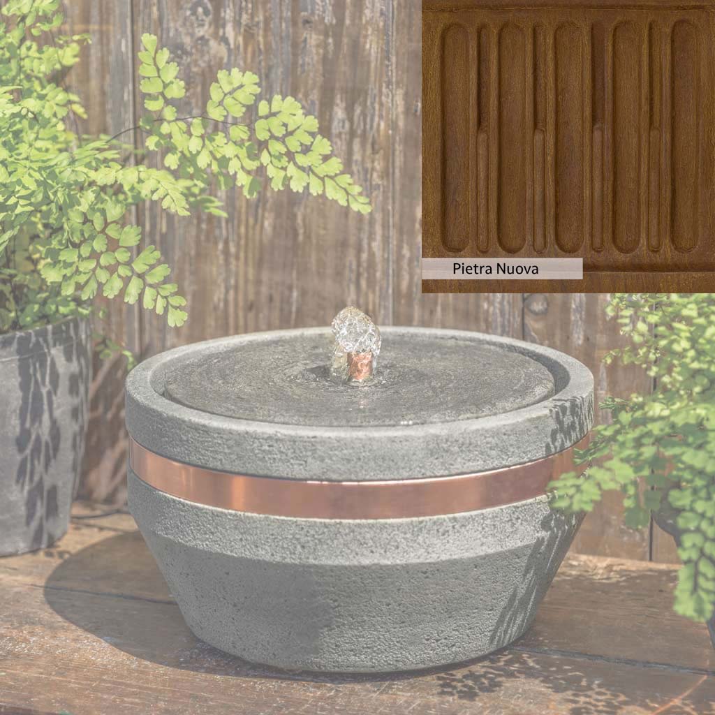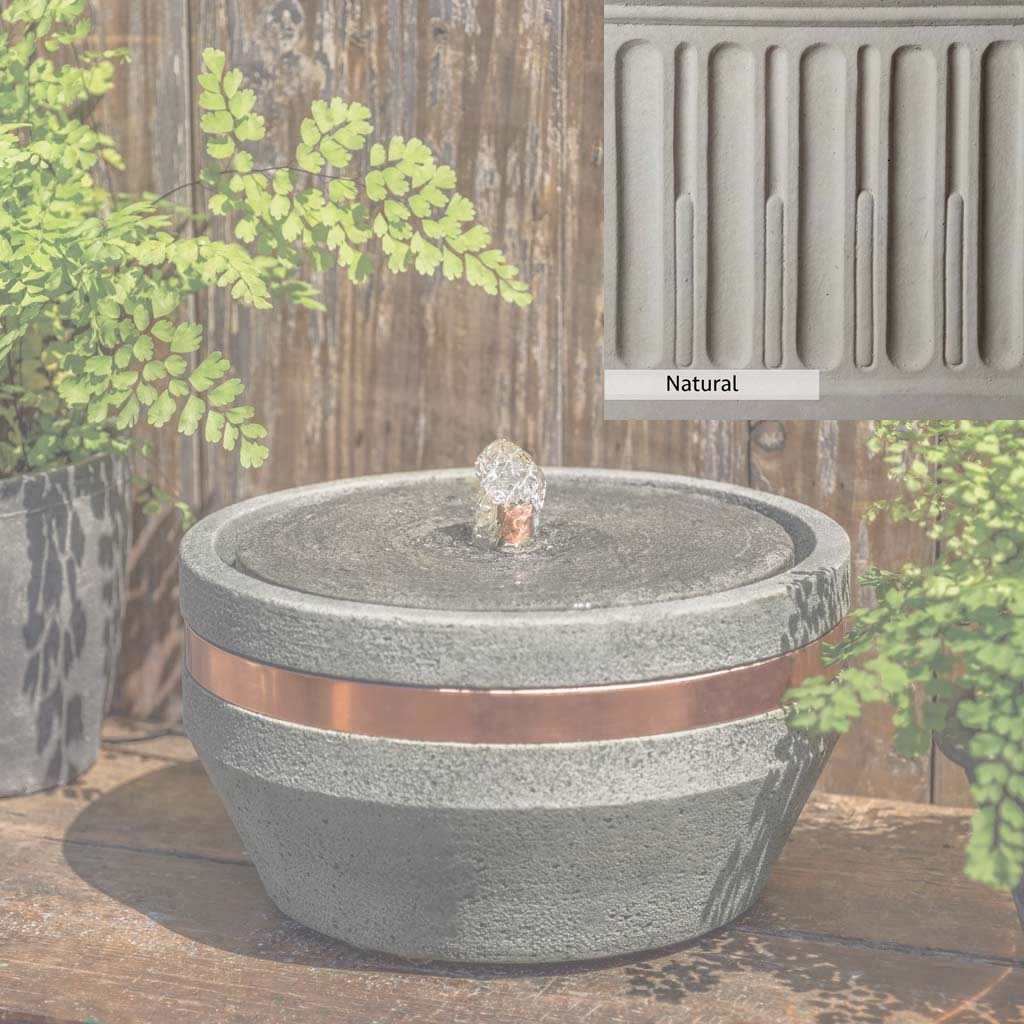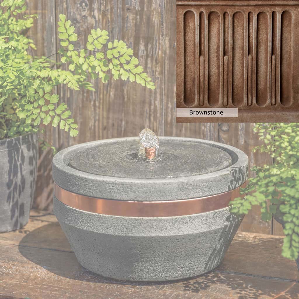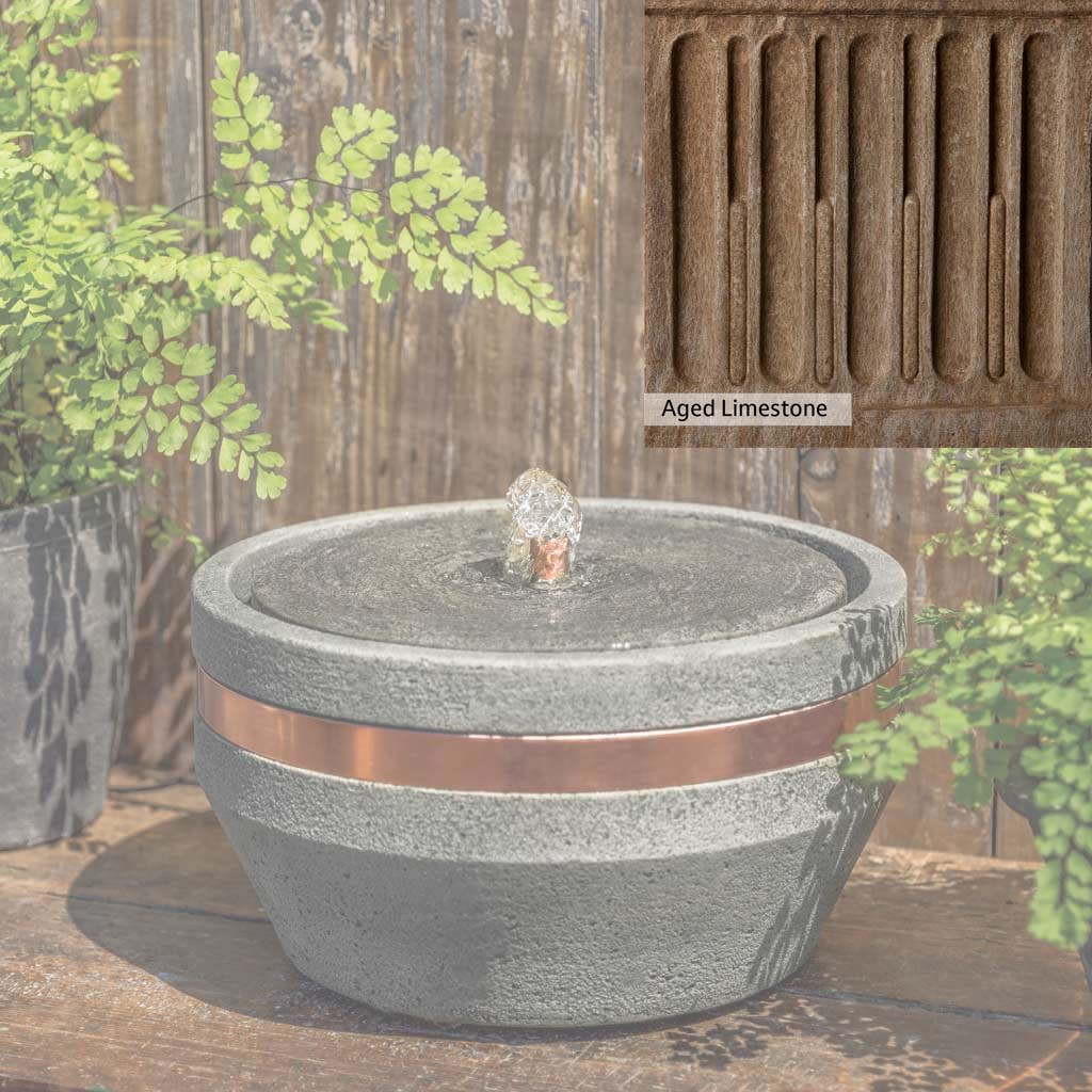Skilled artisans in the USA handcraft the M-Series Bevel Fountain. The Campania team applies a unique patina, making each piece one-of-a-kind. This fountain is shown in the Alpine Stone color. Due to materials, manufacturing processes, and variations in photography conditions, natural differences can occur in size, weight, and color. The actual color may vary from the photo.