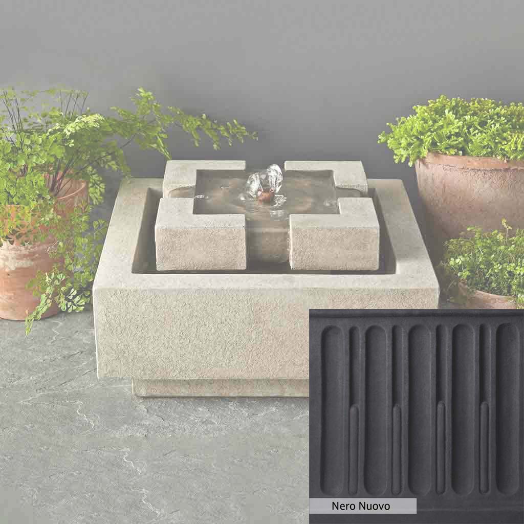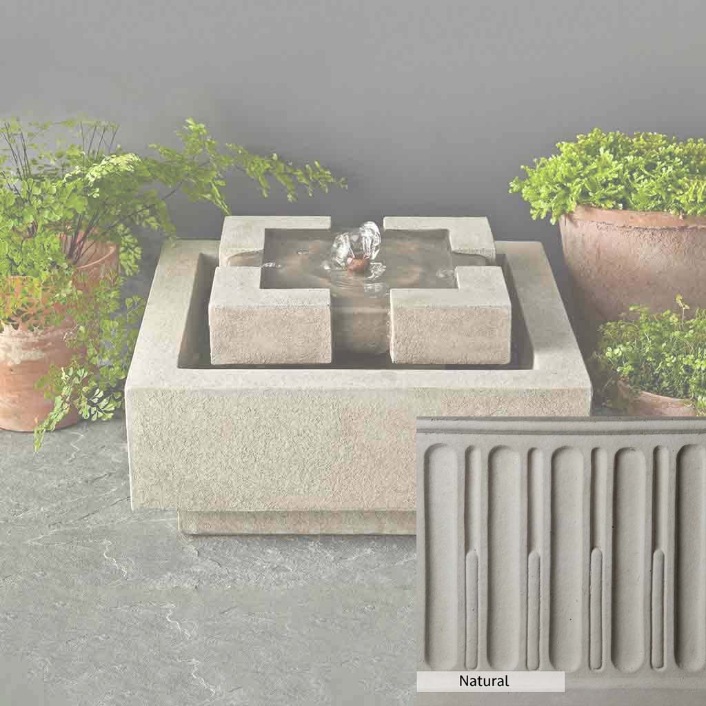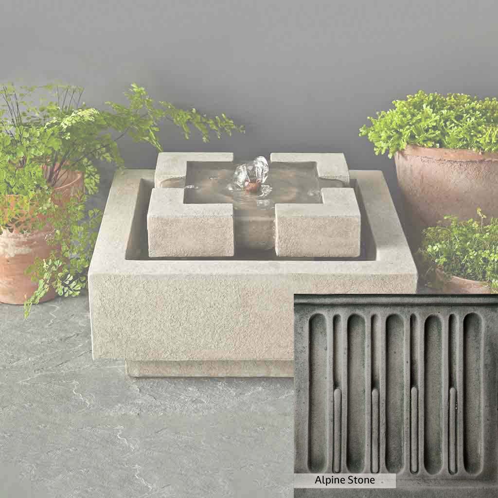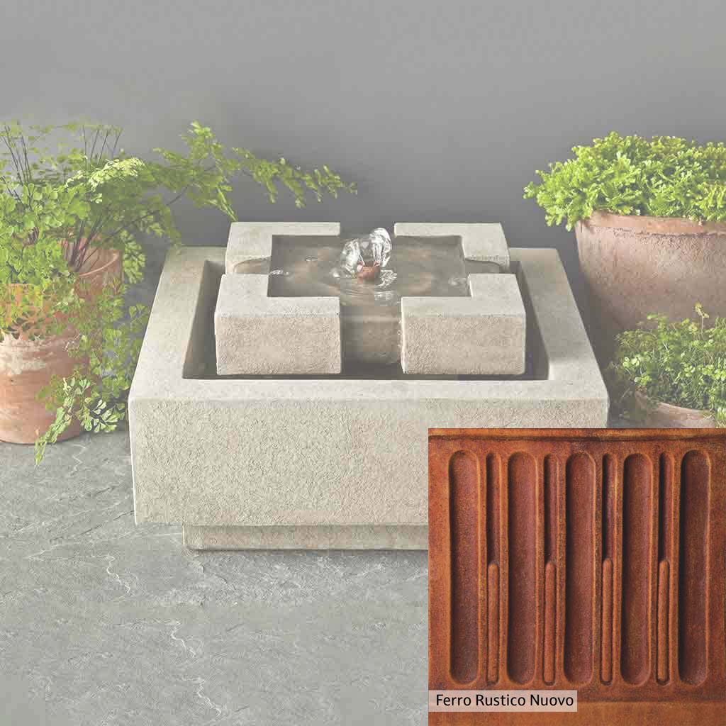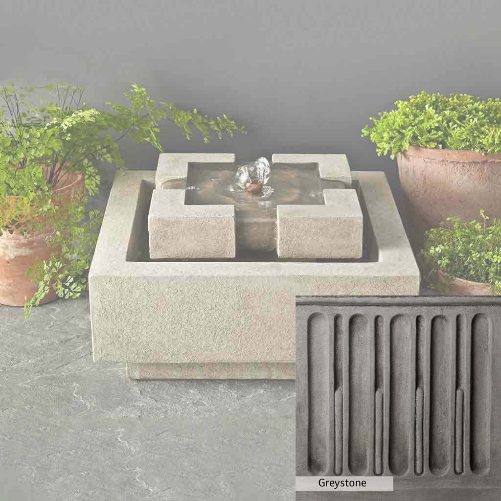 The M-Series Escala Fountain is handcrafted by skilled artisans in the USA. With their extensive experience, the Campania team applies a unique patina to ensure that each piece is special. This fountain is shown in the Greystone color. Campania International's proprietary cast stone blend is meticulously molded to create each piece used in the construction of this fountain. Due to the use of different materials and manufacturing processes, as well as varying photography conditions, natural variations in size, weight, and color can occur. The actual color may differ from the photo.
