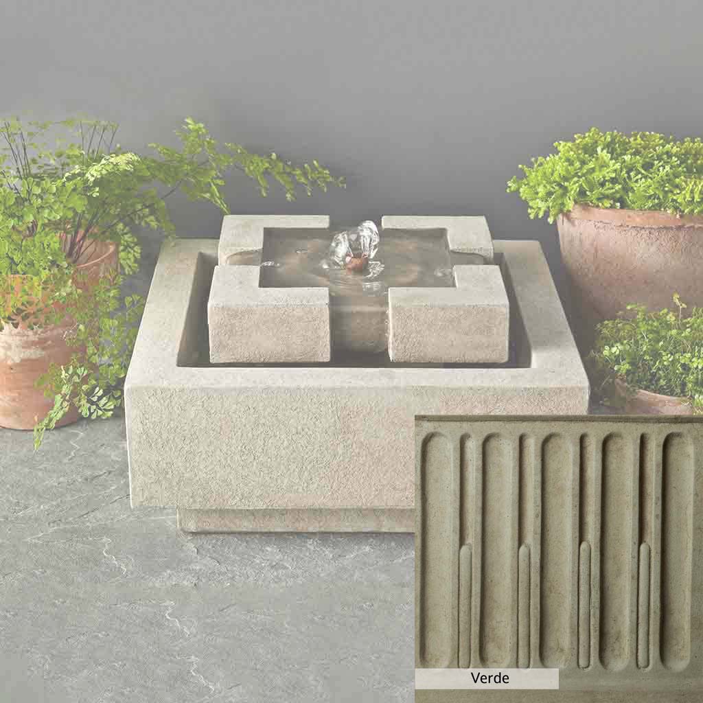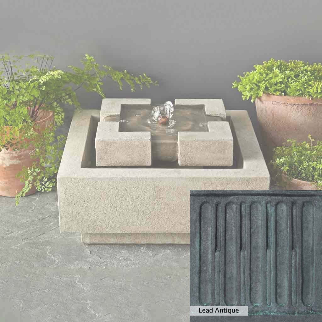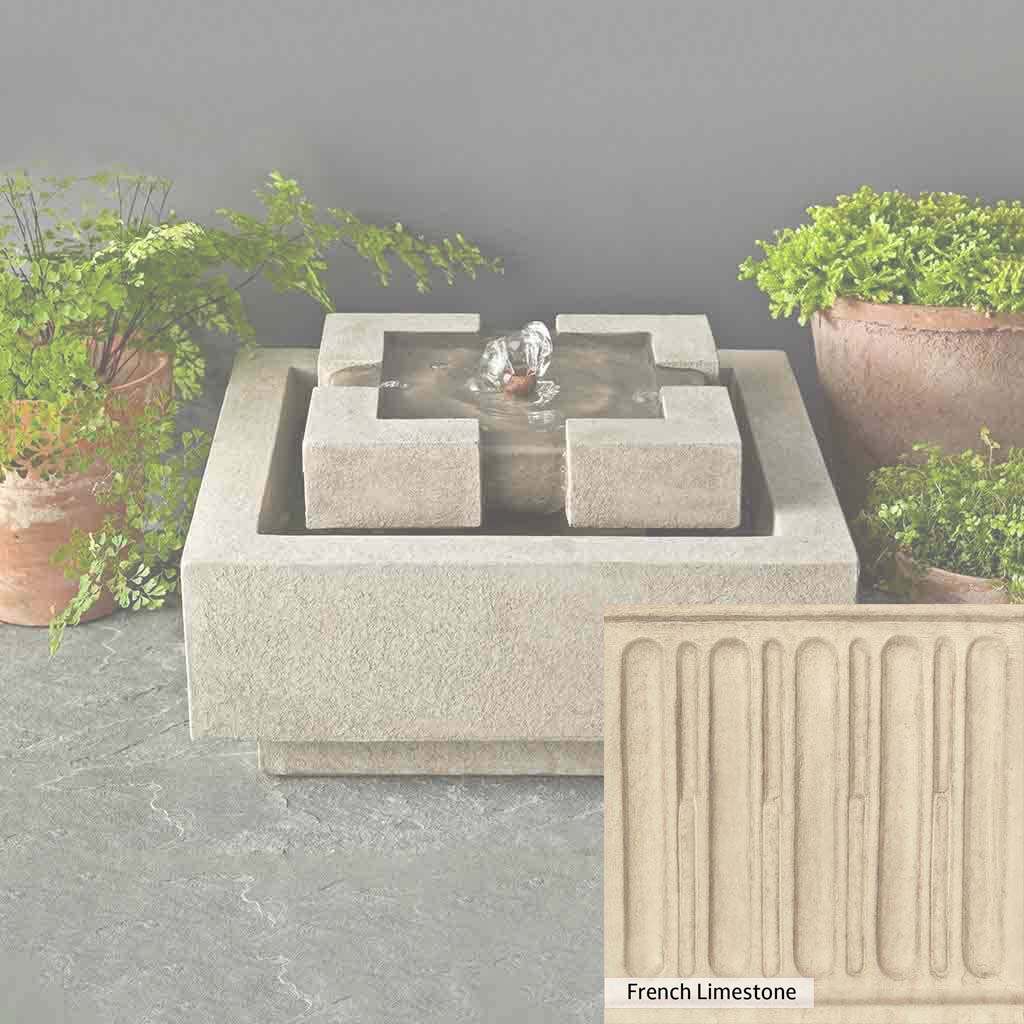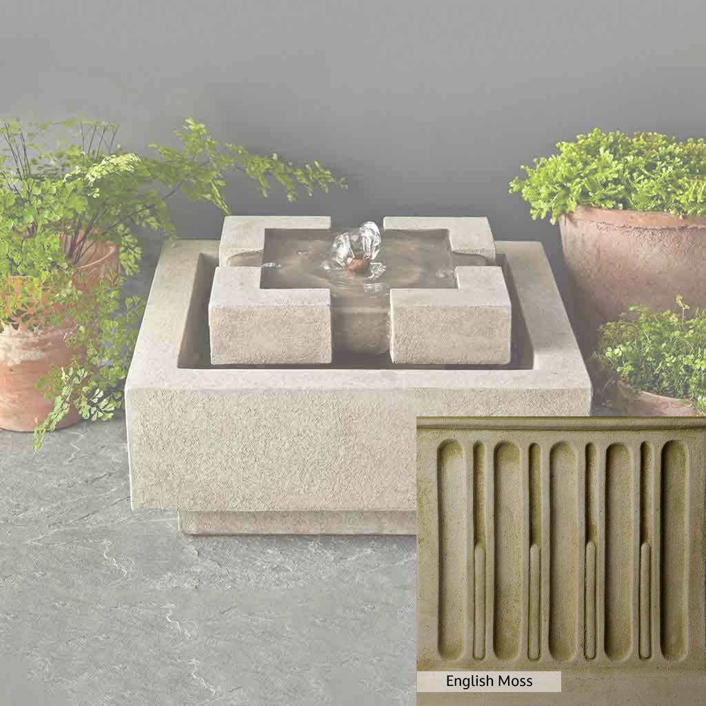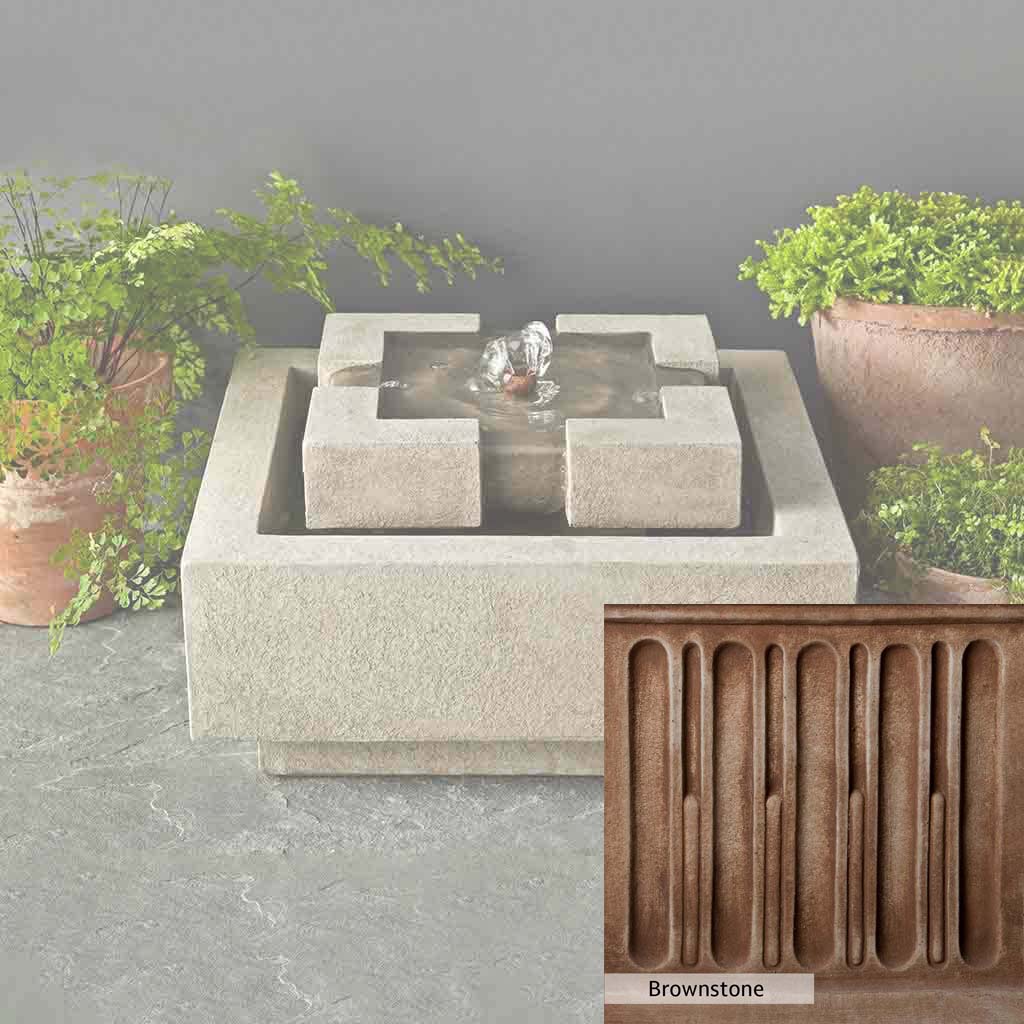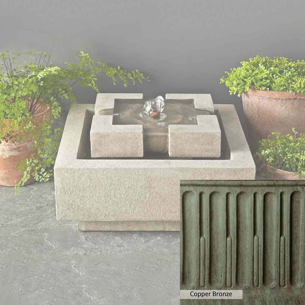 The M-Series Escala Fountain is handcrafted by skilled artisans in the USA. With their extensive experience, the Campania team applies a unique patina to ensure that each piece is special. This fountain is shown in the Greystone color. Campania International's proprietary cast stone blend is meticulously molded to create each piece used in the construction of this fountain. Due to the use of different materials and manufacturing processes, as well as varying photography conditions, natural variations in size, weight, and color can occur. The actual color may differ from the photo.