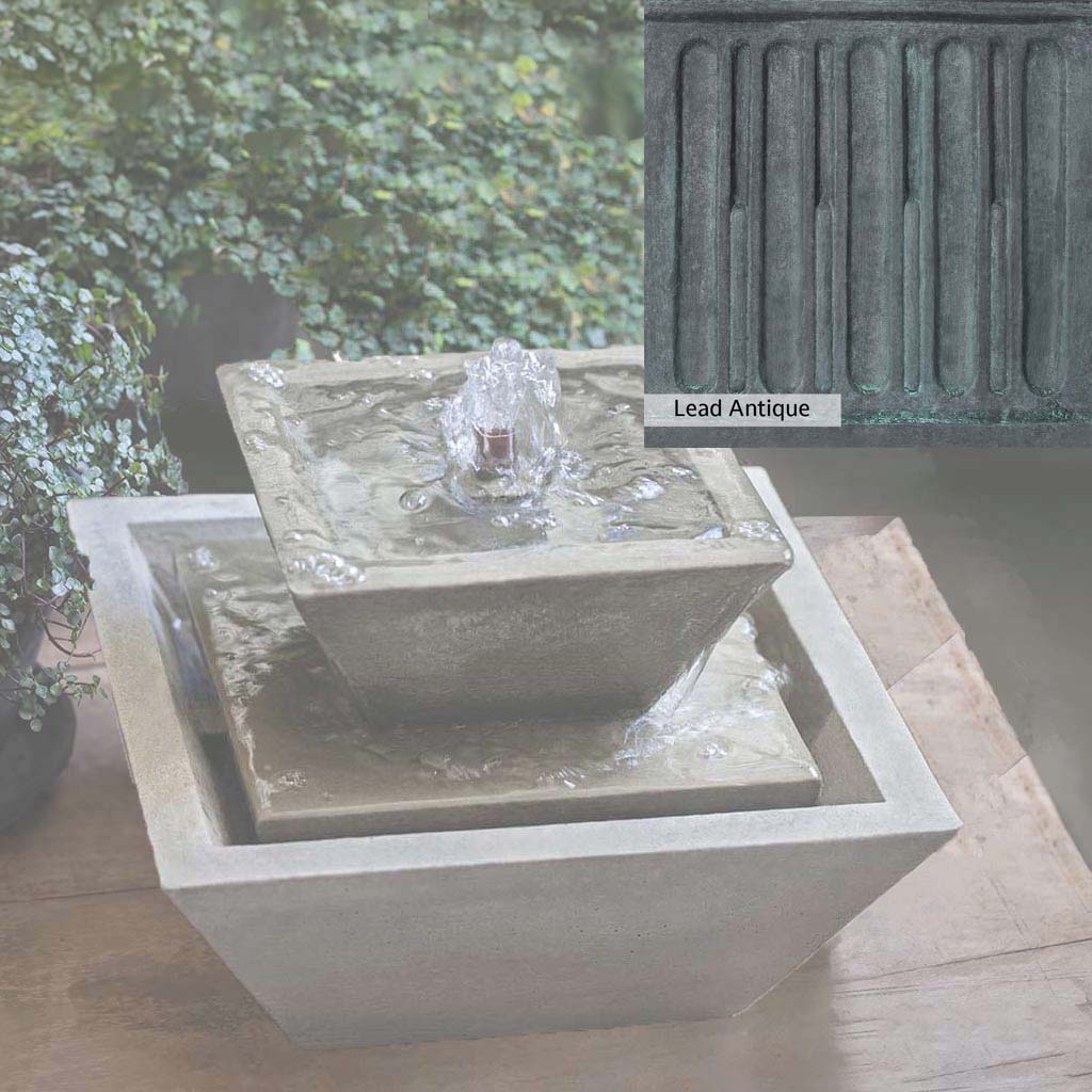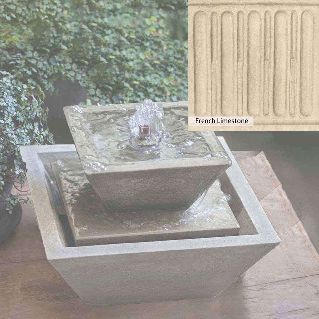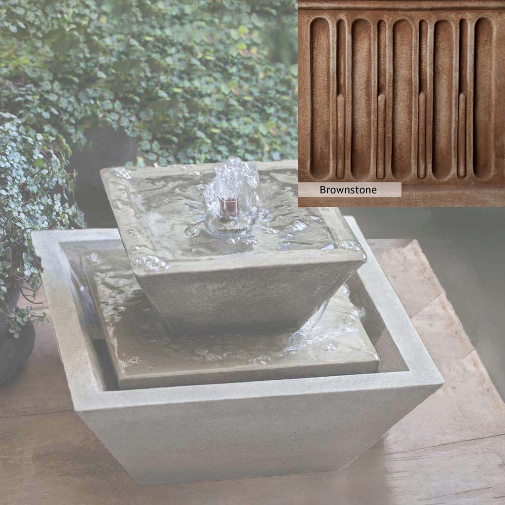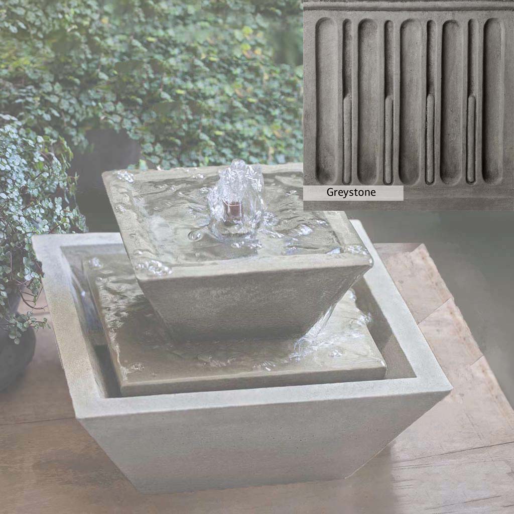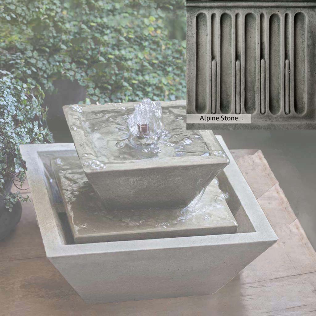 The M-Series Kenzo Fountain is handcrafted by skilled artisans in the USA. The Campania team applies the unique patina with experienced hands, making each piece special. This fountain is featured in the Alpine Stone color. Campania International's exclusive cast stone blend is expertly molded to create each piece in the construction of this fountain. Due to the materials used and manufacturing processes, as well as variations in photography conditions, natural differences may occur in size, weight, and color. The actual color may vary from the photo.