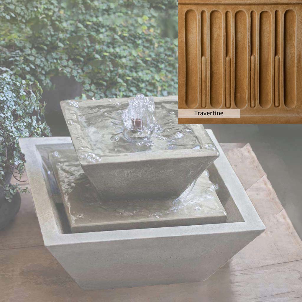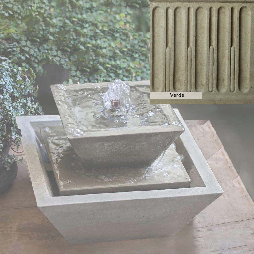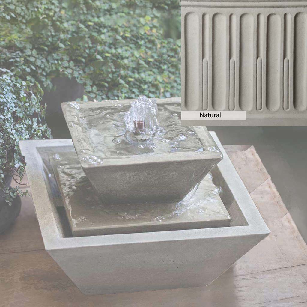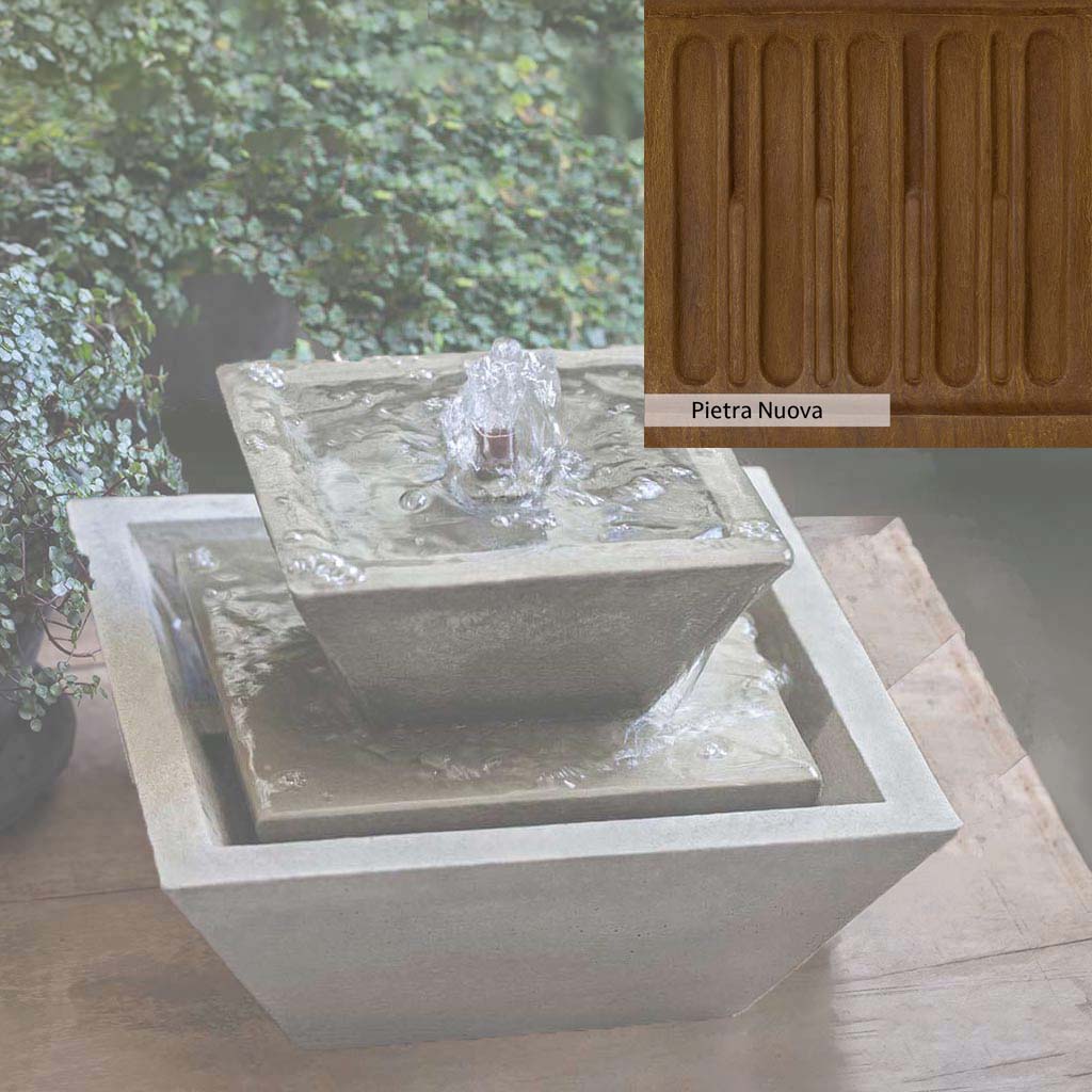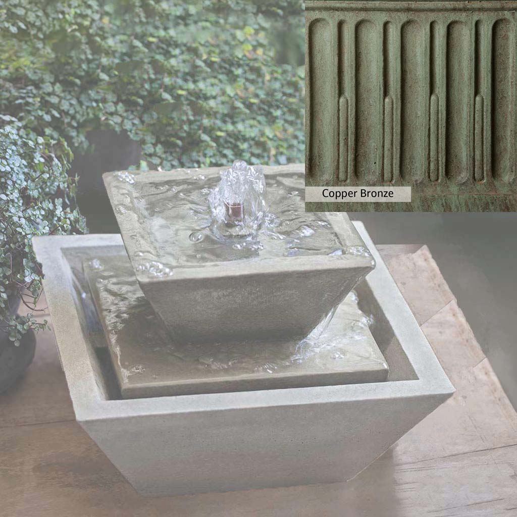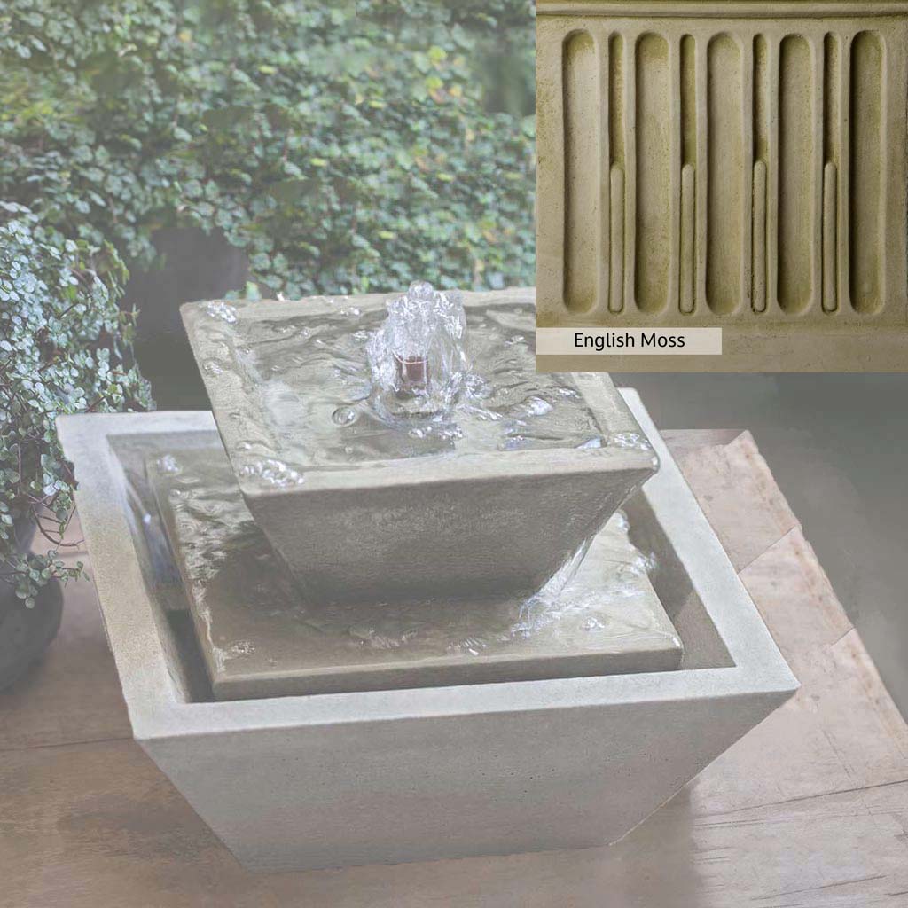 The M-Series Kenzo Fountain is handcrafted by skilled artisans in the USA. The Campania team applies the unique patina with experienced hands, making each piece special. This fountain is featured in the Alpine Stone color. Campania International's exclusive cast stone blend is expertly molded to create each piece in the construction of this fountain. Due to the materials used and manufacturing processes, as well as variations in photography conditions, natural differences may occur in size, weight, and color. The actual color may vary from the photo.