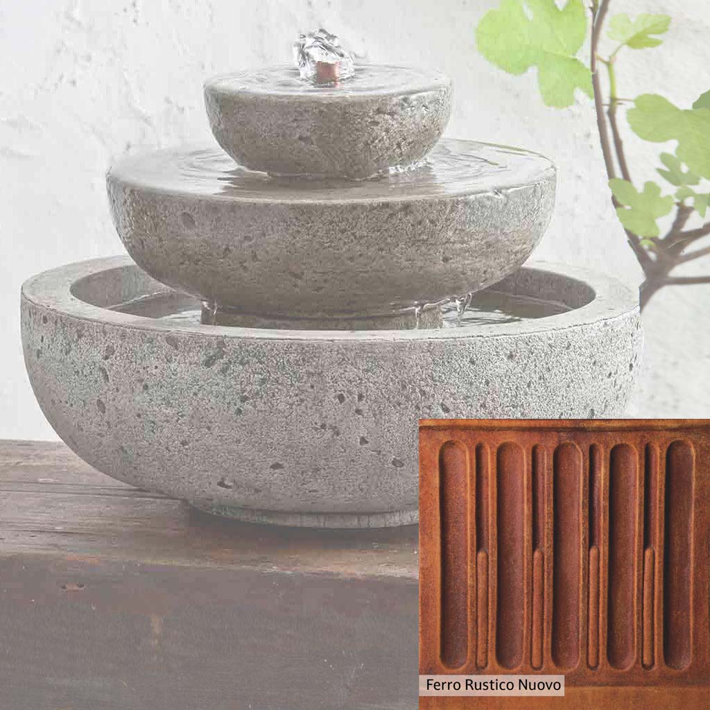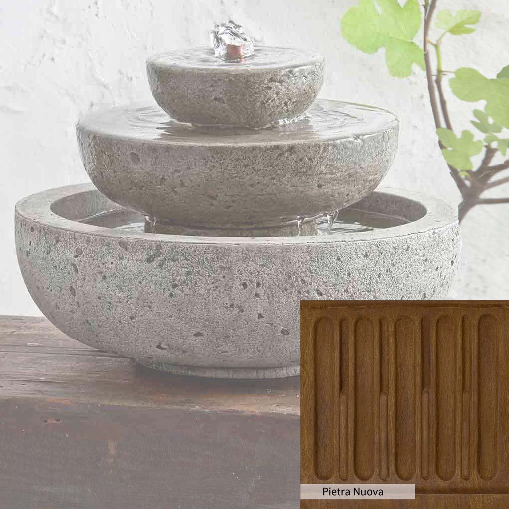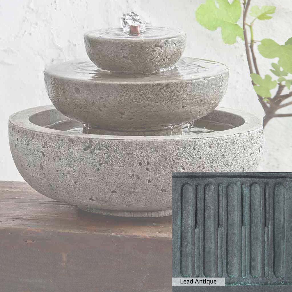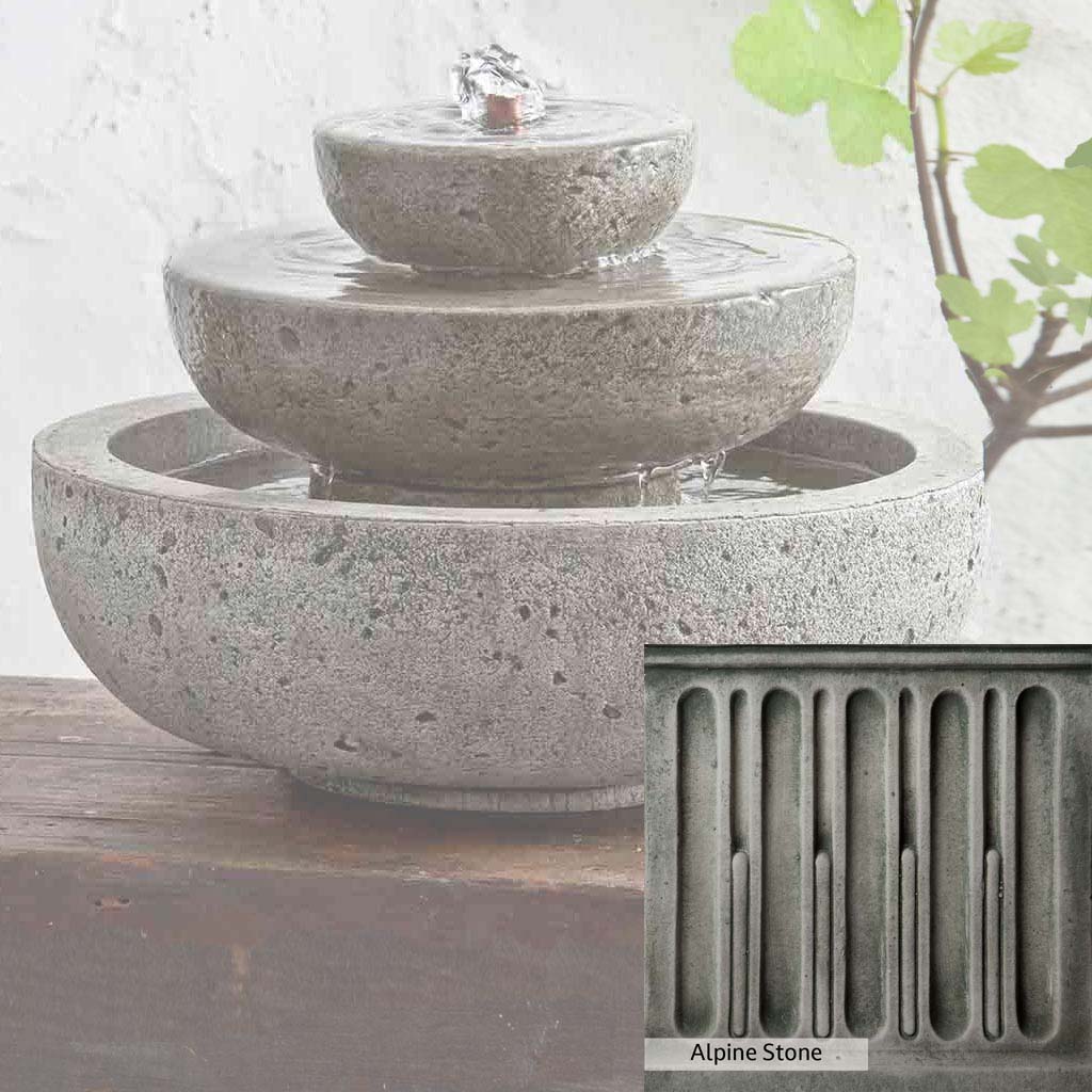 Skilled artisans in the USA handcraft the M-Series Platia Fountain. The Campania team applies the unique patina using their experience, making each piece one-of-a-kind. This fountain is shown in the Alpine Stone color. Campania International's unique cast stone blend is meticulously molded to create each piece used in the construction of this fountain. Due to the materials, manufacturing processes, and variations in photography conditions, natural differences can occur in size, weight, and color. The actual color may vary from the photo.
