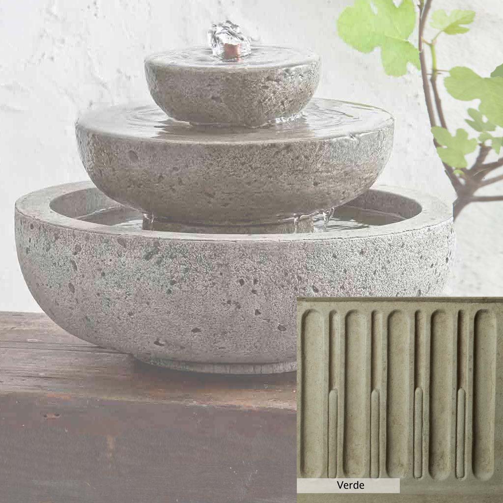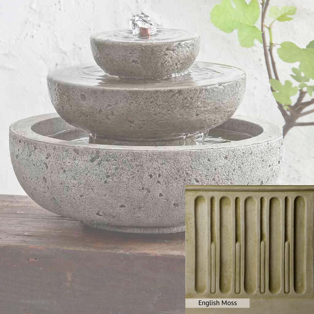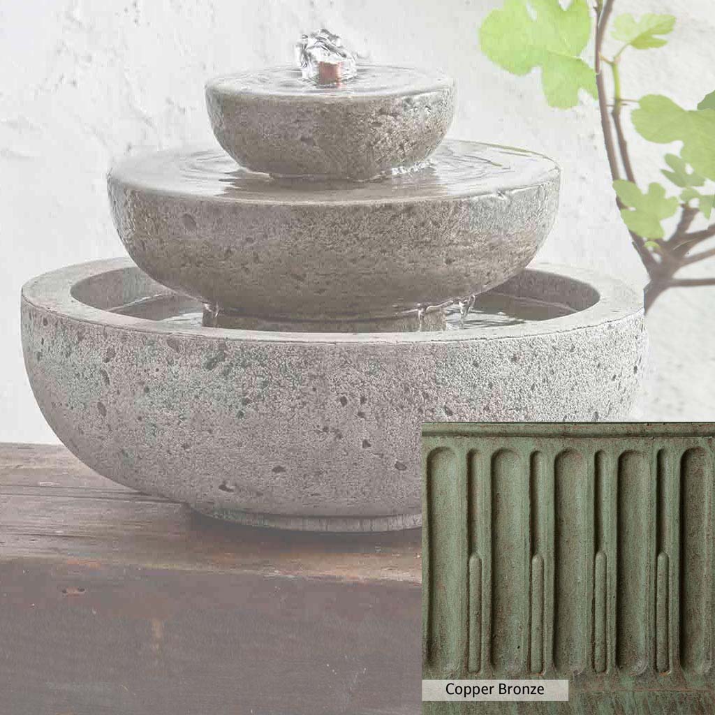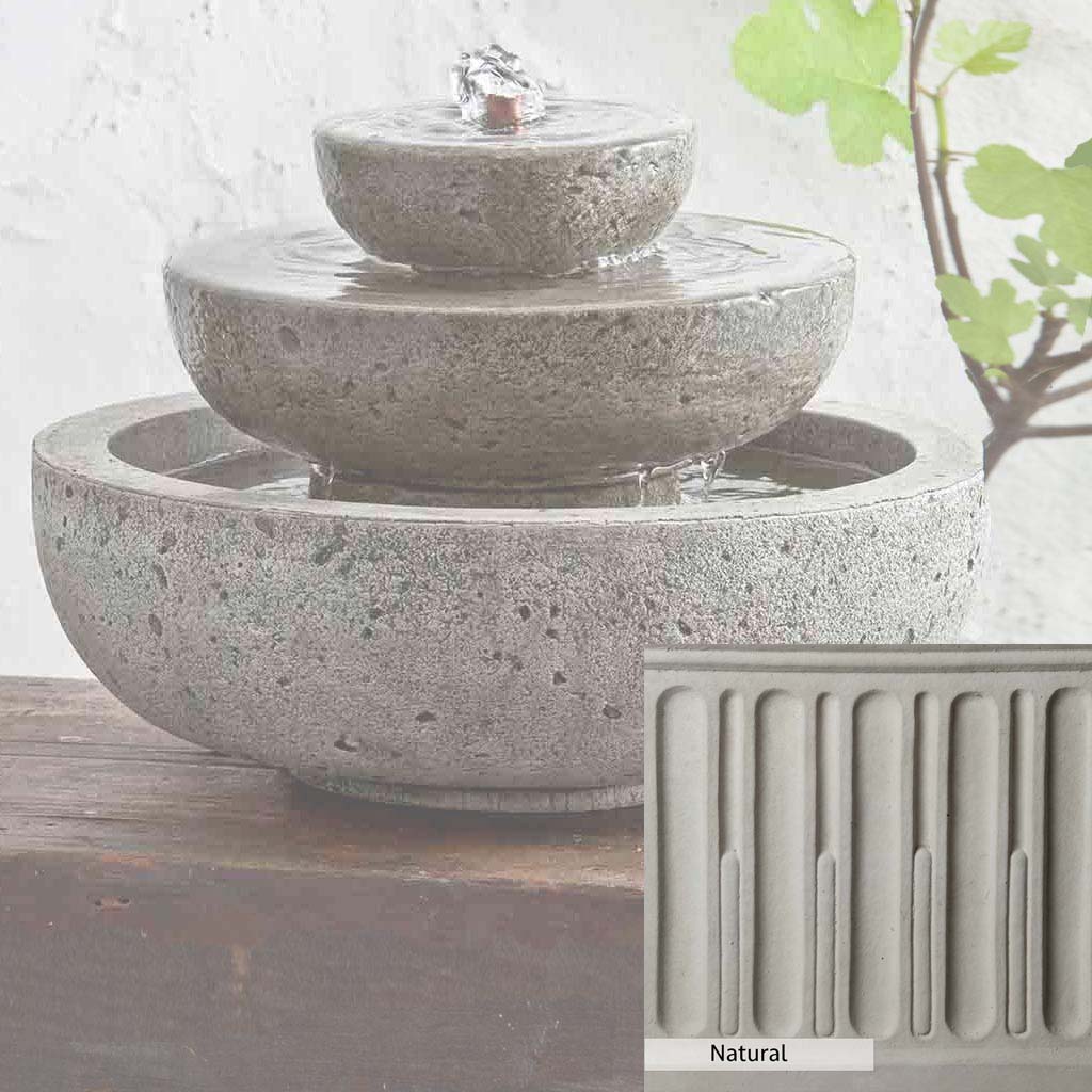 Skilled artisans in the USA handcraft the M-Series Platia Fountain. The Campania team applies the unique patina using their experience, making each piece one-of-a-kind. This fountain is shown in the Alpine Stone color. Campania International's unique cast stone blend is meticulously molded to create each piece used in the construction of this fountain. Due to the materials, manufacturing processes, and variations in photography conditions, natural differences can occur in size, weight, and color. The actual color may vary from the photo.