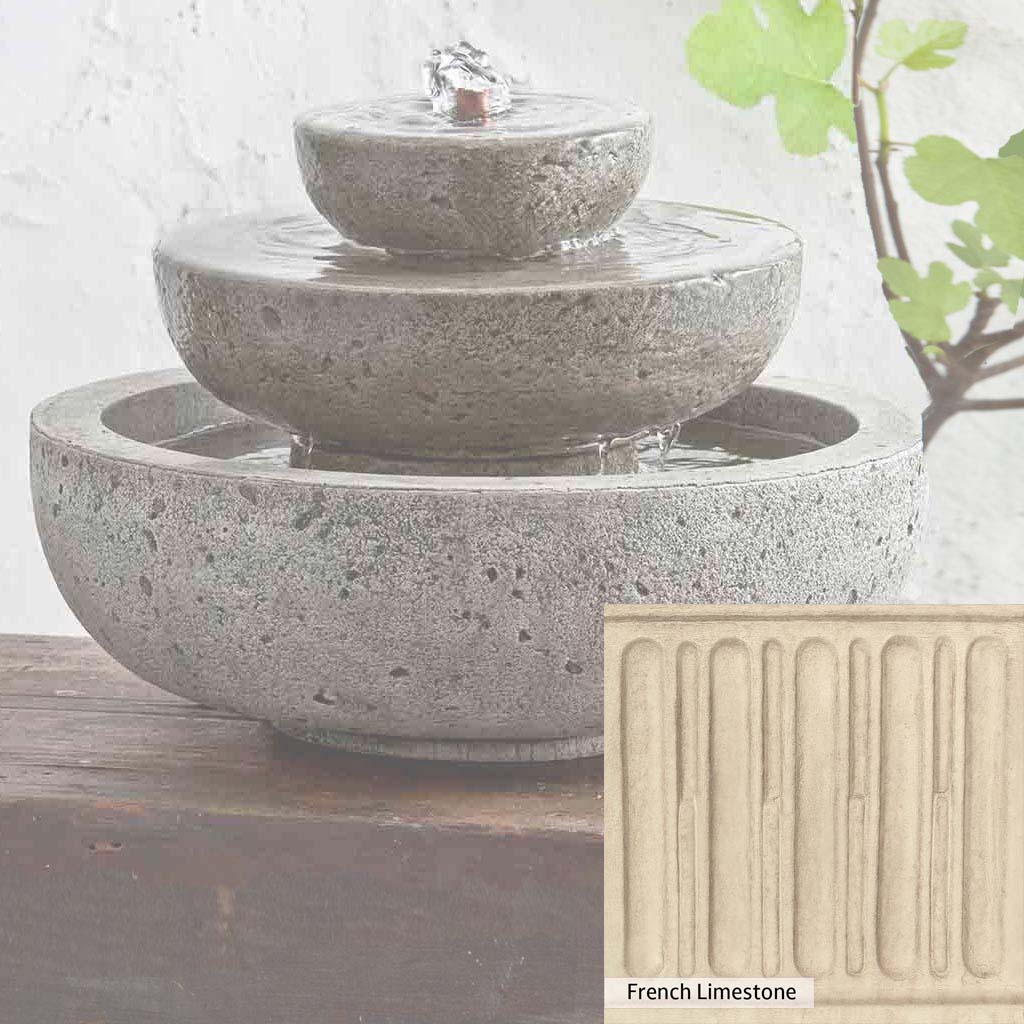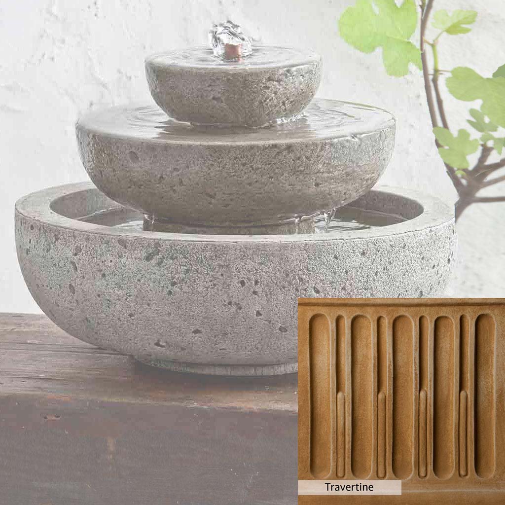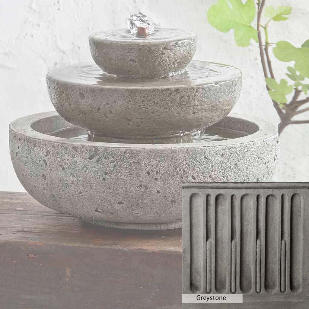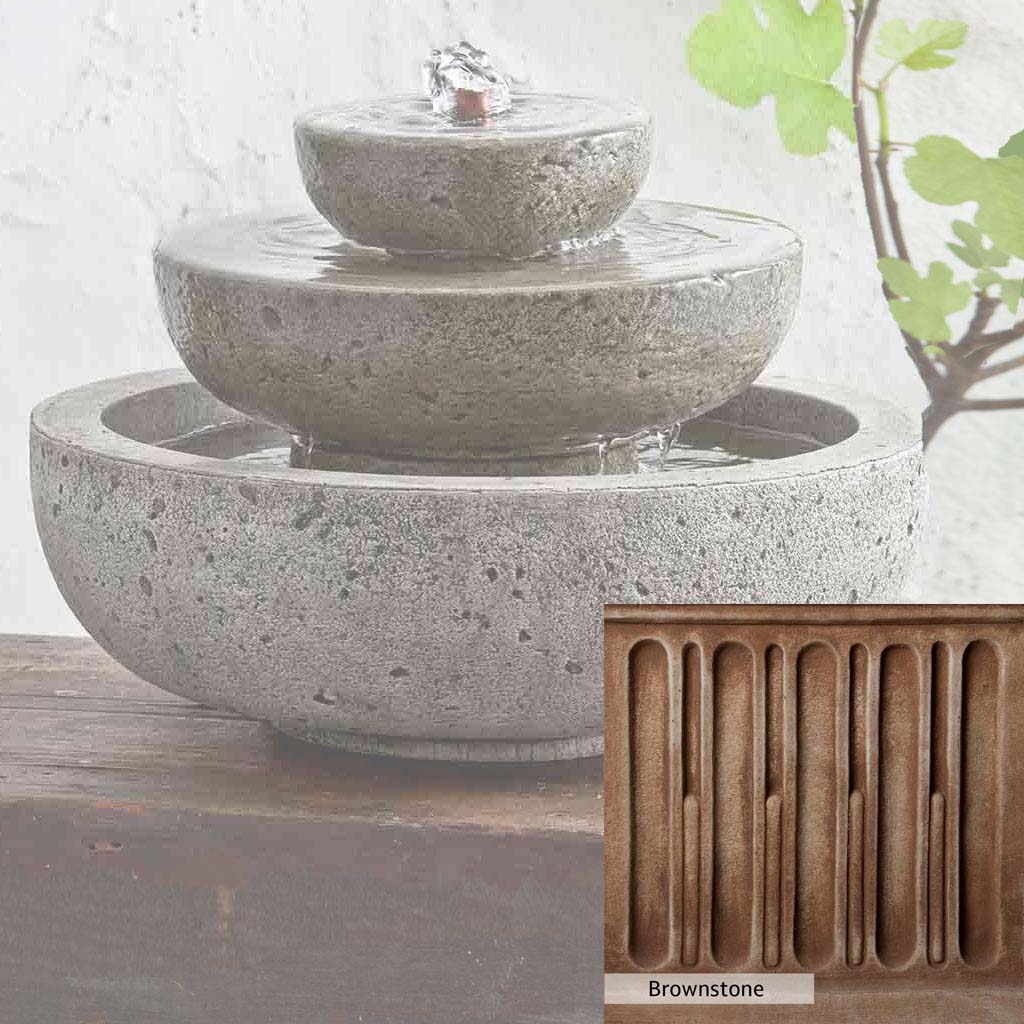 Skilled artisans in the USA handcraft the M-Series Platia Fountain. The Campania team applies the unique patina using their experience, making each piece one-of-a-kind. This fountain is shown in the Alpine Stone color. Campania International's unique cast stone blend is meticulously molded to create each piece used in the construction of this fountain. Due to the materials, manufacturing processes, and variations in photography conditions, natural differences can occur in size, weight, and color. The actual color may vary from the photo.