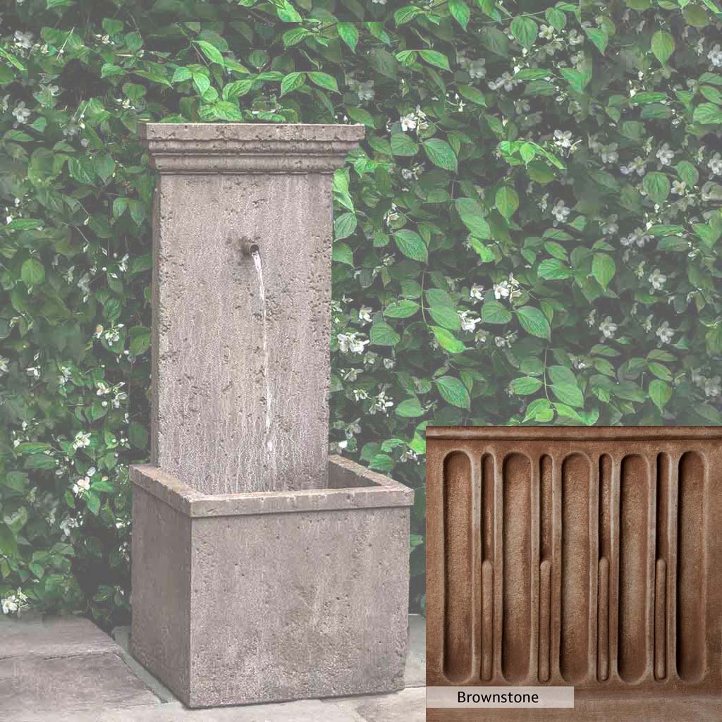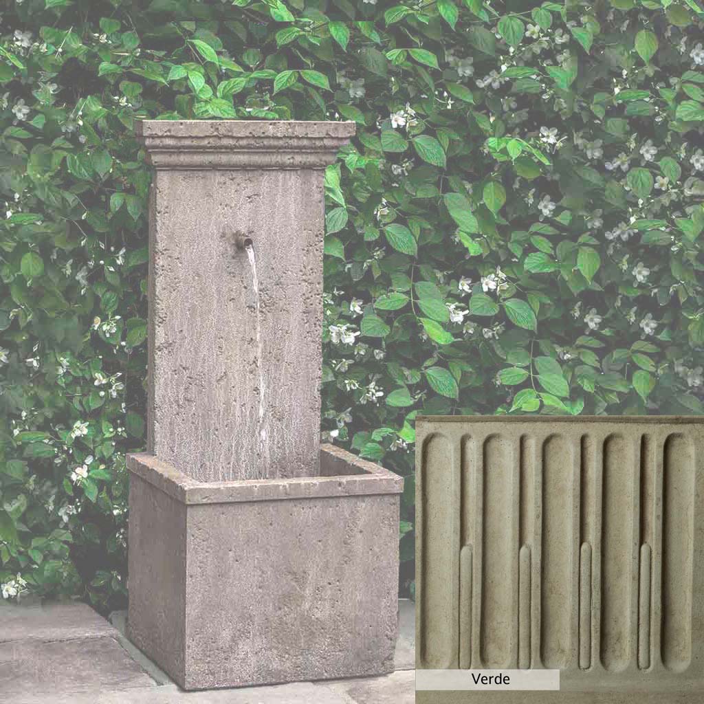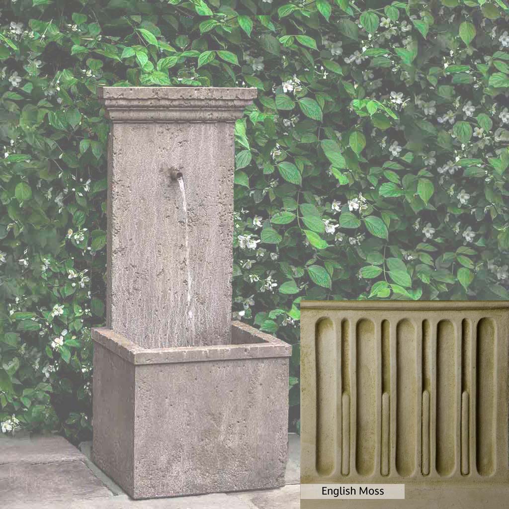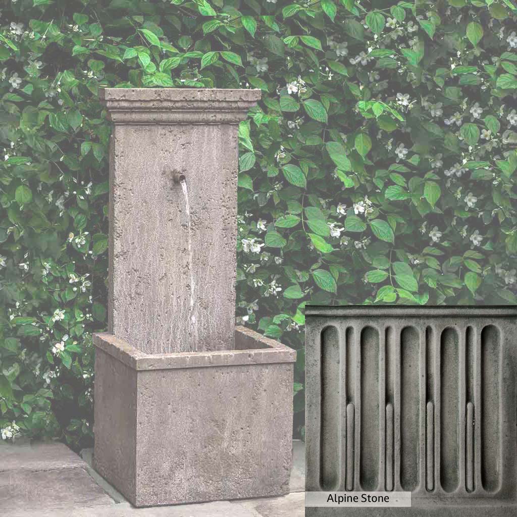 The Marais Wall Fountain is handcrafted by skilled artisans in the USA. The Campania team applies the unique patina with experienced hands, making each piece special. This fountain is featured in the Aged Limestone color. Campania International's exclusive cast stone blend is expertly molded to create each piece in the construction of this fountain. Due to the materials used and manufacturing processes, as well as variations in photography conditions, natural differences may occur in size, weight, and color. The actual color may vary from the photo.