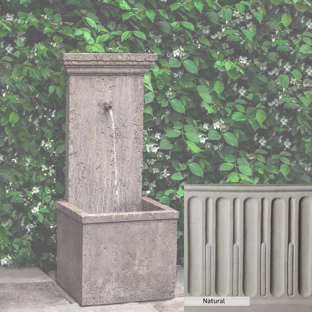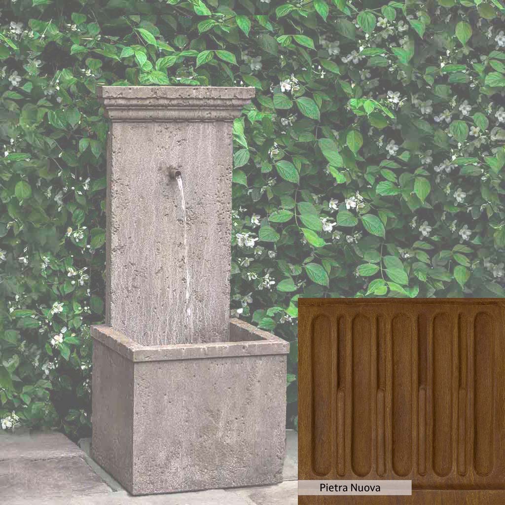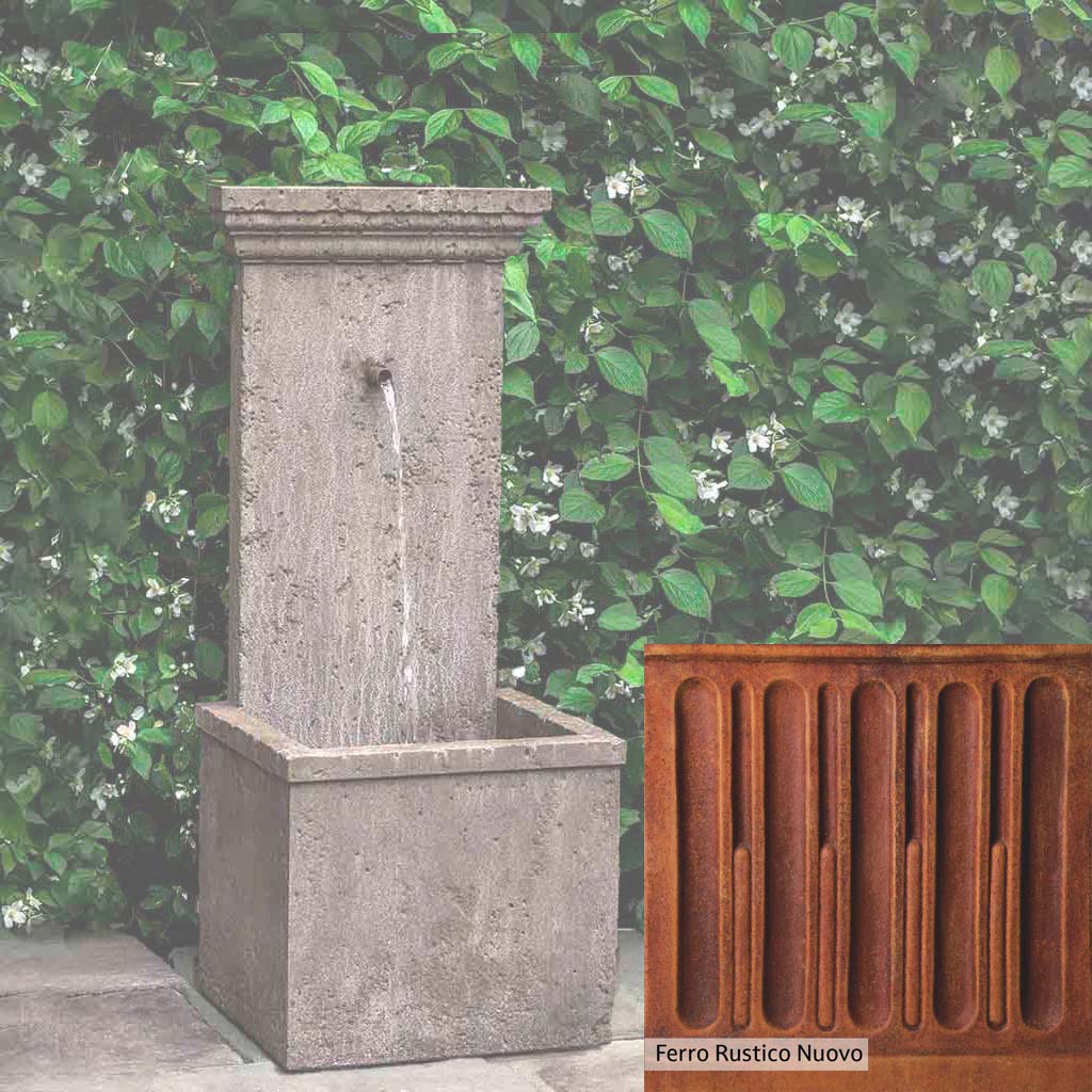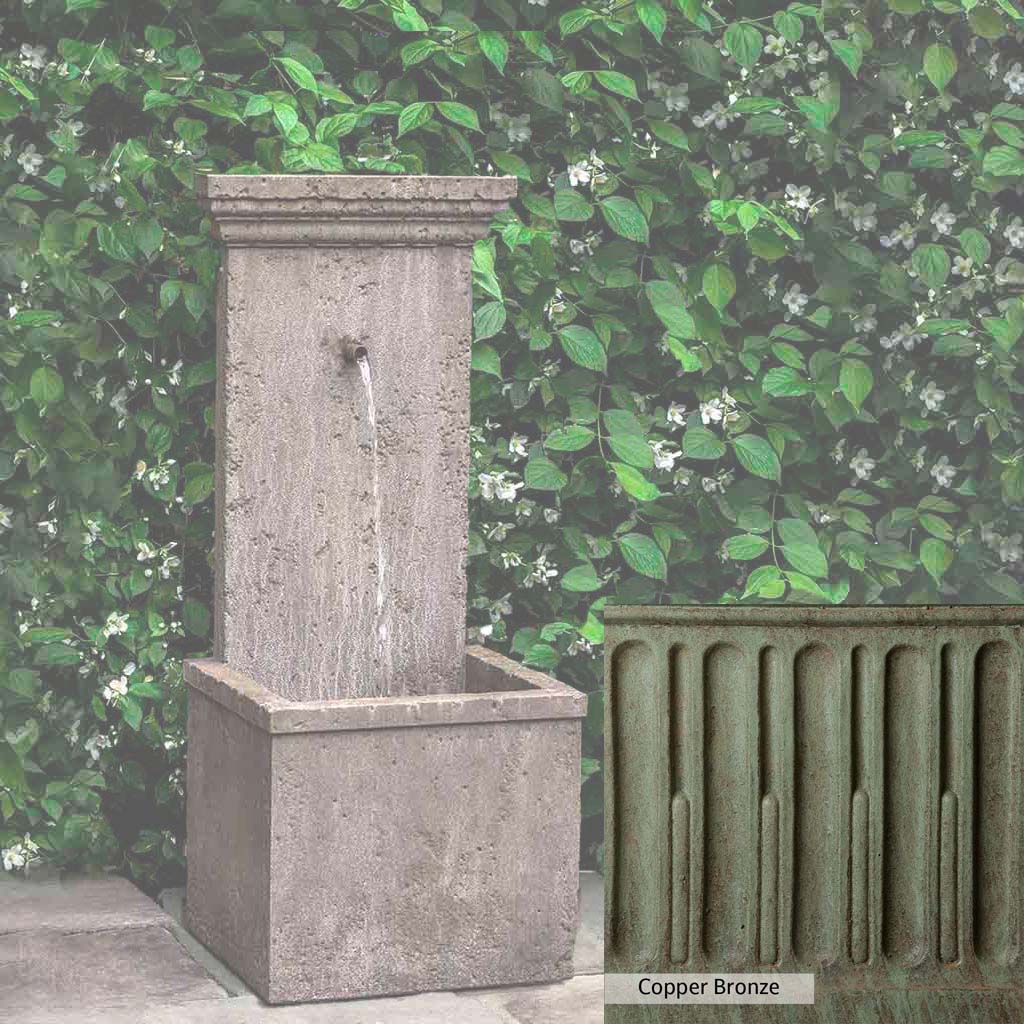 The Marais Wall Fountain is handcrafted by skilled artisans in the USA. The Campania team applies the unique patina with experienced hands, making each piece special. This fountain is featured in the Aged Limestone color. Campania International's exclusive cast stone blend is expertly molded to create each piece in the construction of this fountain. Due to the materials used and manufacturing processes, as well as variations in photography conditions, natural differences may occur in size, weight, and color. The actual color may vary from the photo.