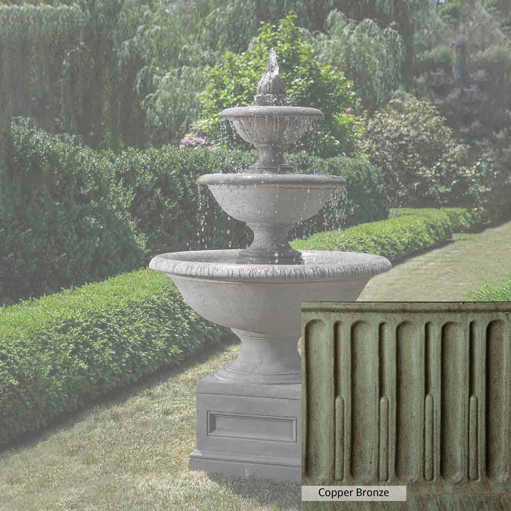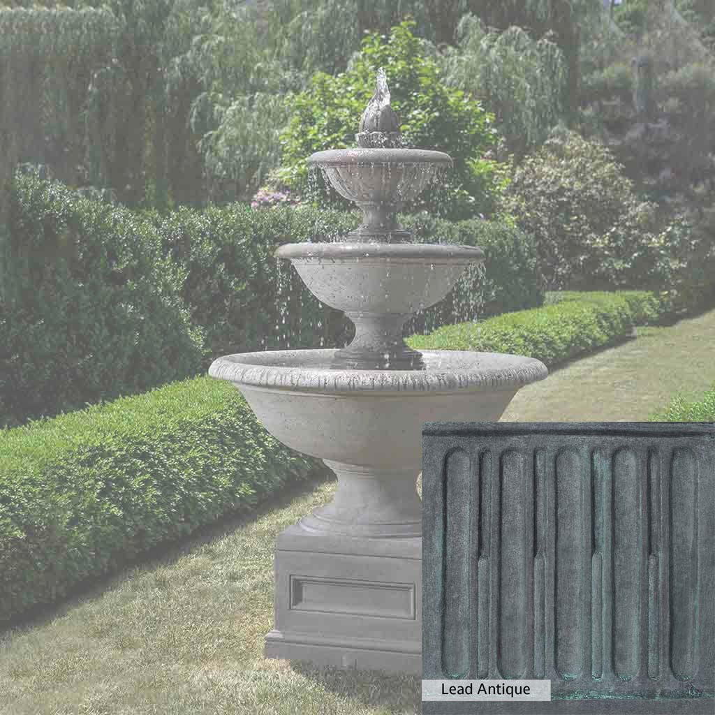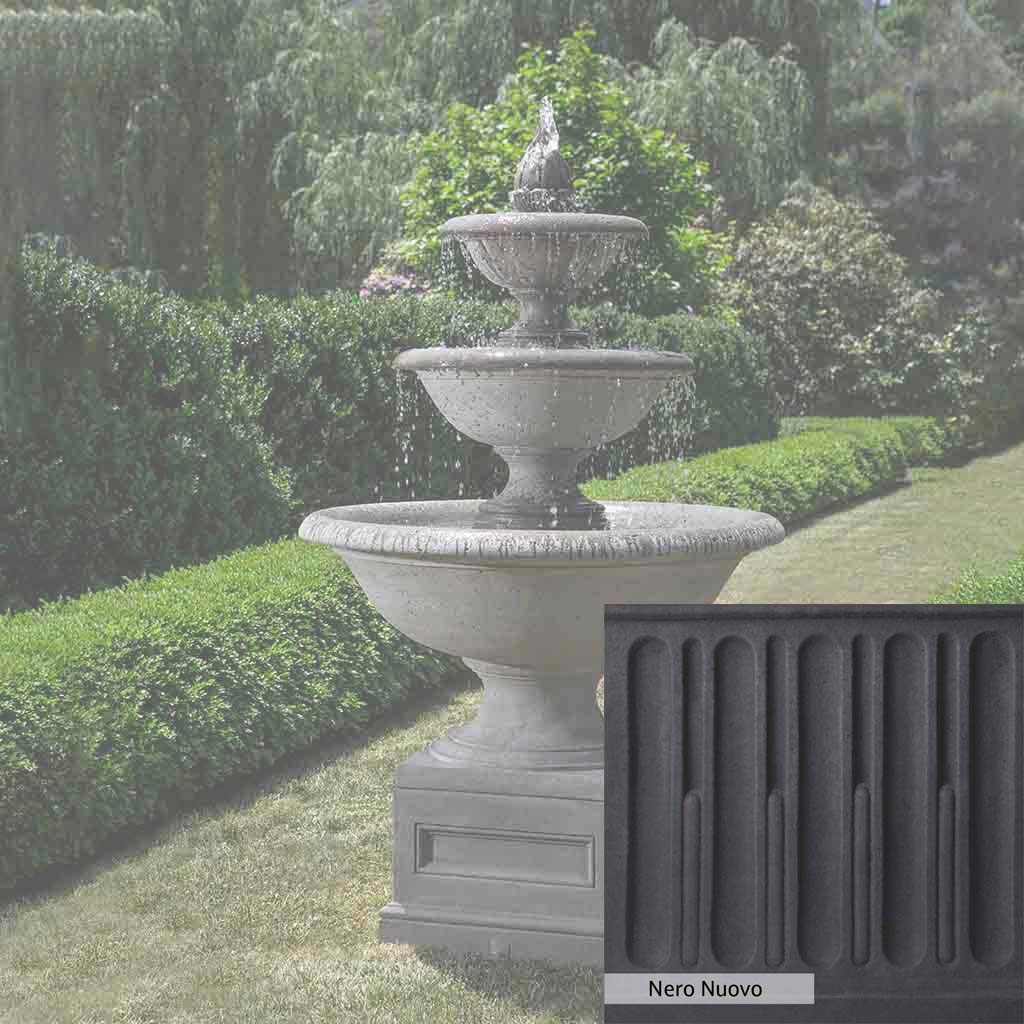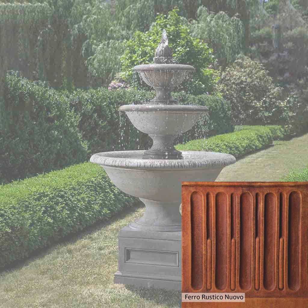 The Monteros Fountain is handcrafted by skilled artisans in the USA. The Campania team applies the unique patina with experienced hands, making each piece special. This fountain is featured in the color. Campania International's exclusive cast stone blend is expertly molded to create each piece in the construction of this fountain. Due to the materials used and manufacturing processes, as well as variations in photography conditions, natural differences may occur in size, weight, and color. The actual color may vary from the photo.